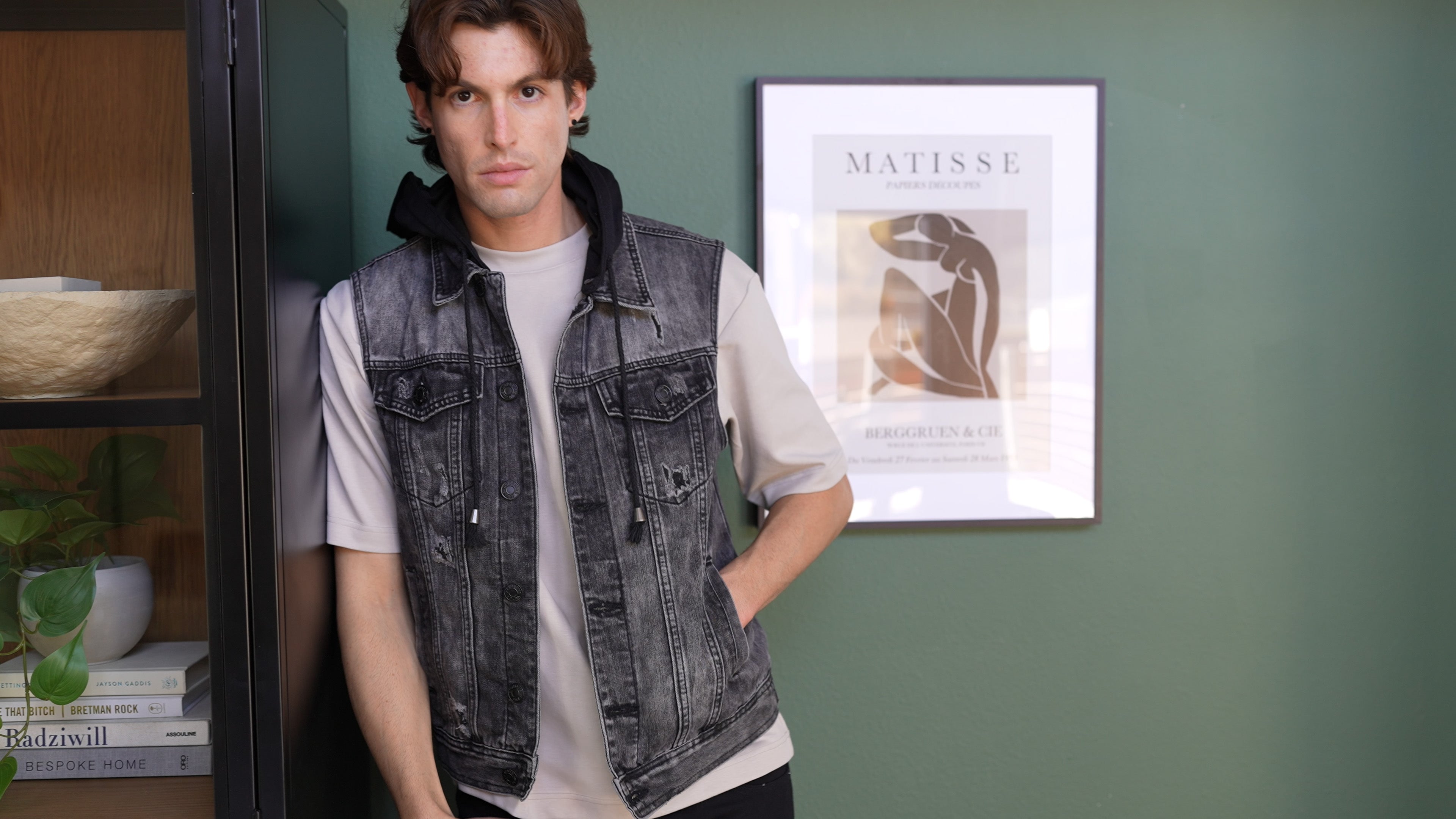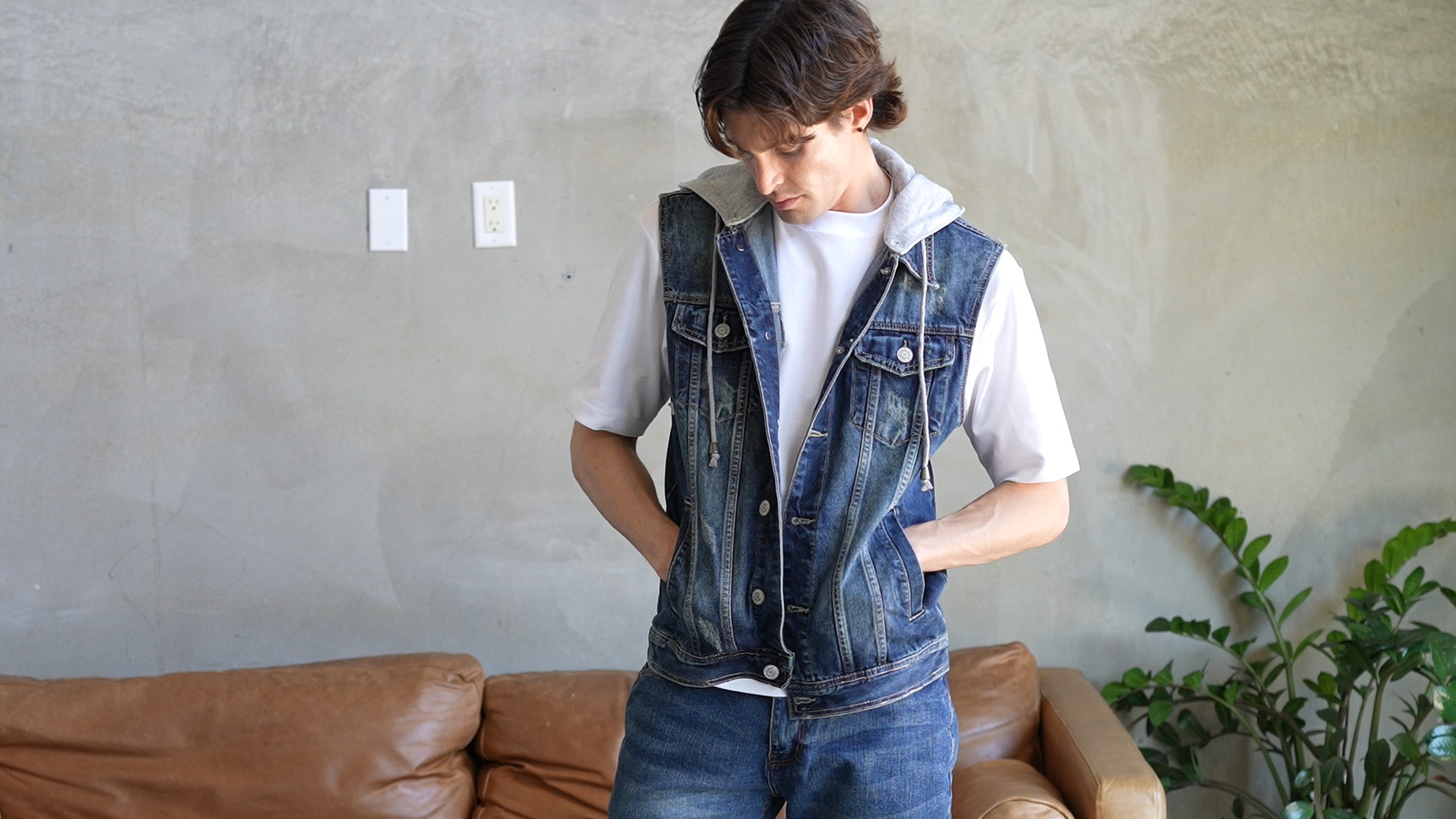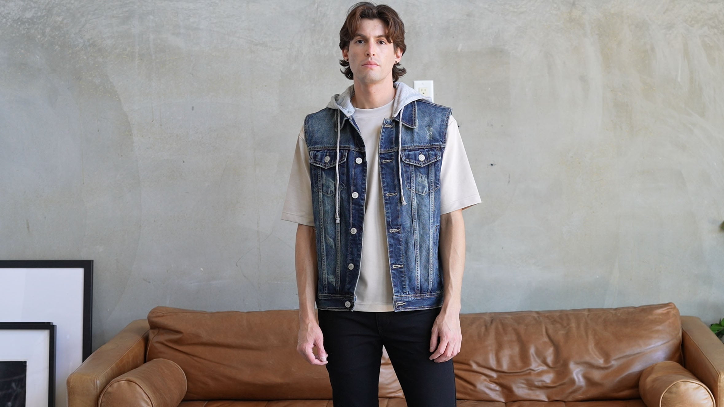 A hooded denim vest built to sharpen every fit.