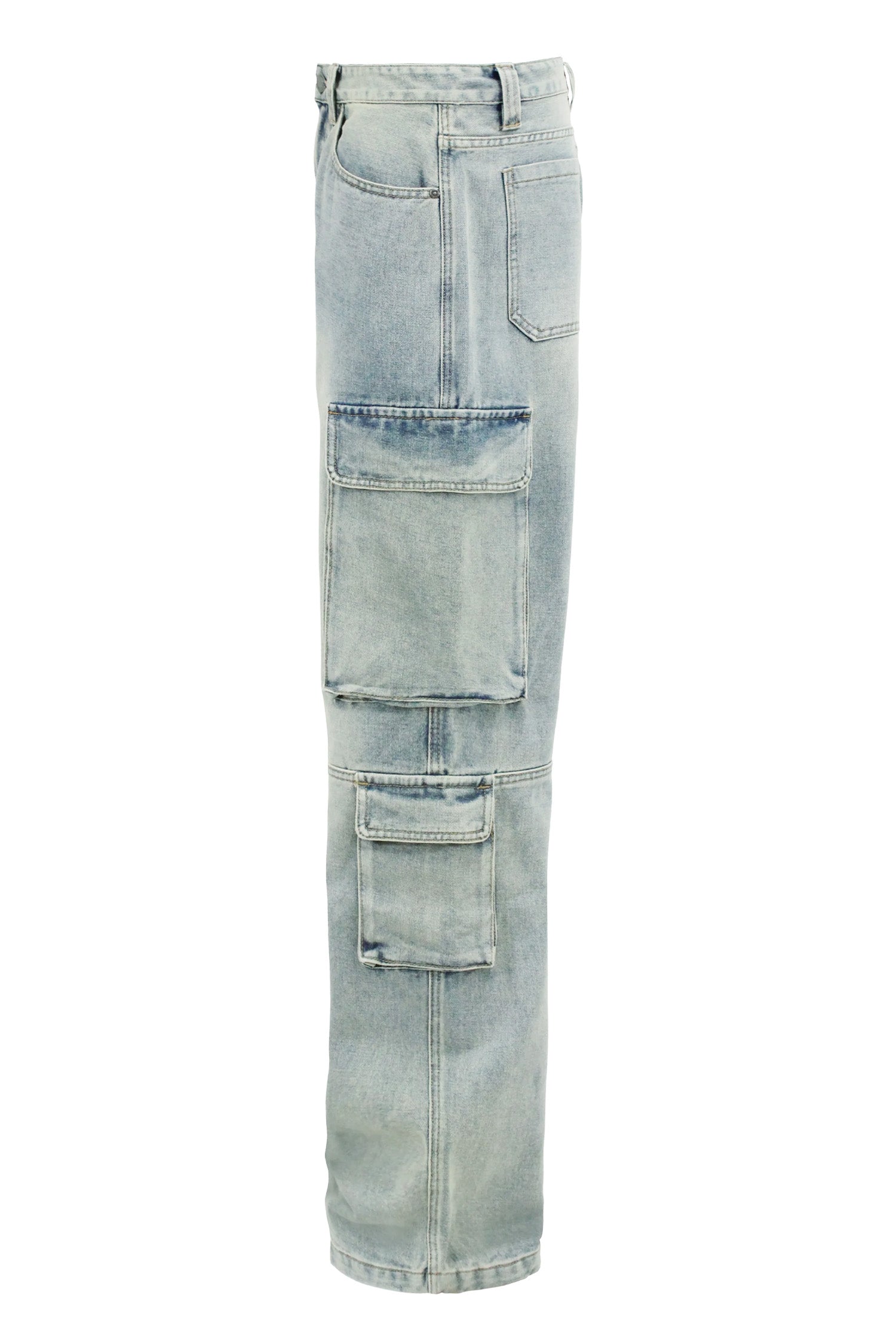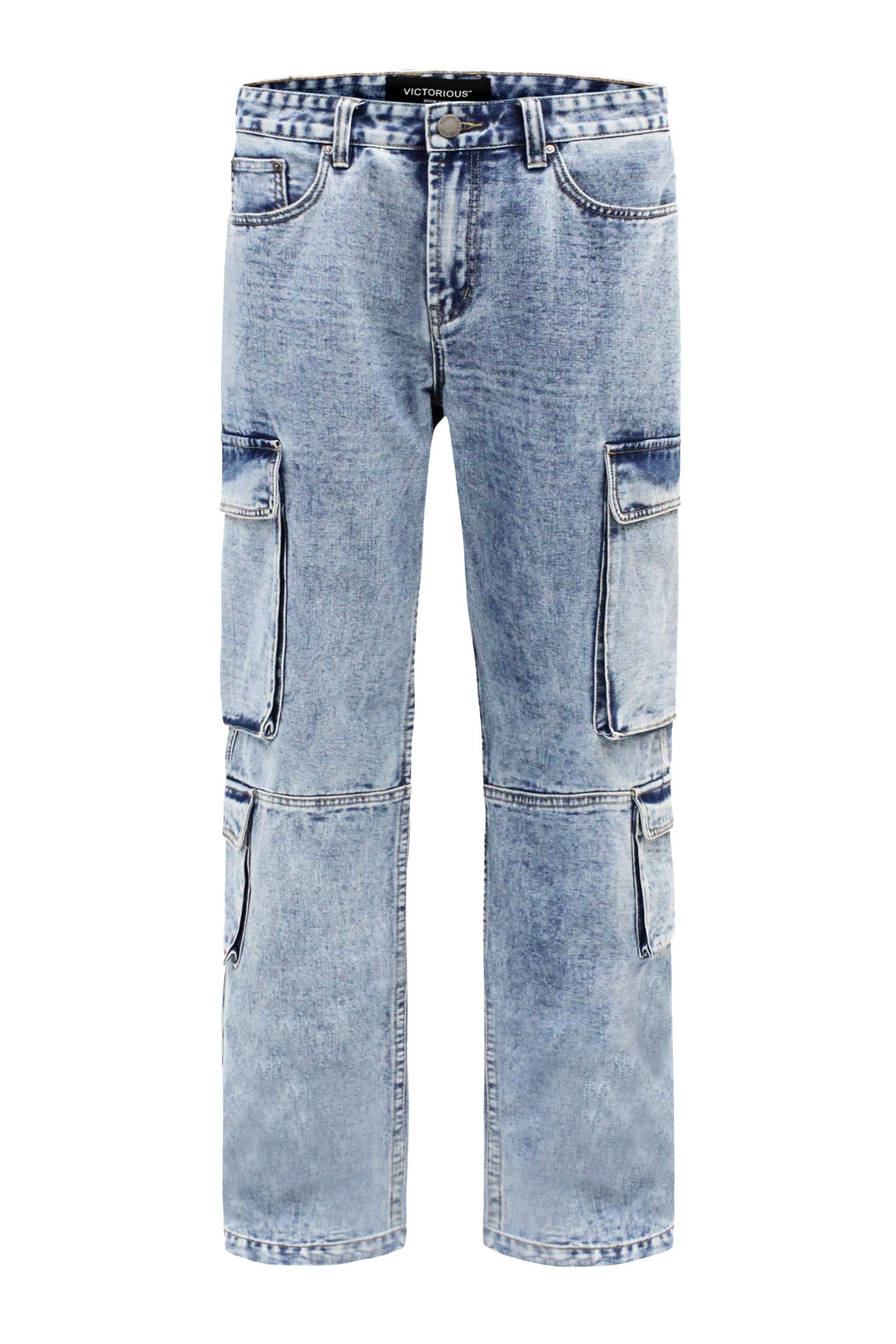 Men's Baggy Fit Multi Cargo Pocket Jeans