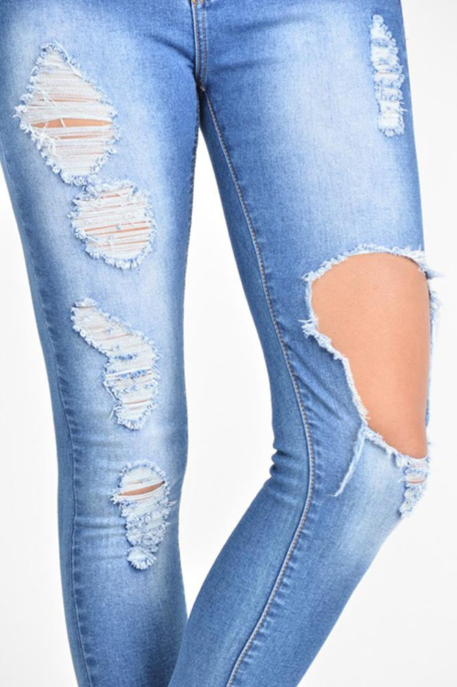 High Waisted Torn Skinny Fit Jeans