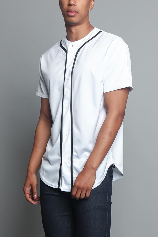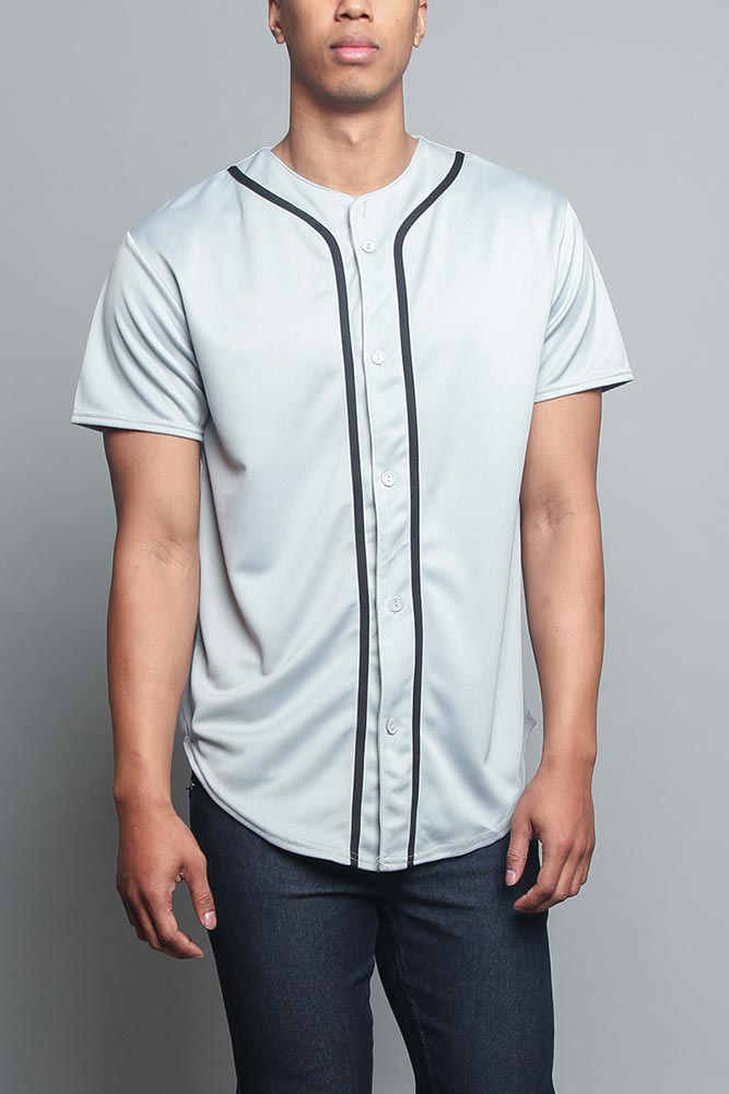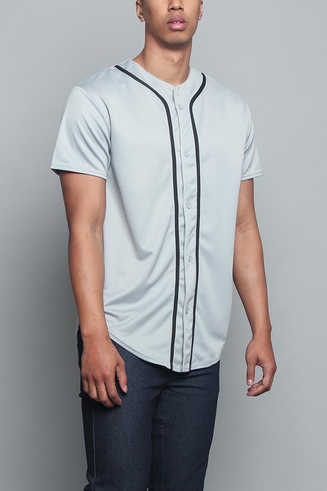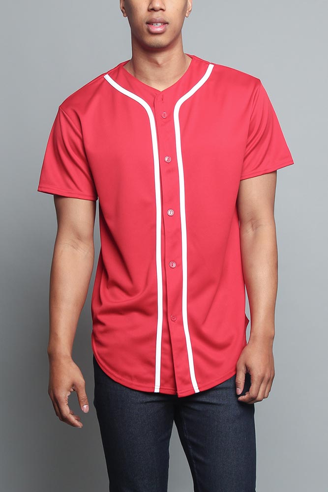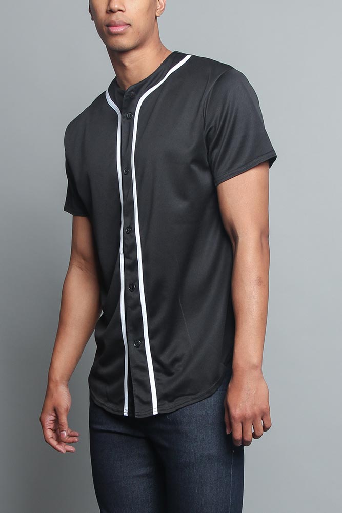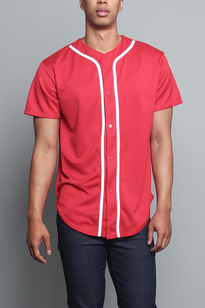 Look sporty and stylish in our basic baseball jersey. Perfect for layering or to complete any casual look! This 6-button baseball jersey with contrast stitching down the front is made from pro-weight double-knit polyester. These custom baseball jerseys are super reinforced and will complete any sporty look.