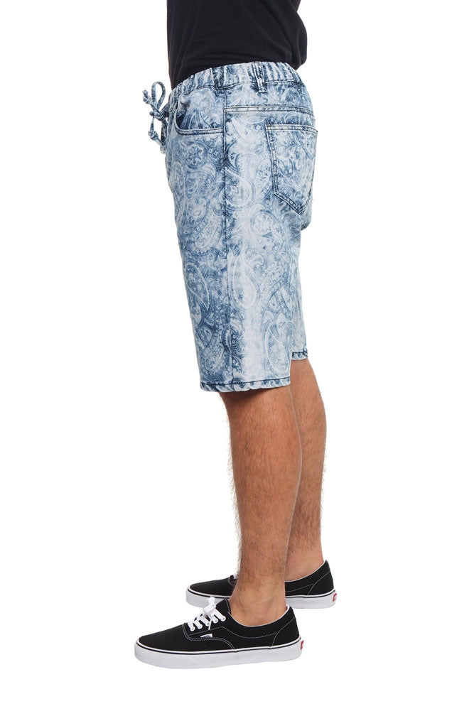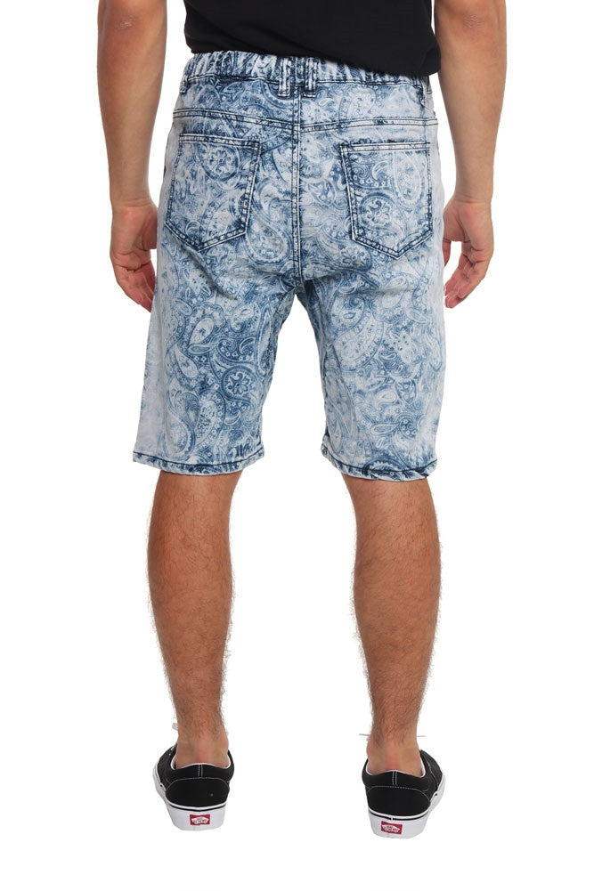 Men's Paisley Print Denim Dropcrotch Shorts