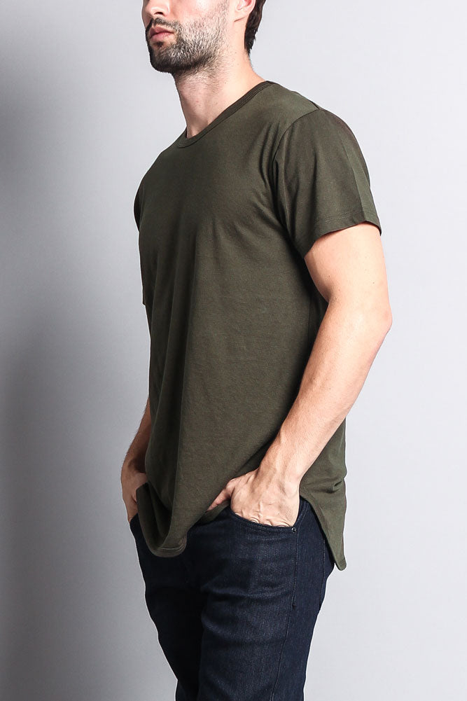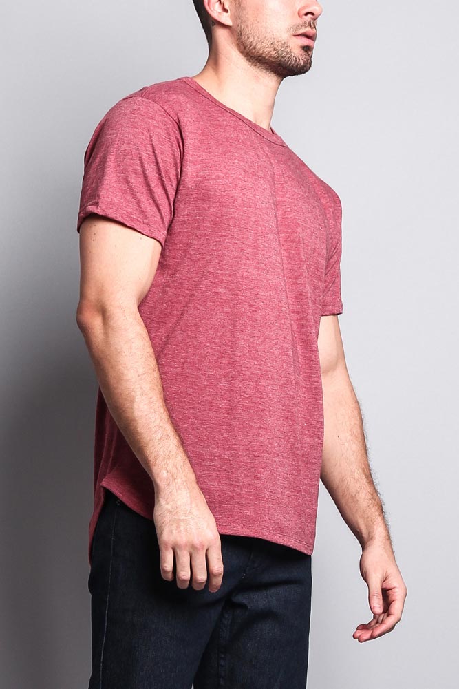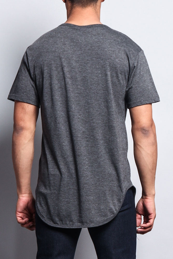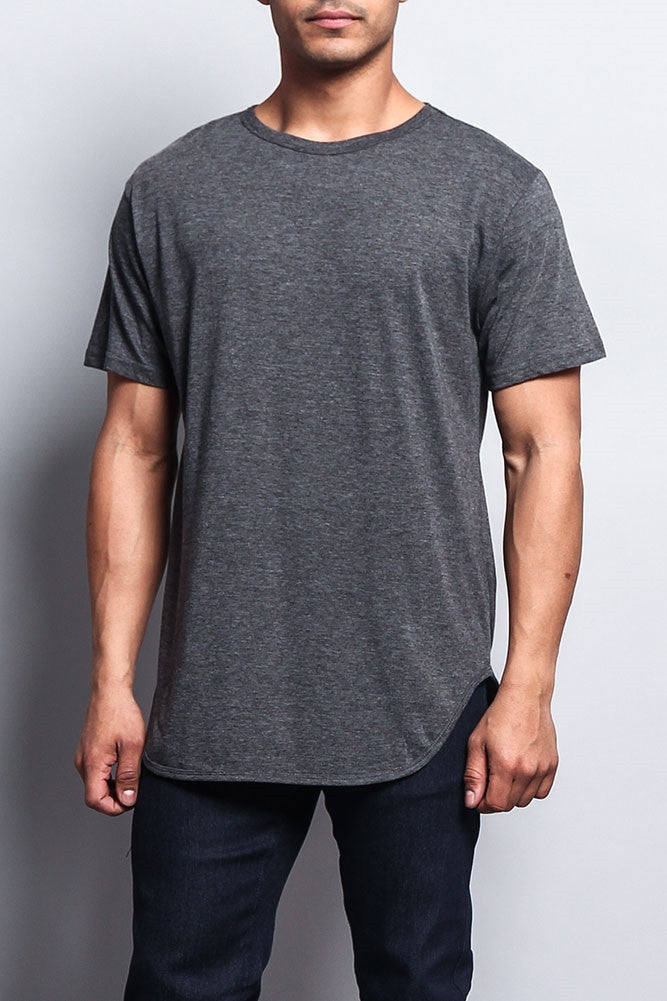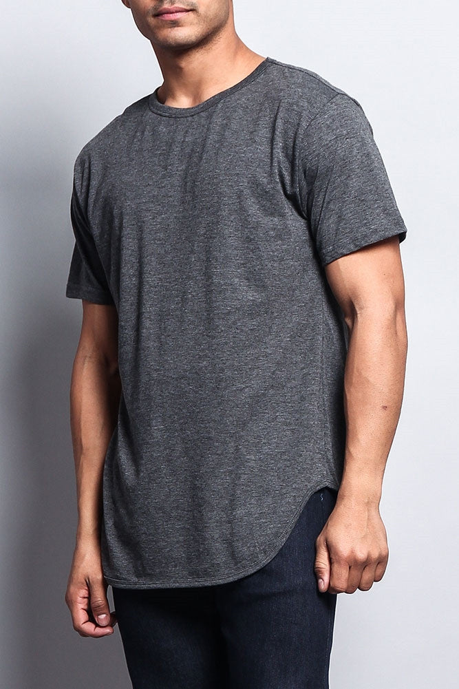 Upgrade your basic tee with this trendy extended length t-shirt with a curved baseball-style hem. Looks great layered under a short jacket!