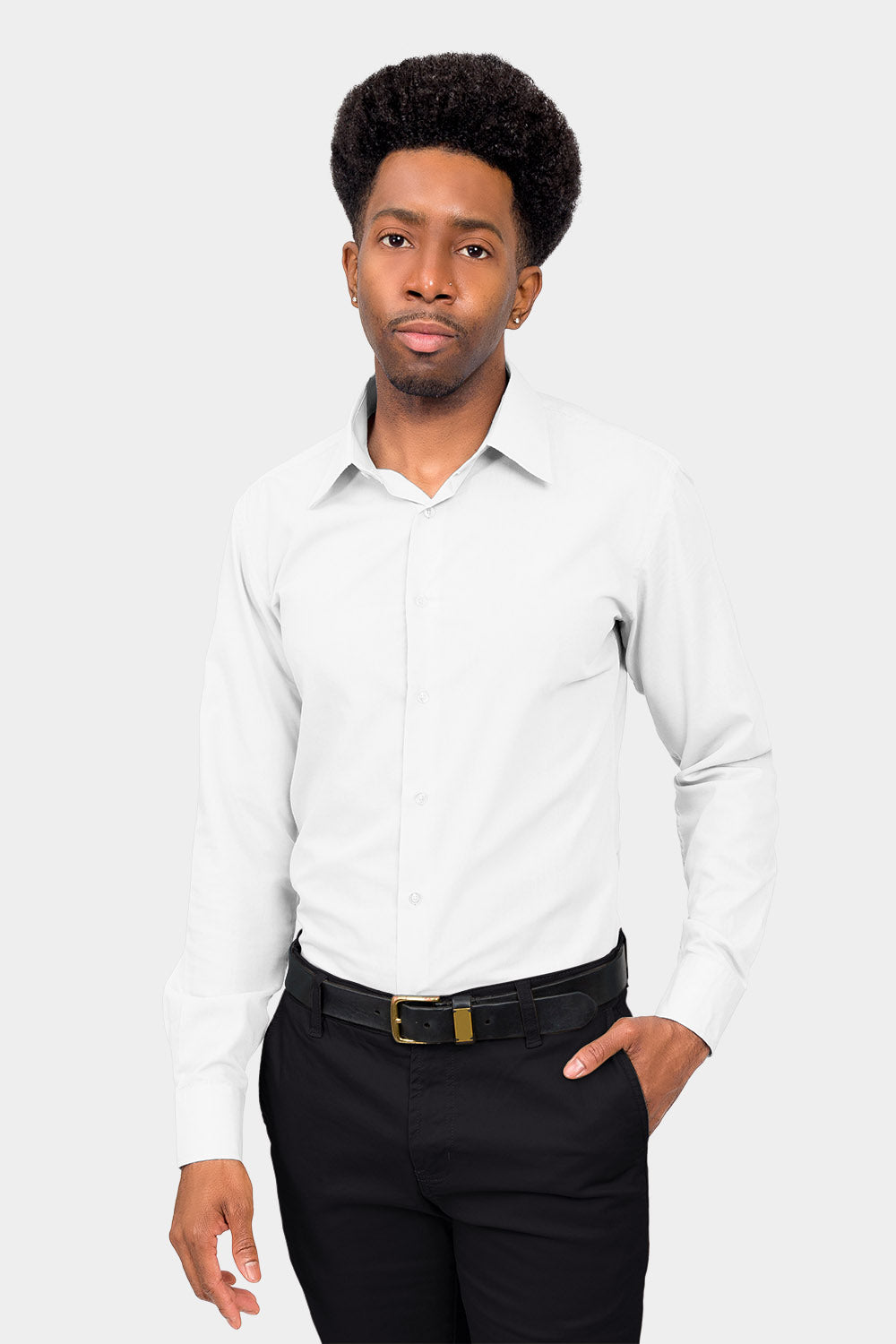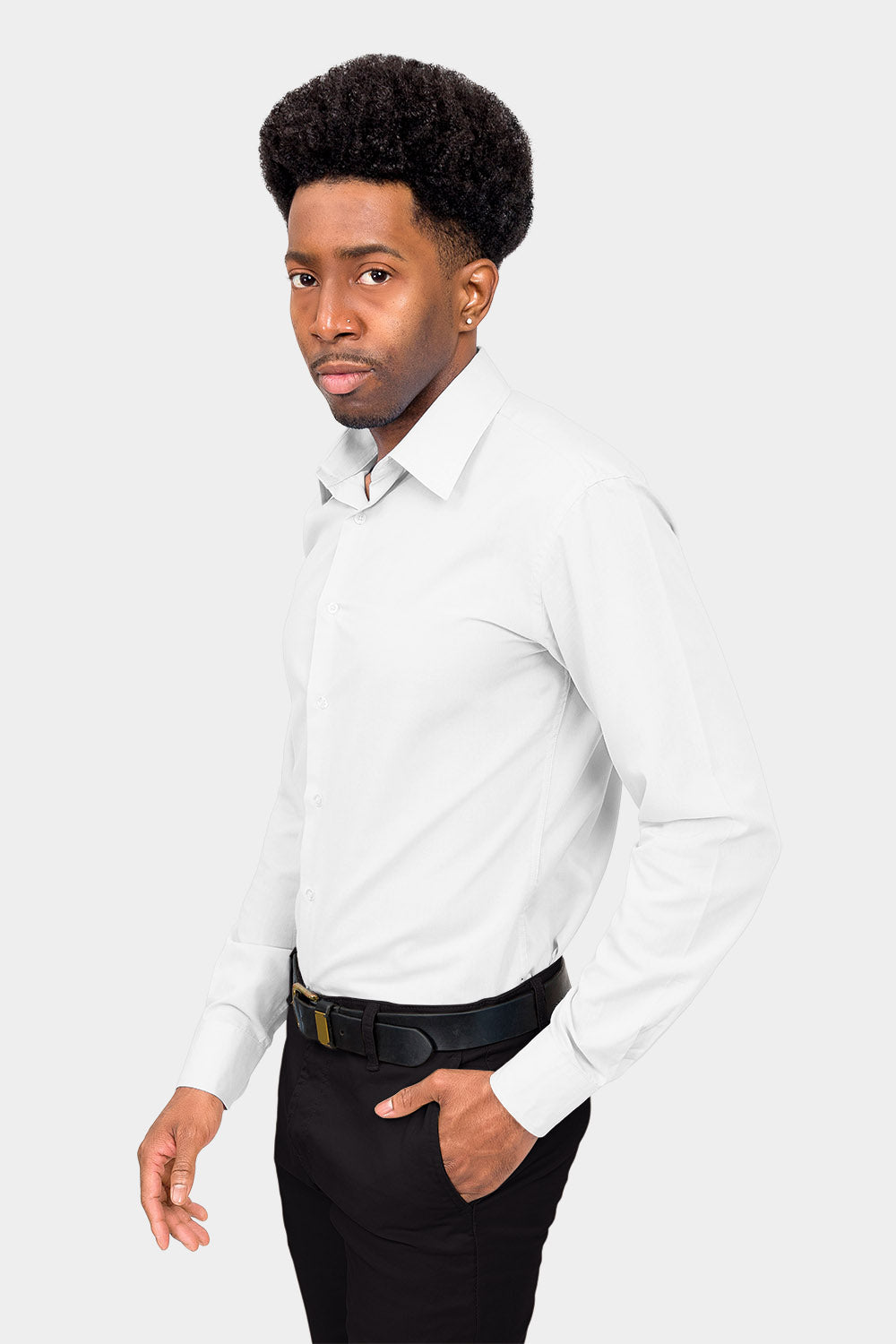 Men's Slim Fit Solid Color Dress Shirt (White)