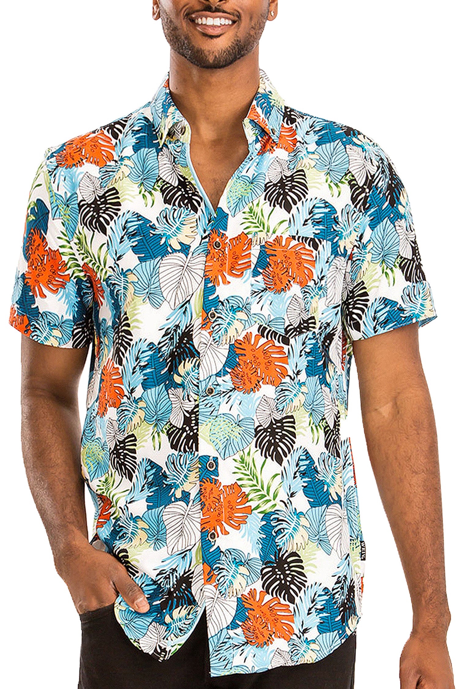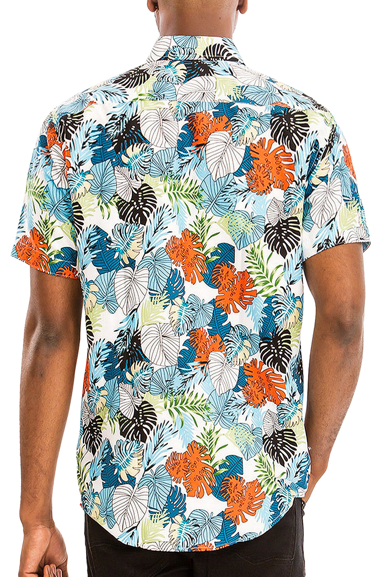 Men's Tropical Print Button Down Short Sleeve Shirts