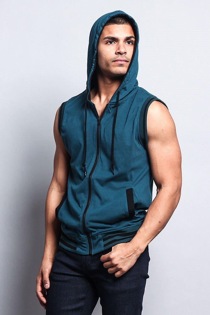Lightweight Sleeveless Contrast Hoodie