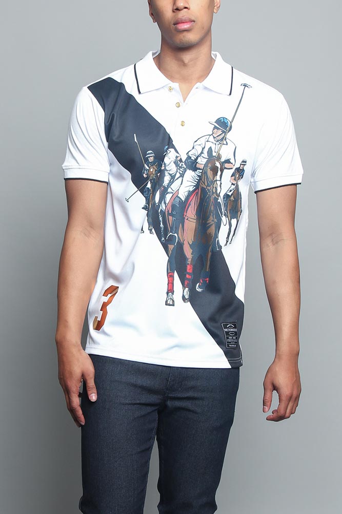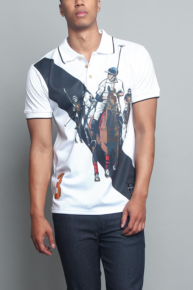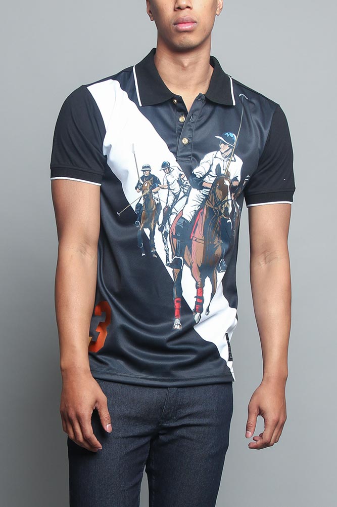 Look fly in our sport polo. Perfect for looking stylish without the costly prices. Featuring a metallic gold 3 on the corner, a two tone design, and a trim on the collar.