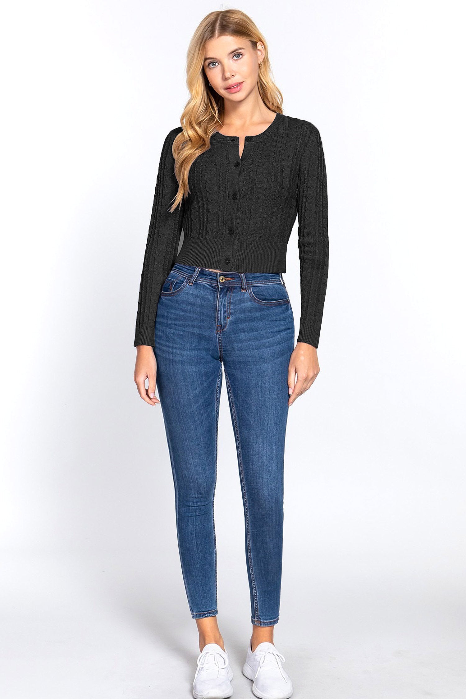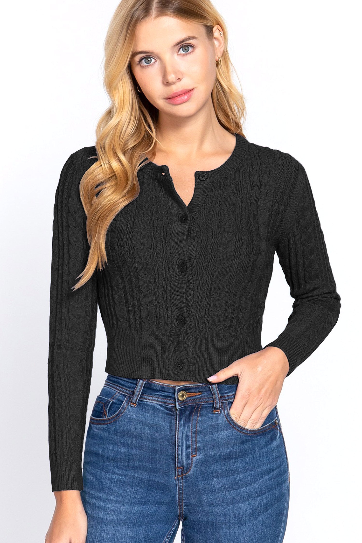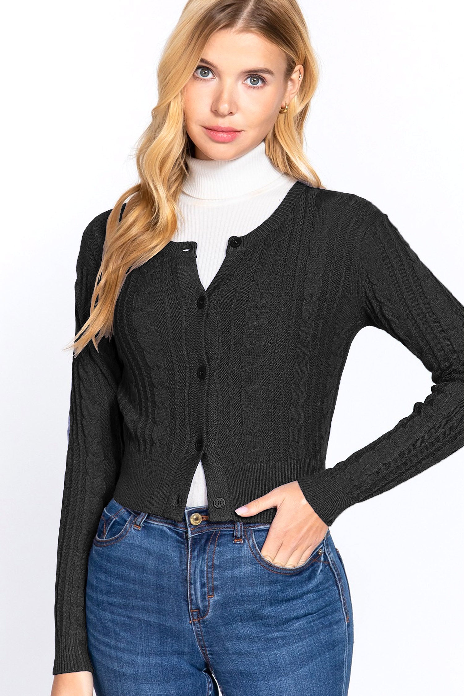 Women's Essential Long Sleeve Cable Sweater Cardigan
