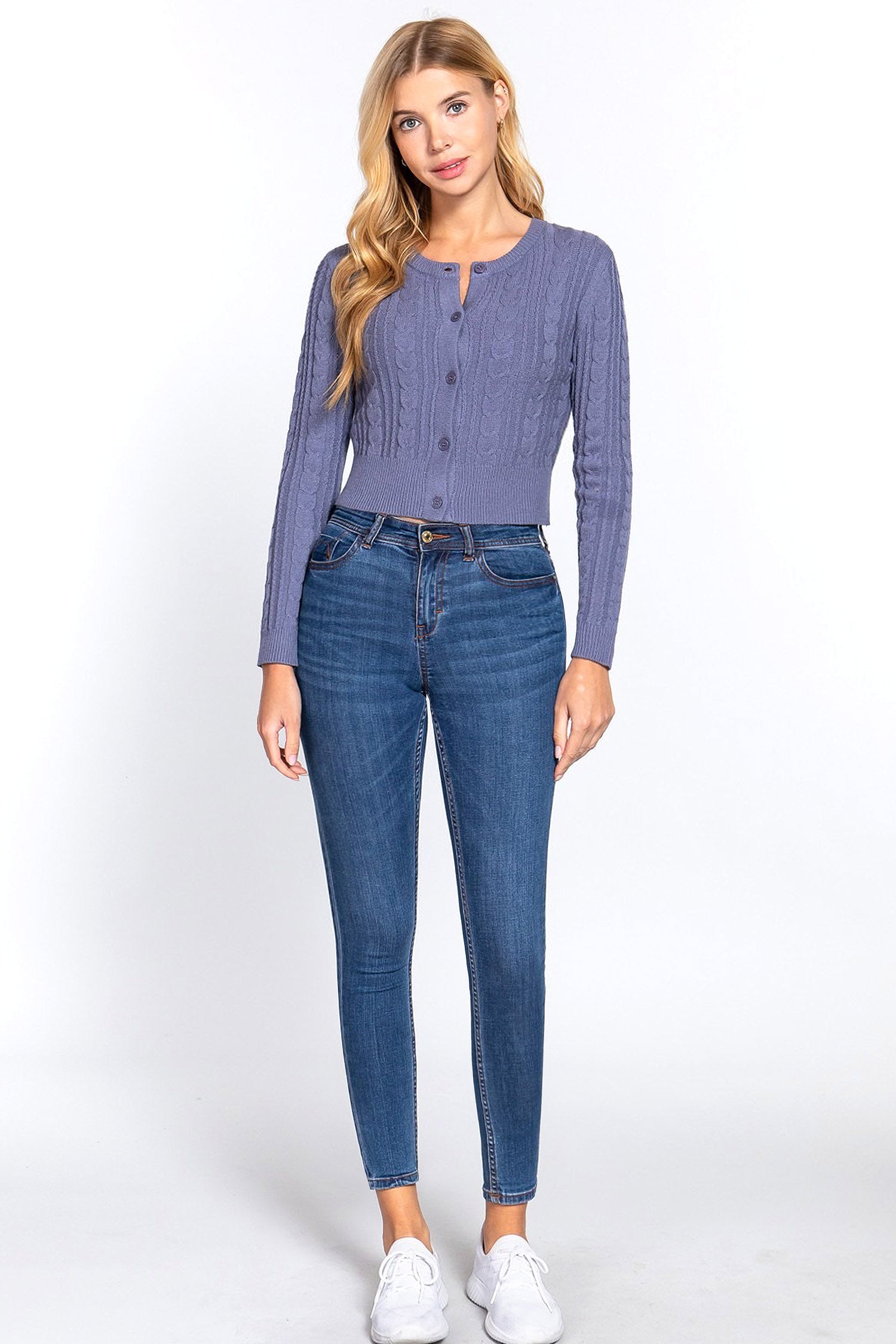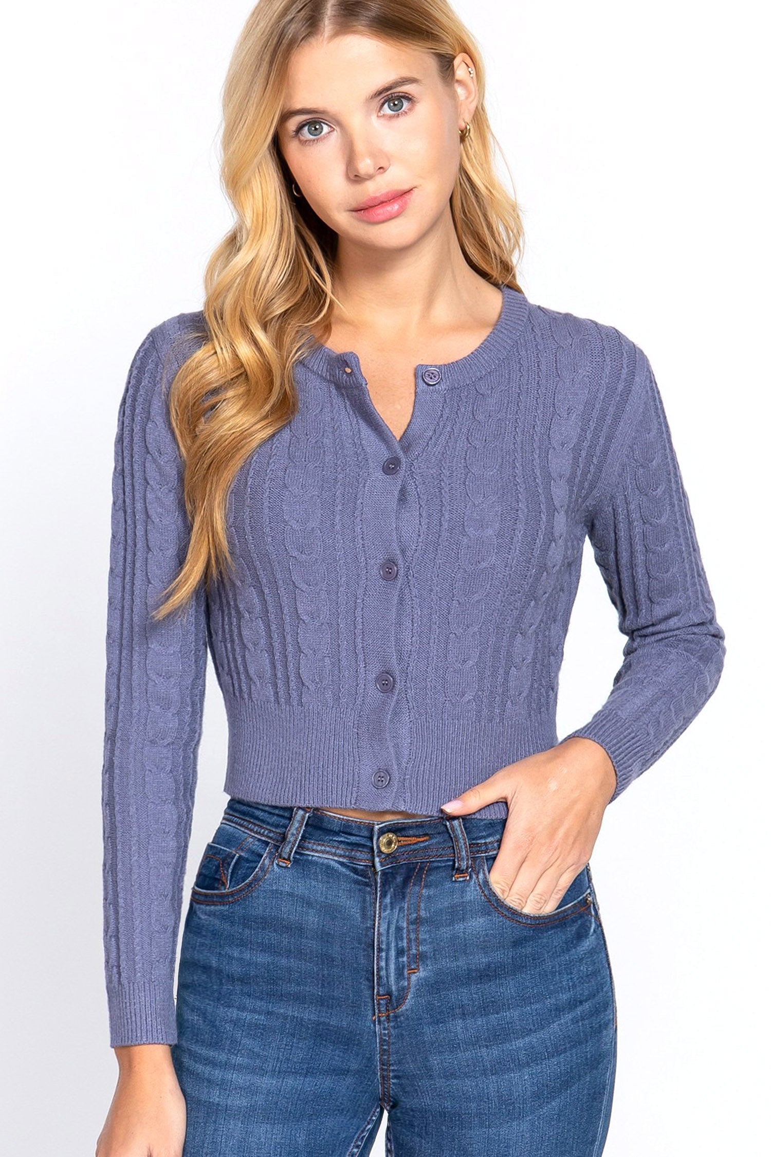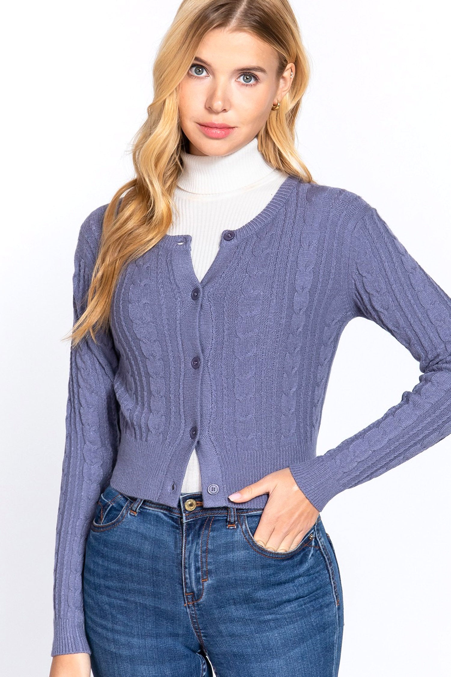Women's Essential Long Sleeve Cable Sweater Cardigan