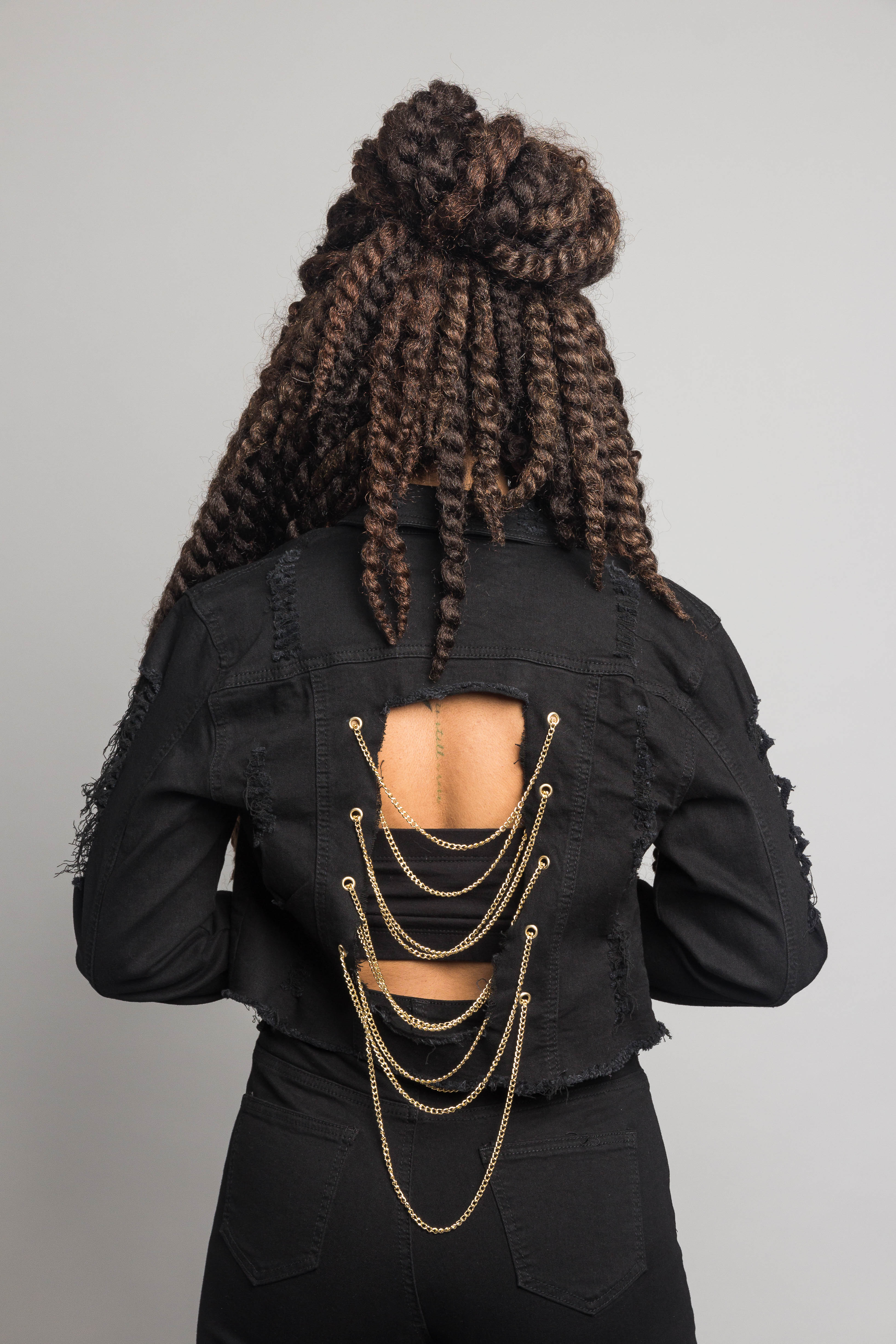 - Backless with gold chains across