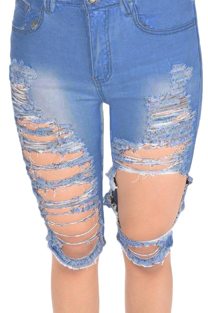 Women's Destroyed Denim Bermuda Shorts