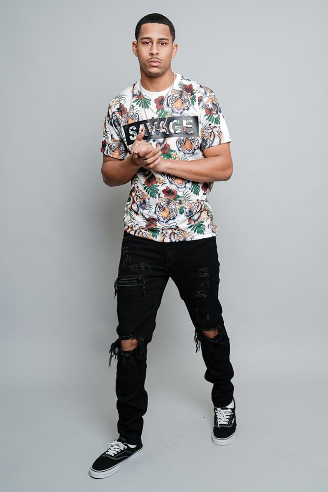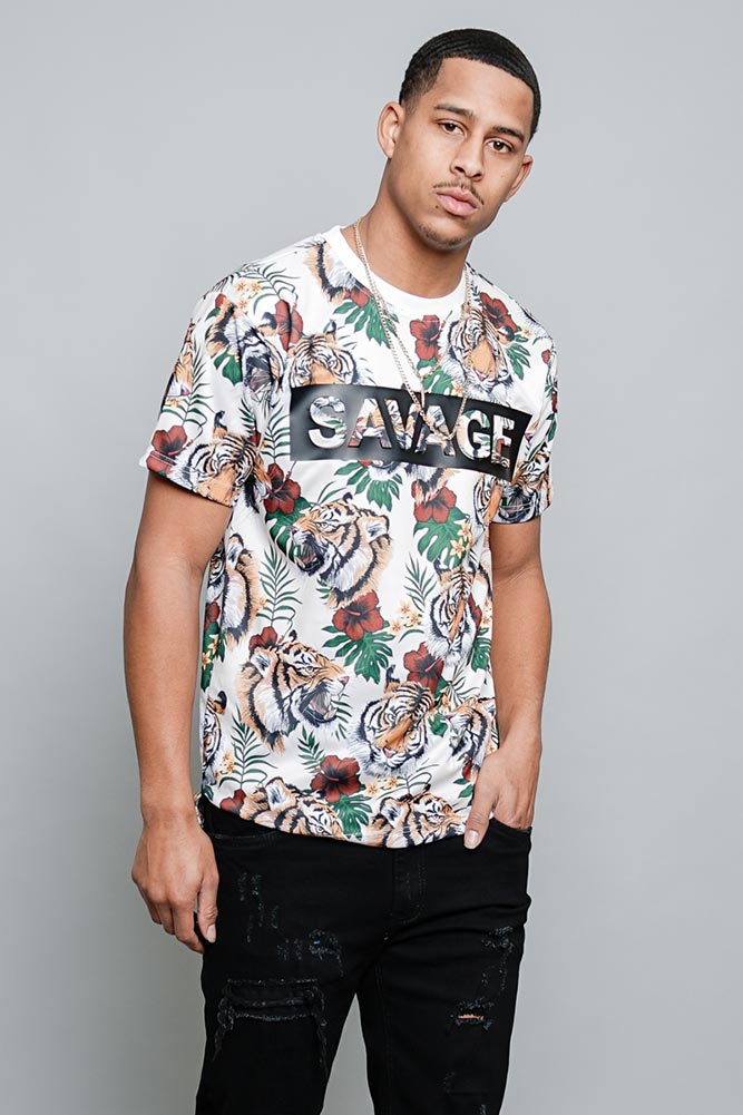Stand out in our 3D Savage Tiger tee. This shirt features unique details with 3D floral letters.