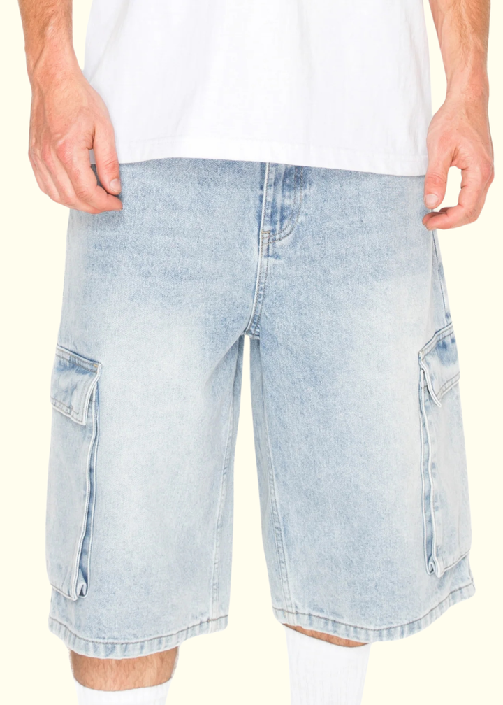 Upgrade your streetwear rotation with these baggy fit cargo denim shorts. Made from washed denim in Stone Black and Light Indigo, they feature a baggy silhouette.