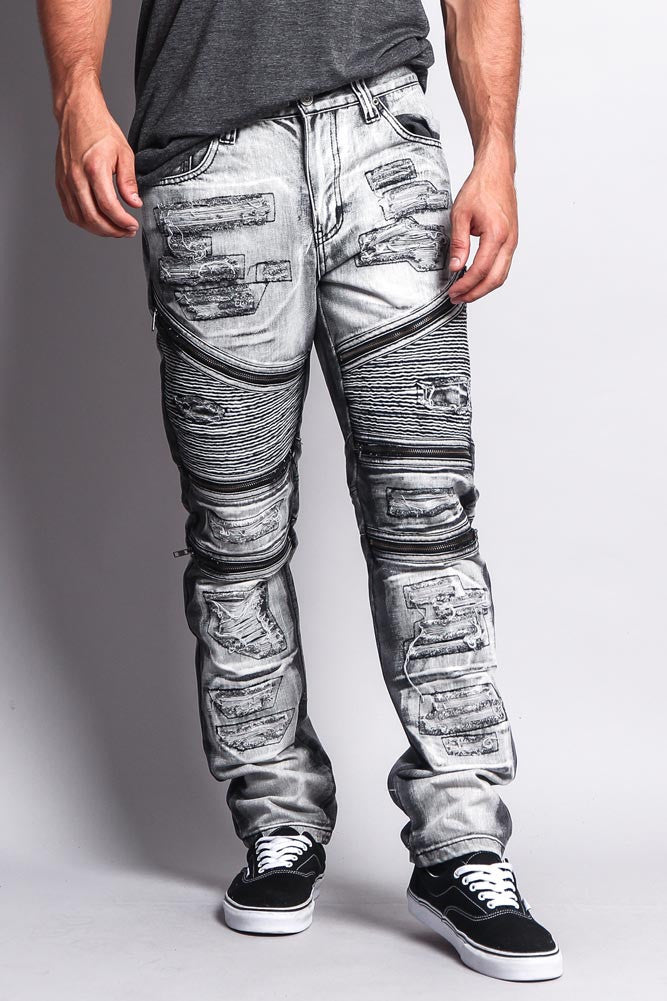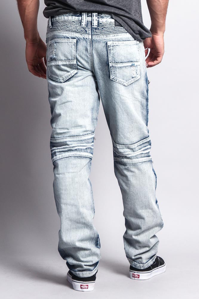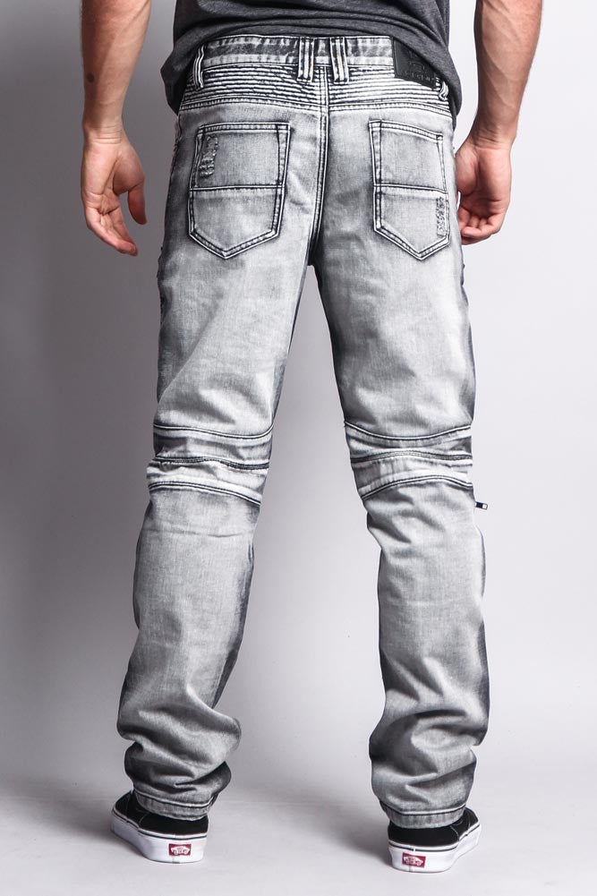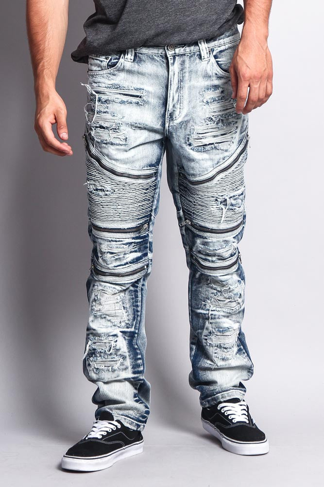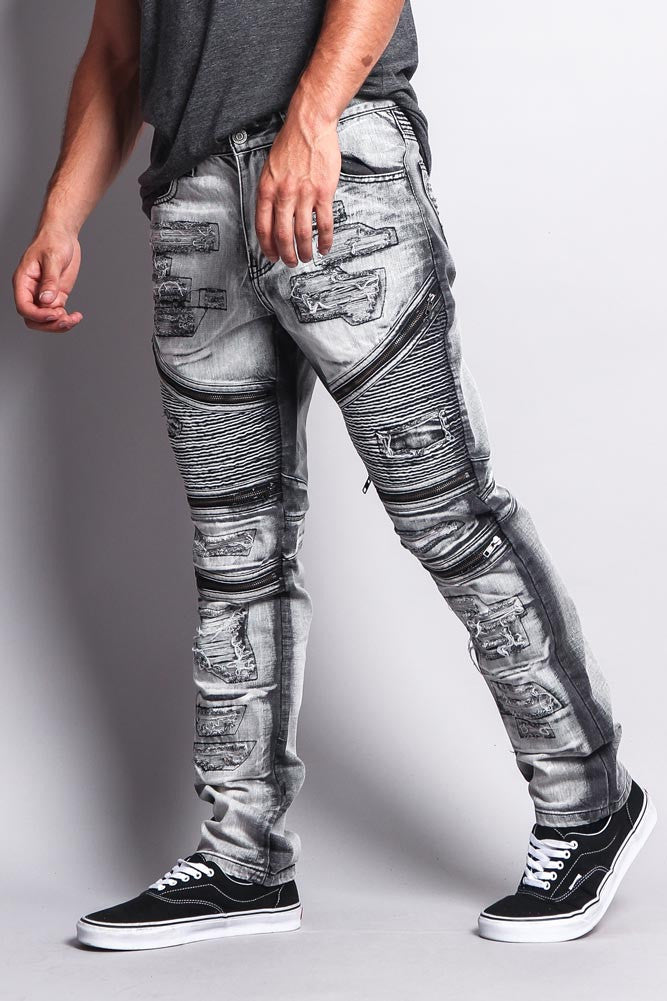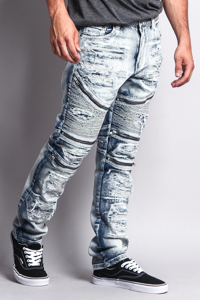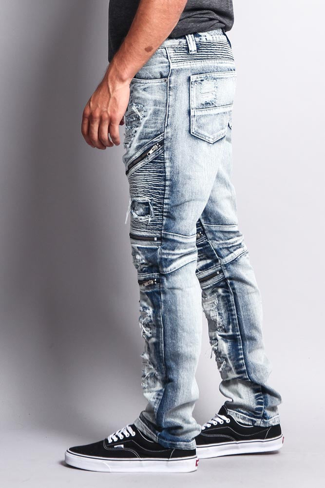 Biker Distressed Washed Slim Jeans