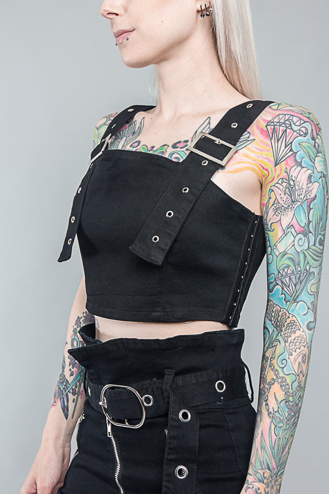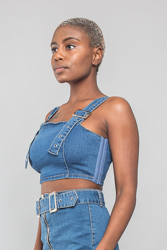 Stay fly in our cropped buckled shirt and complete the look by pairing this super cute shirt with our stylish and trendy buckled skirt (RSK3297).