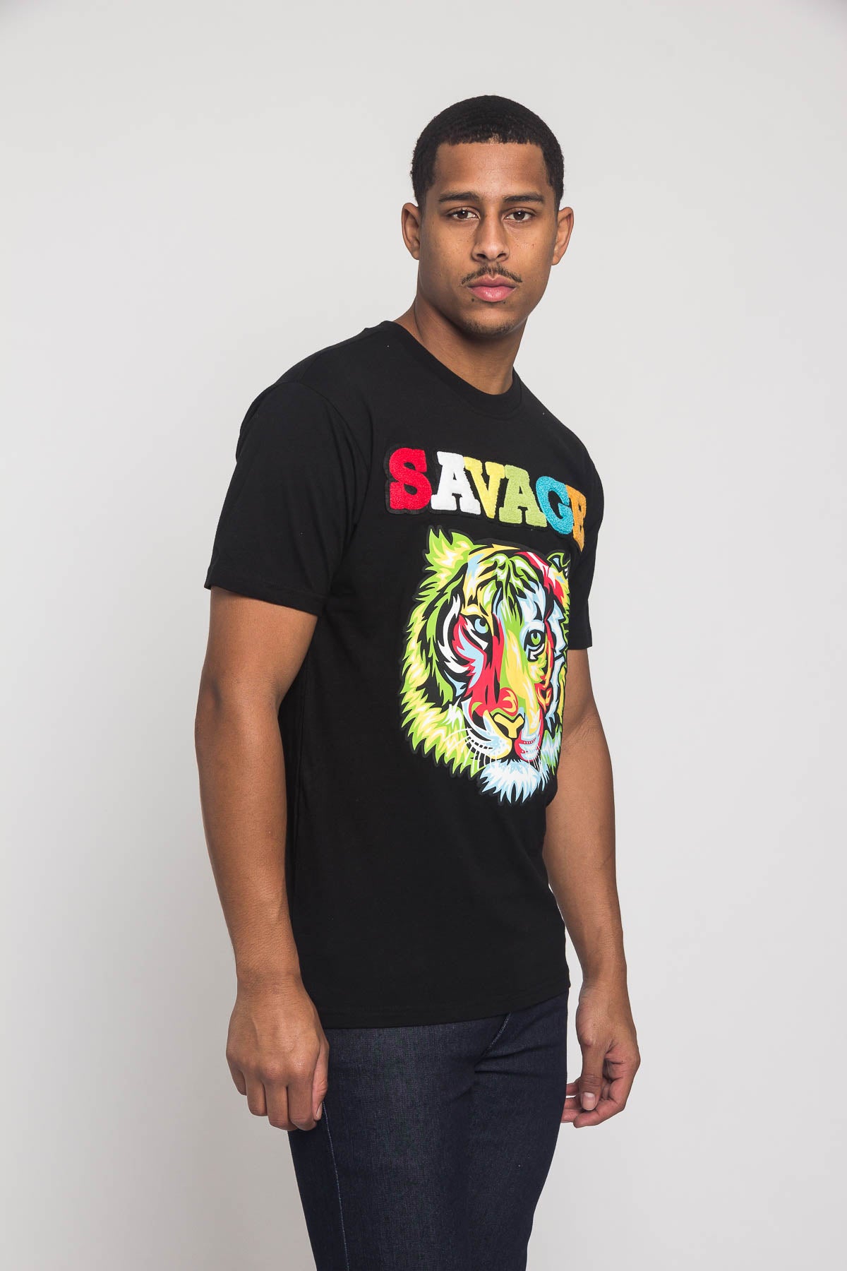 Colorful Chenille Patched Savage Tiger T-Shirt