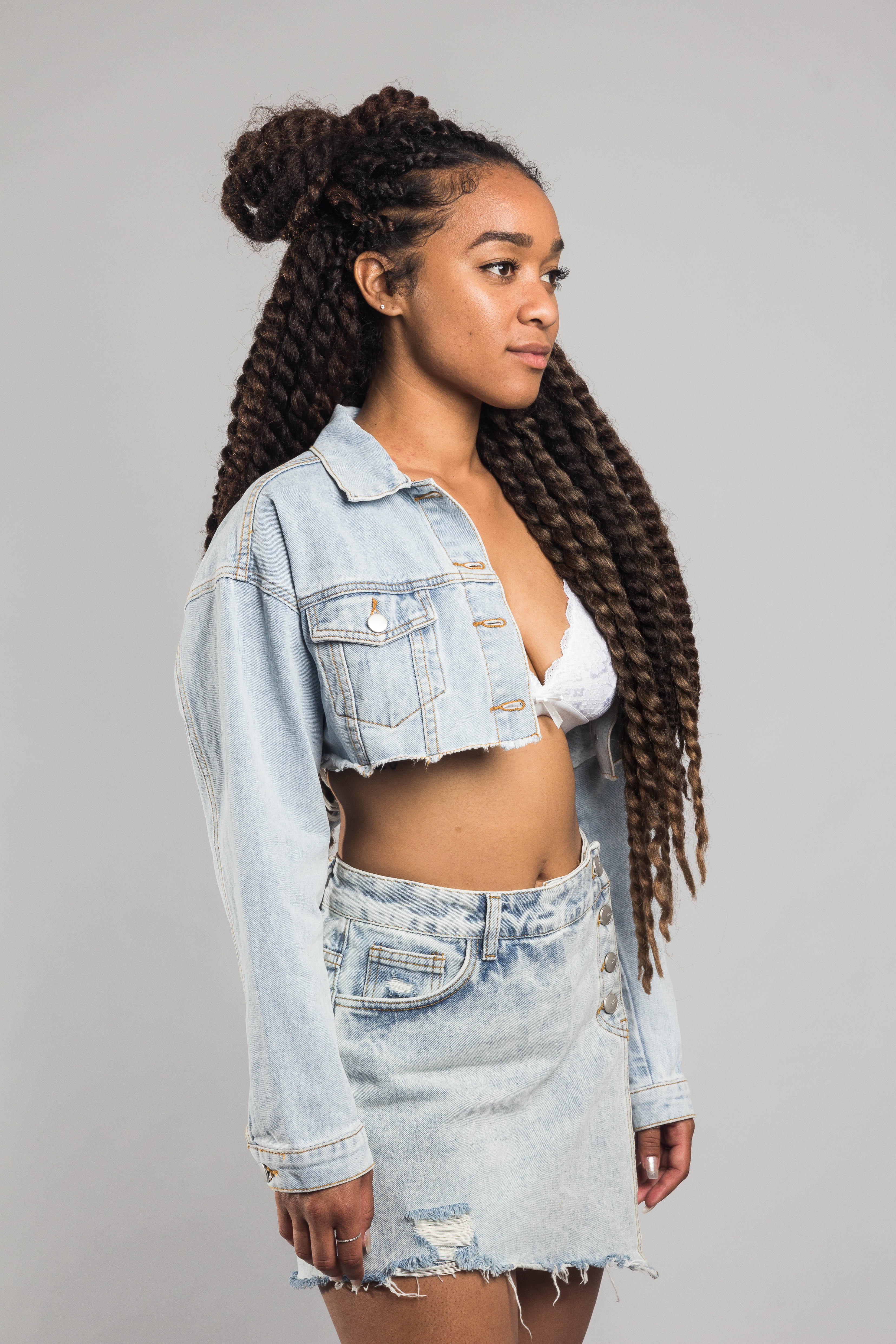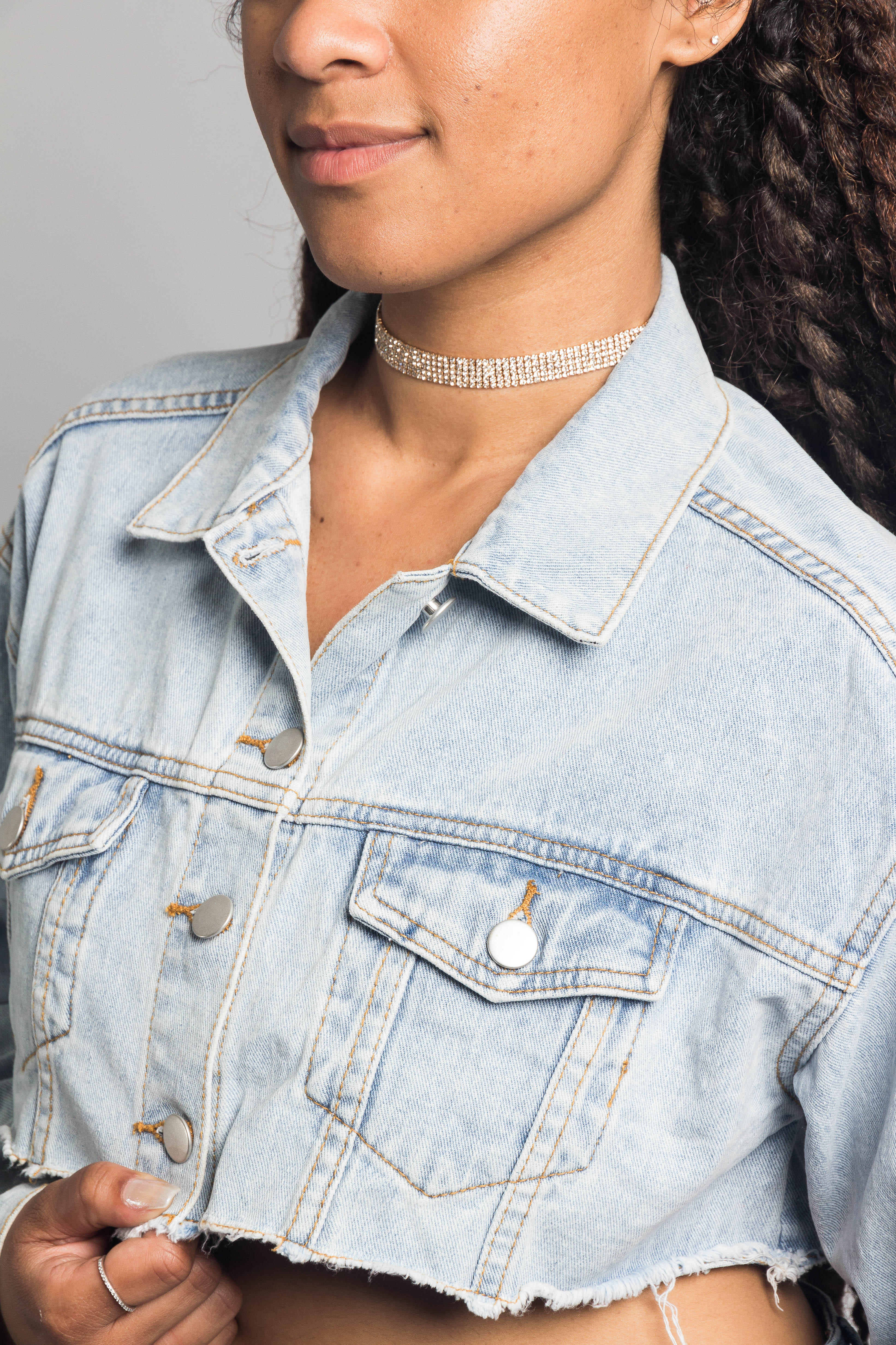 The best just got better. This newly improved cropped denim jacket is an essential piece in everyone's closet. Turn heads and catch compliments in this killer piece. Designed to flatter, this jacket is cropped short at the perfect length to compliment any look.