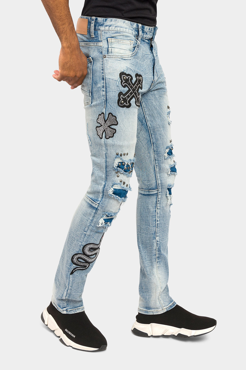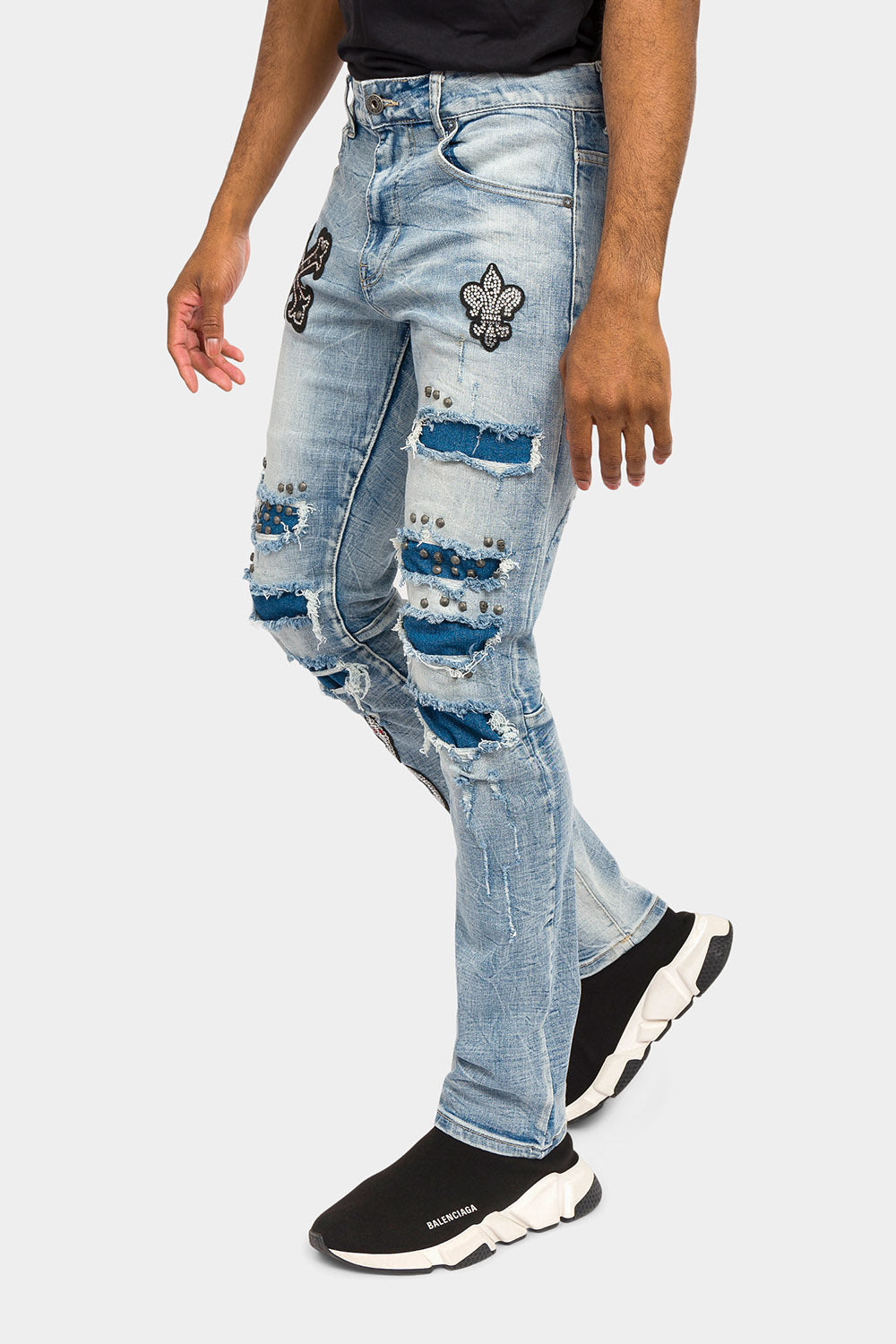 Crystals embellished patches studded Denim Jeans