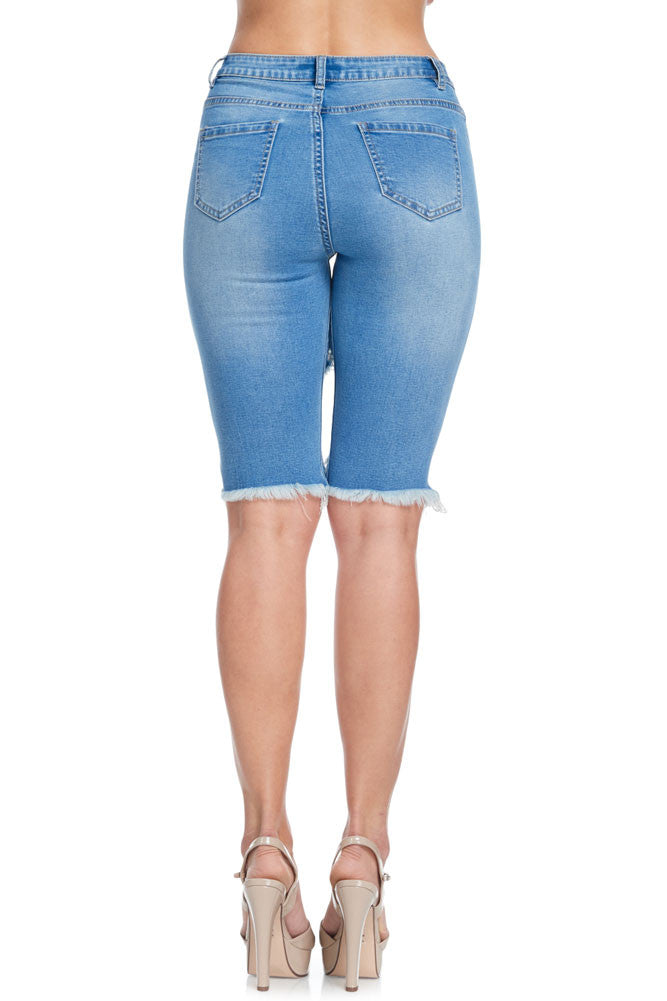 Cut Off Knee Length Ripped Skinny Fit Shorts
