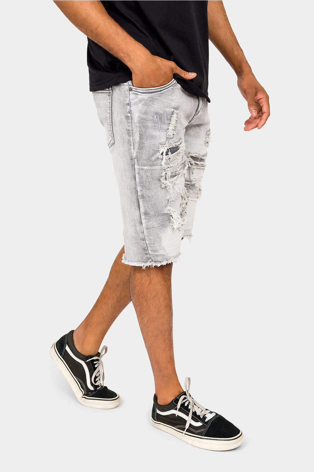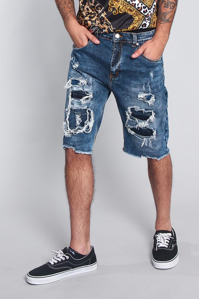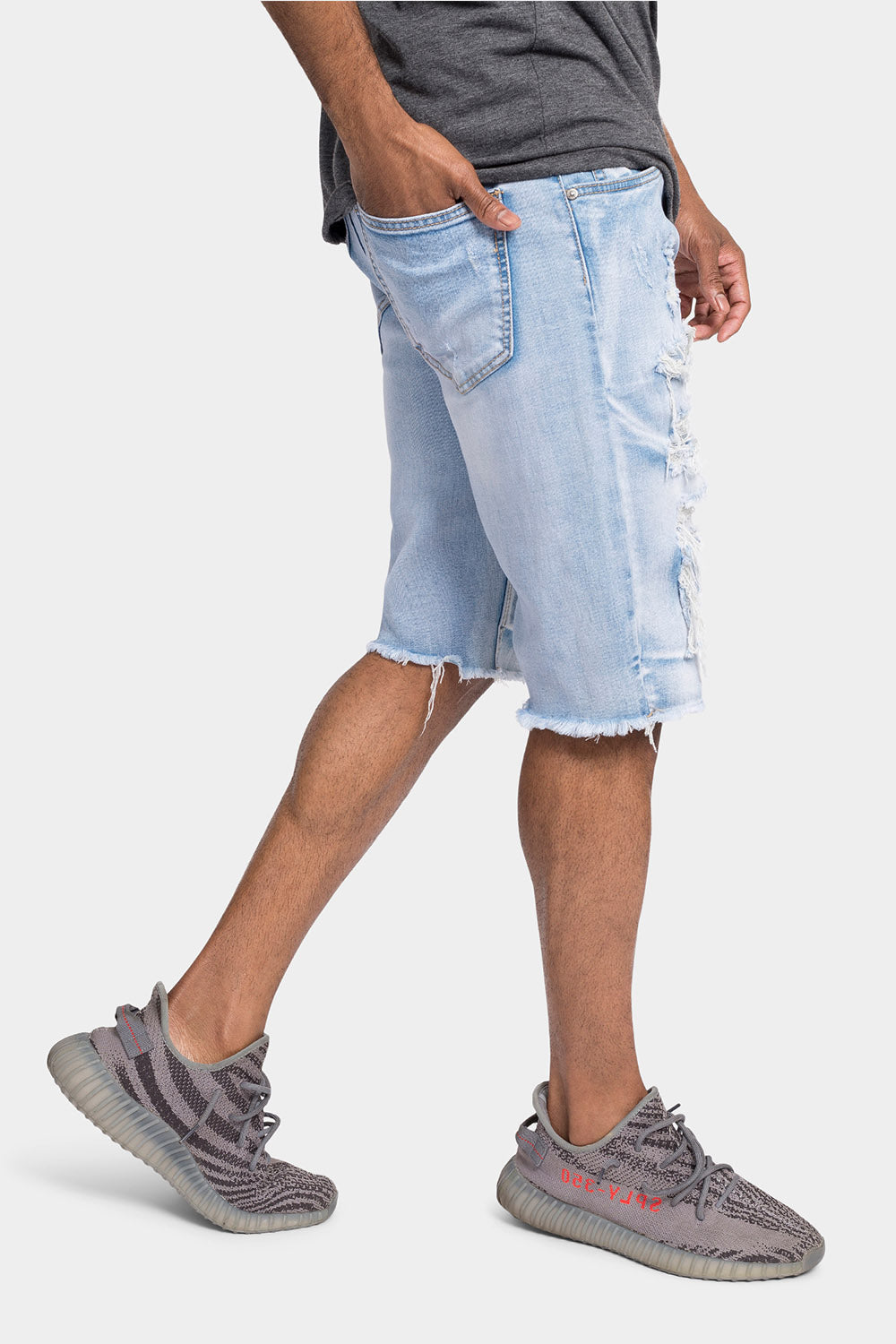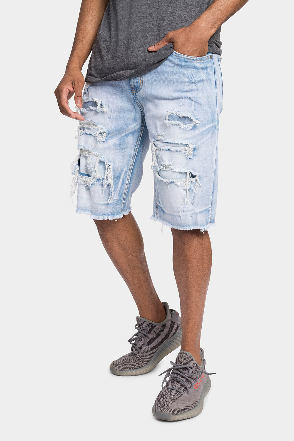 Look cool and stay cooler in our distressed illusion shorts. These fashionable shorts feature an unique threadbare design look to capture anyone's attention.