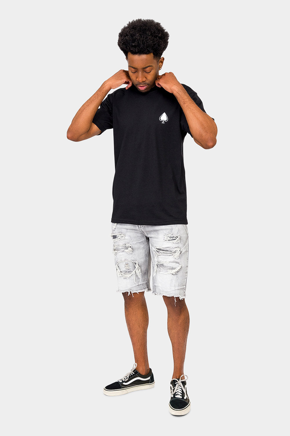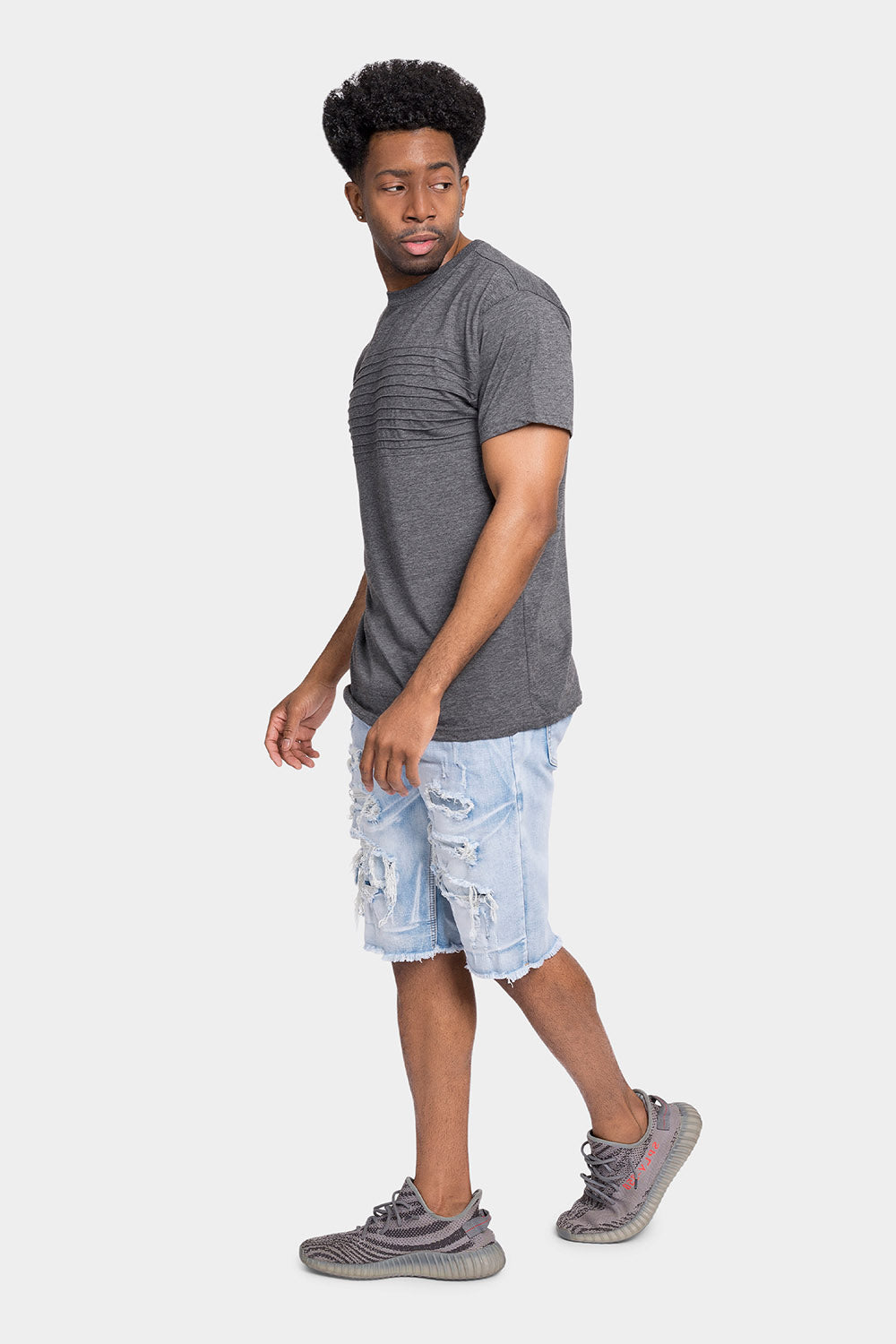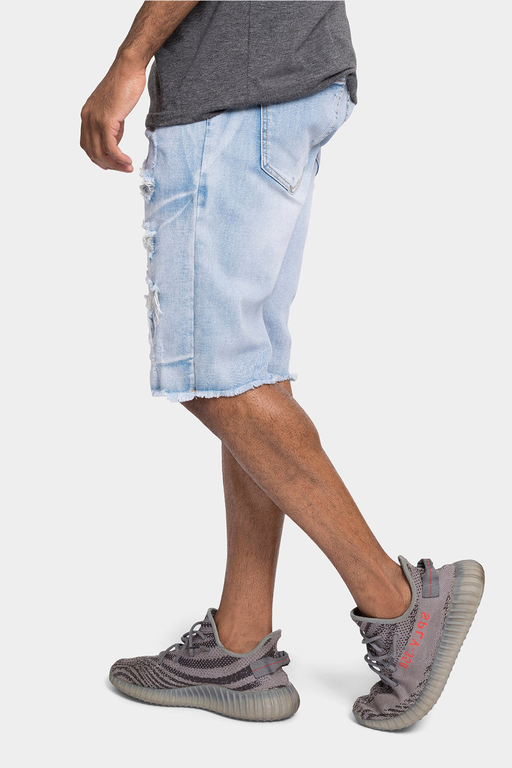 Look cool and stay cooler in our distressed illusion shorts. These fashionable shorts feature an unique threadbare design look to capture anyone's attention.