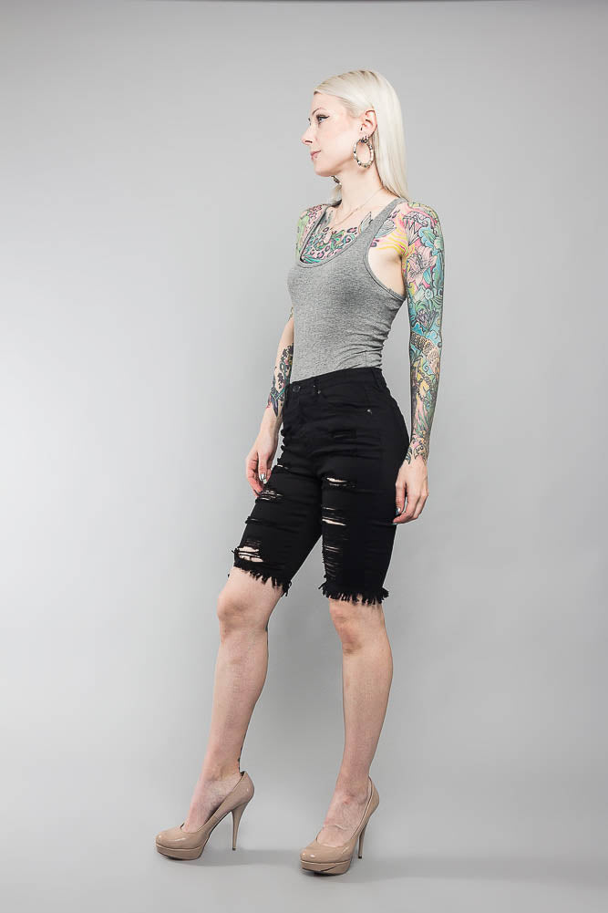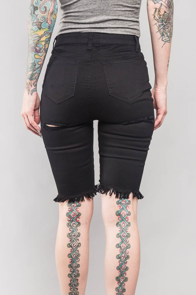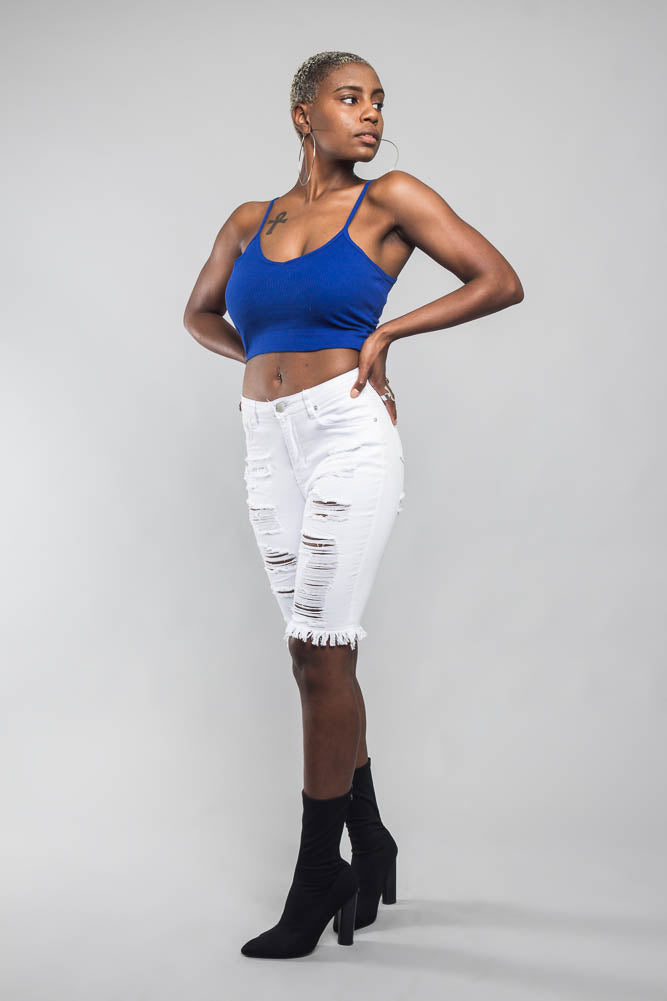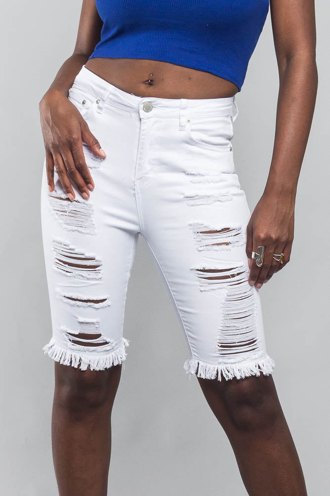 These super cute double sided distressed shorts are the perfect combo of the new trends and comfort. Added spandex material creates the perfect fit, ideal for anyone struggling to find the perfect fit at the waist while complimenting the thighs.