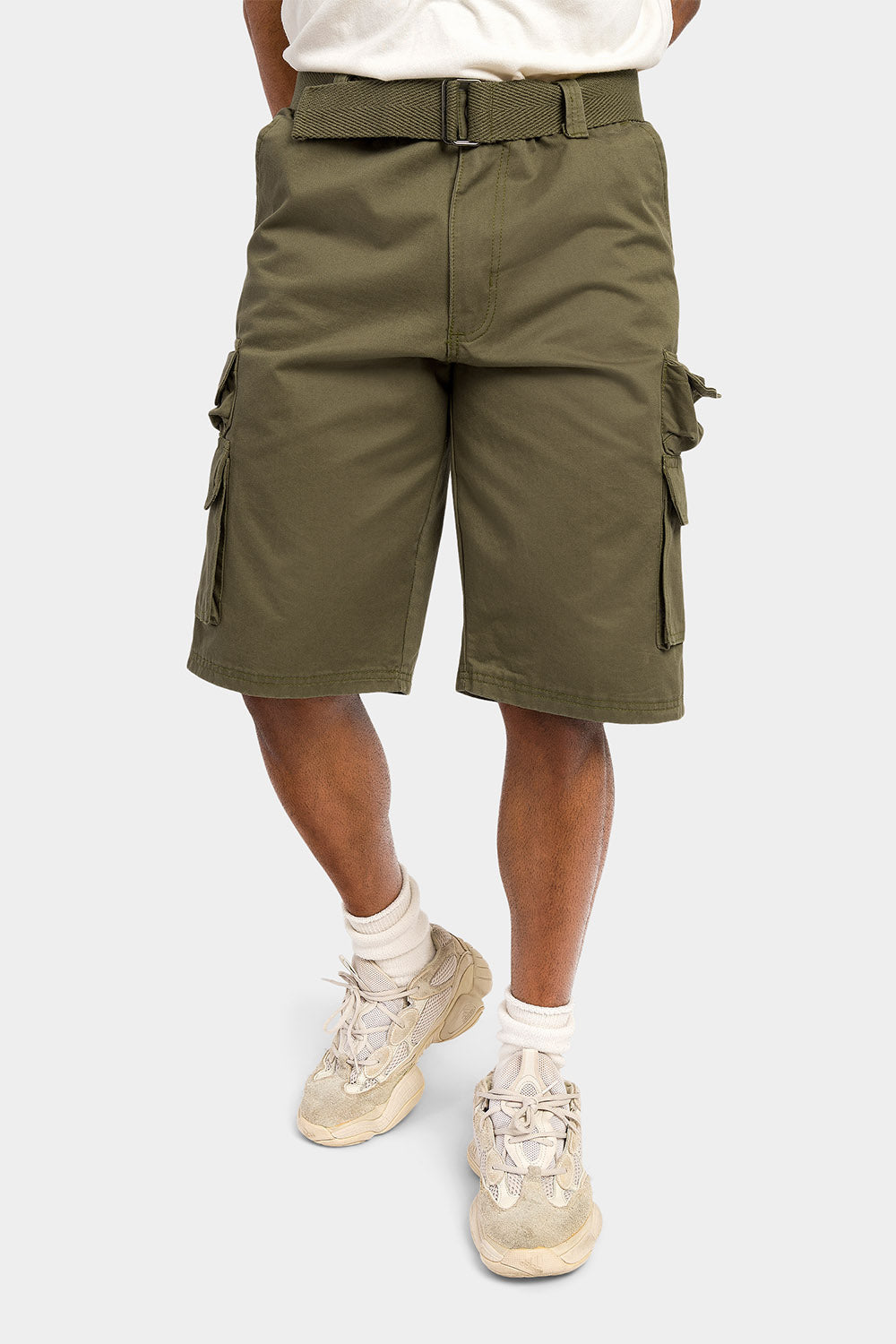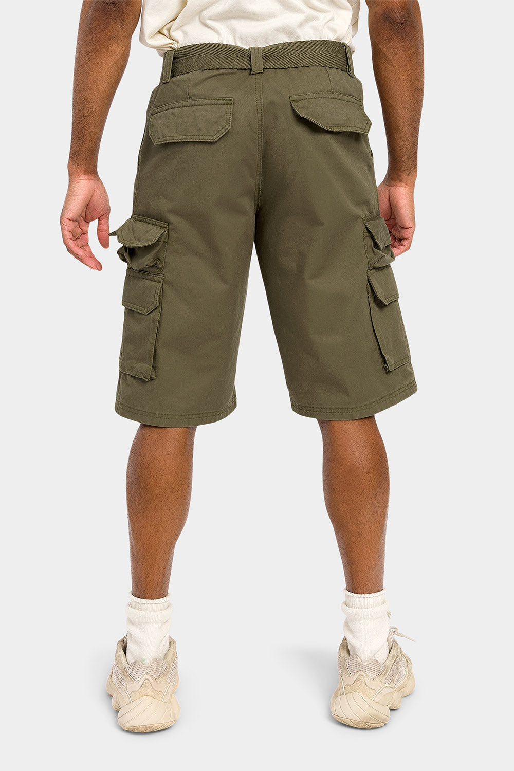 Essential Solid Relaxed Fit Chino Cargo Shorts