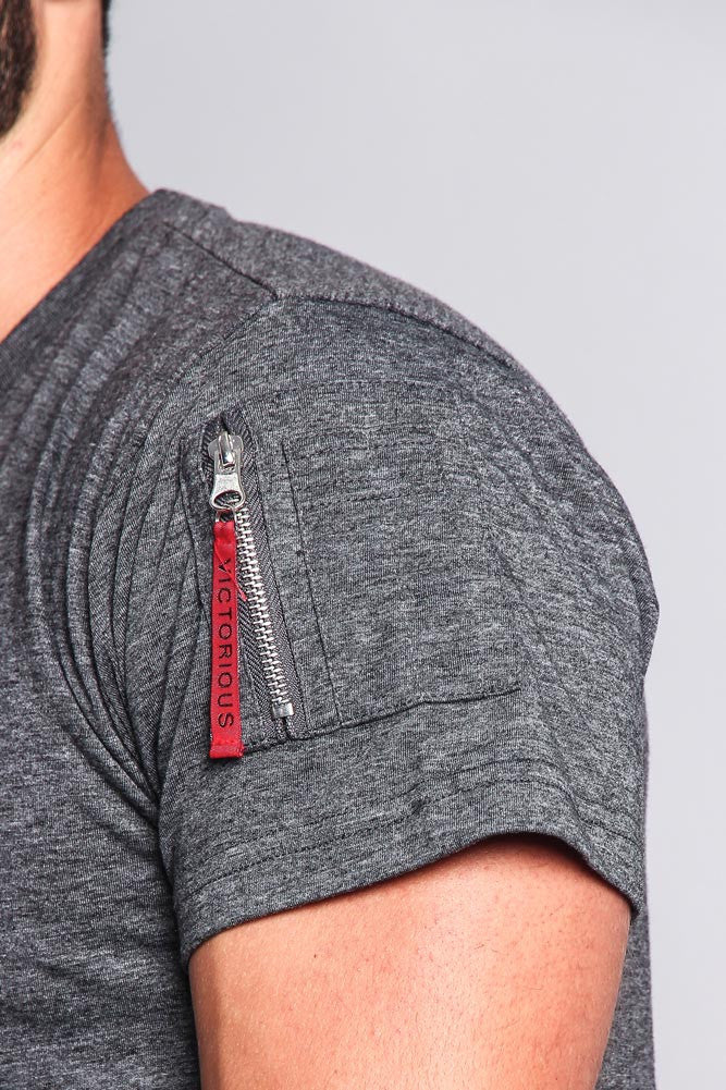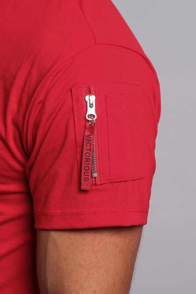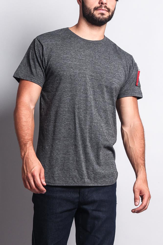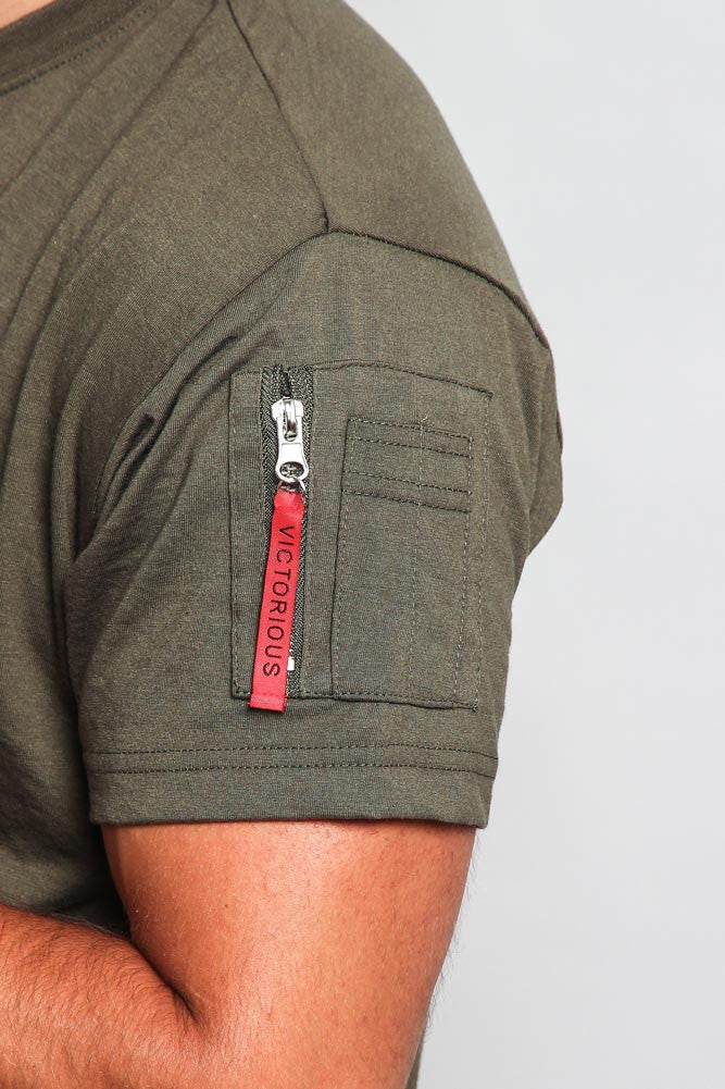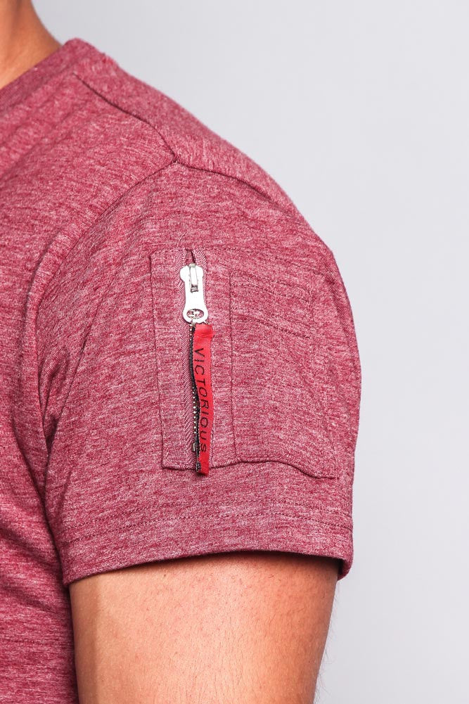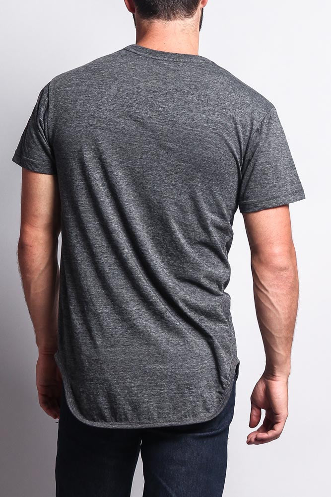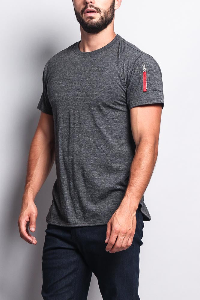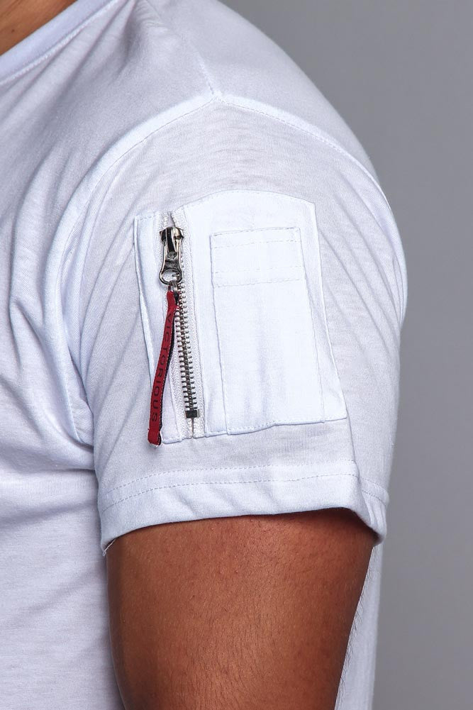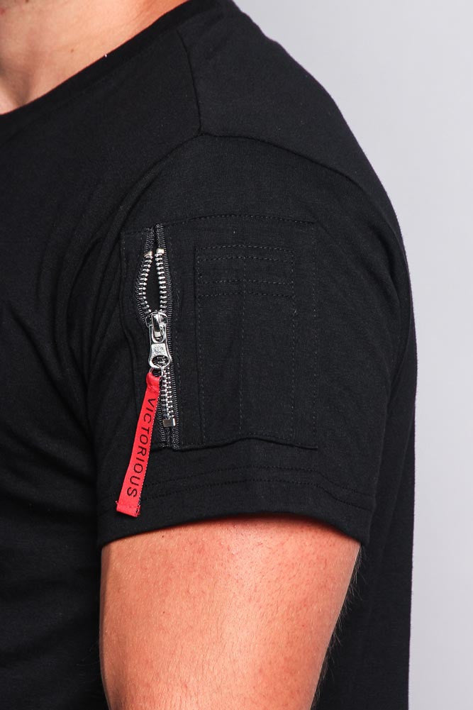 Upgrade your basic tee with this trendy extended length t-shirt with a curved baseball-style hem. Features that classic timeless MA-1 style sleeve pocket that you might originally find on this season's most popular bomber jackets. Looks great layered under a short jacket!