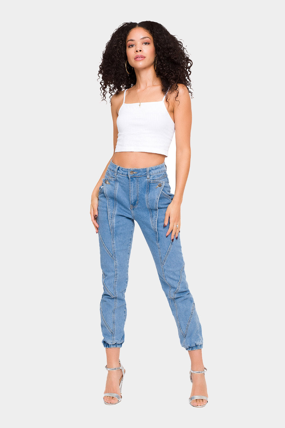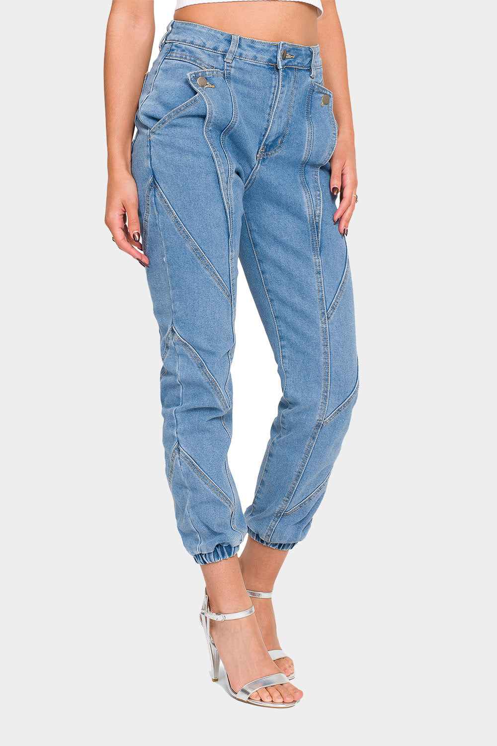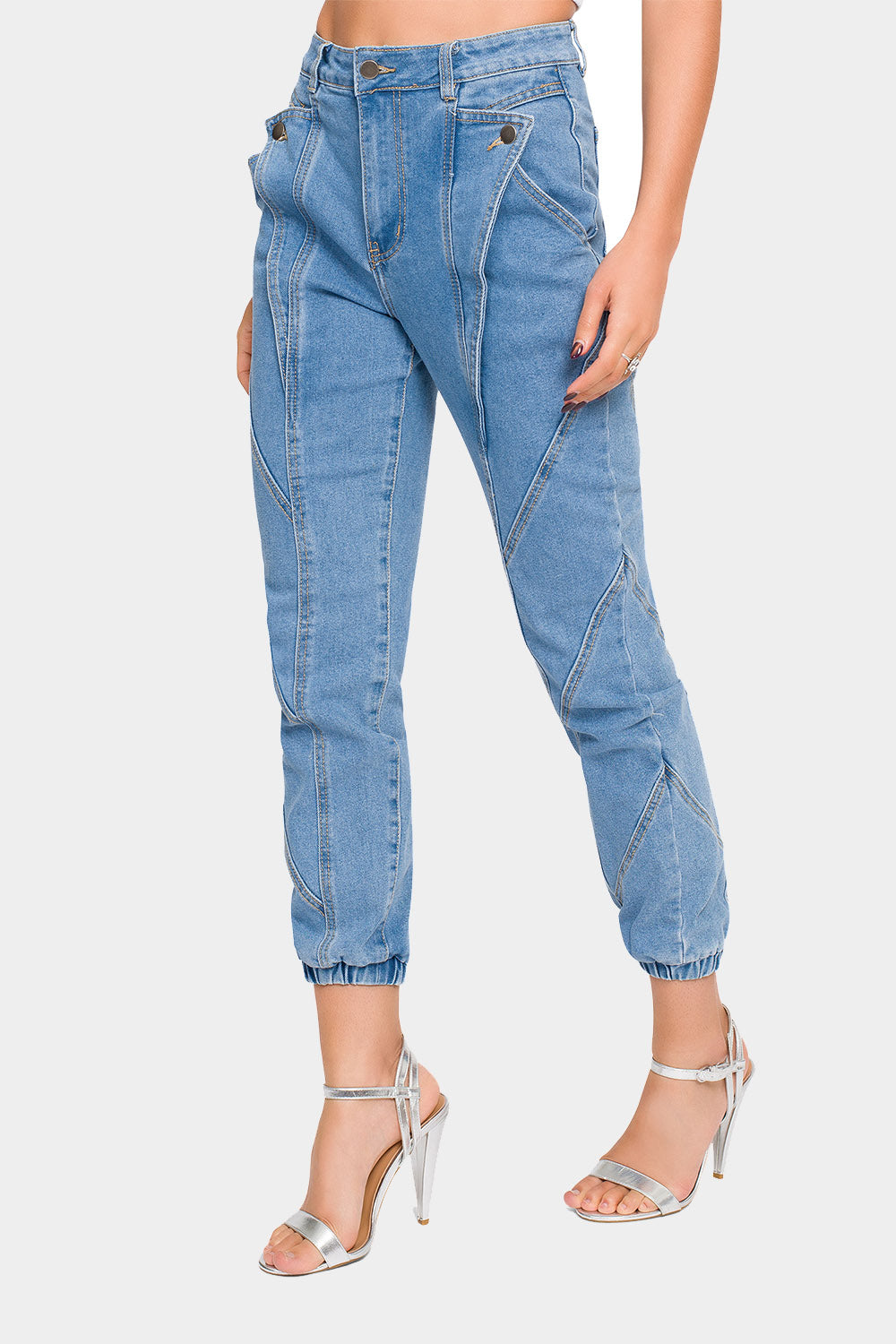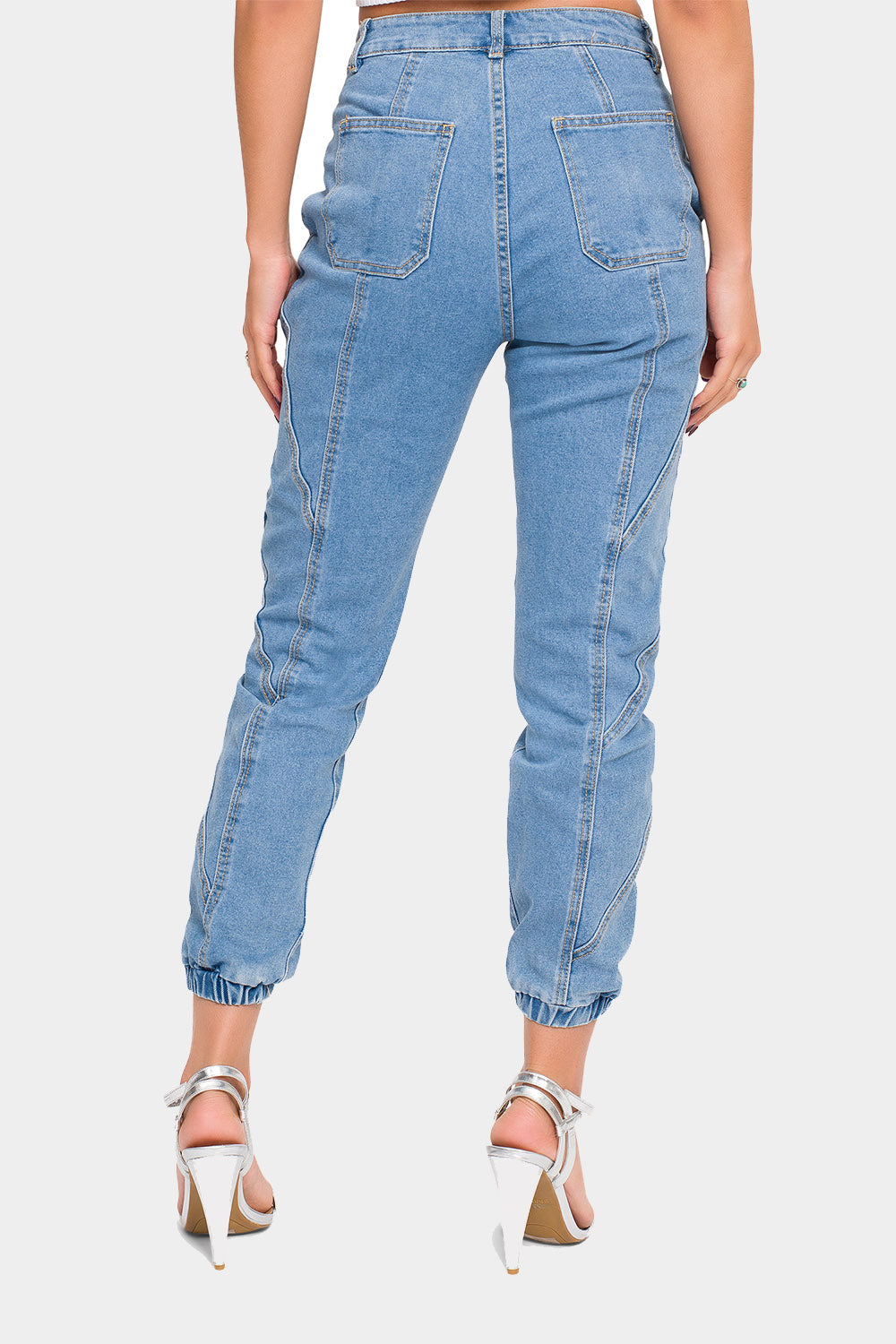 High Rise Detail Sewing Denim Joggers