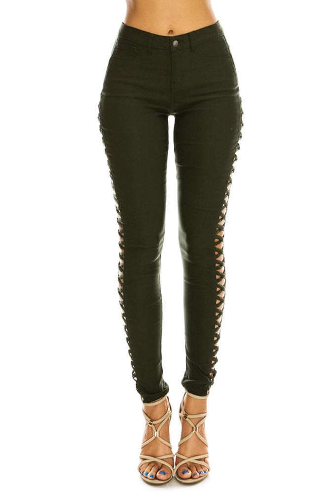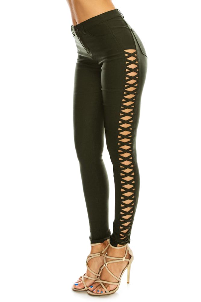 Stay effortlessly cool this season and comfortable with the popular stretch skinny pants with trendy eye-catching side cutouts!