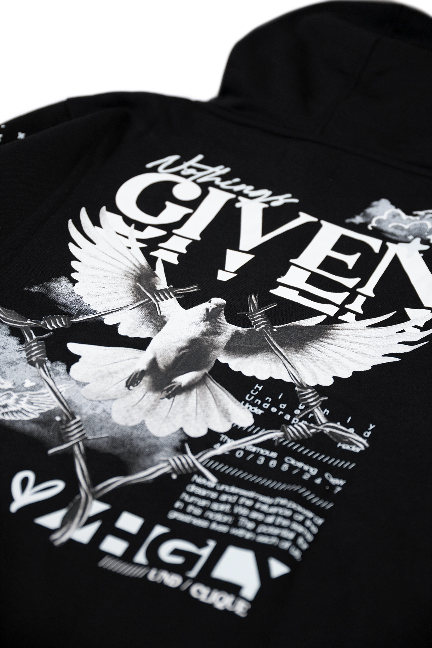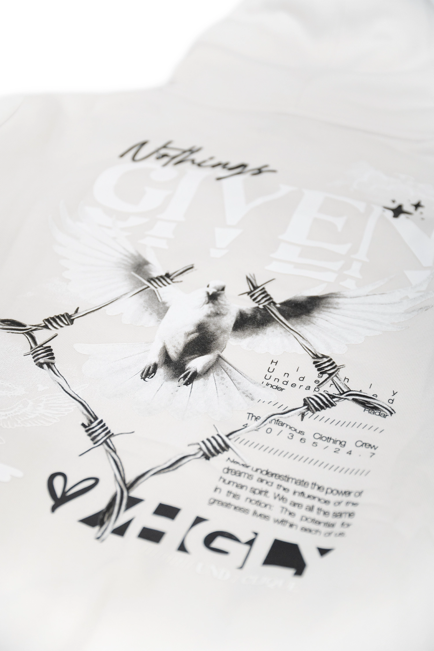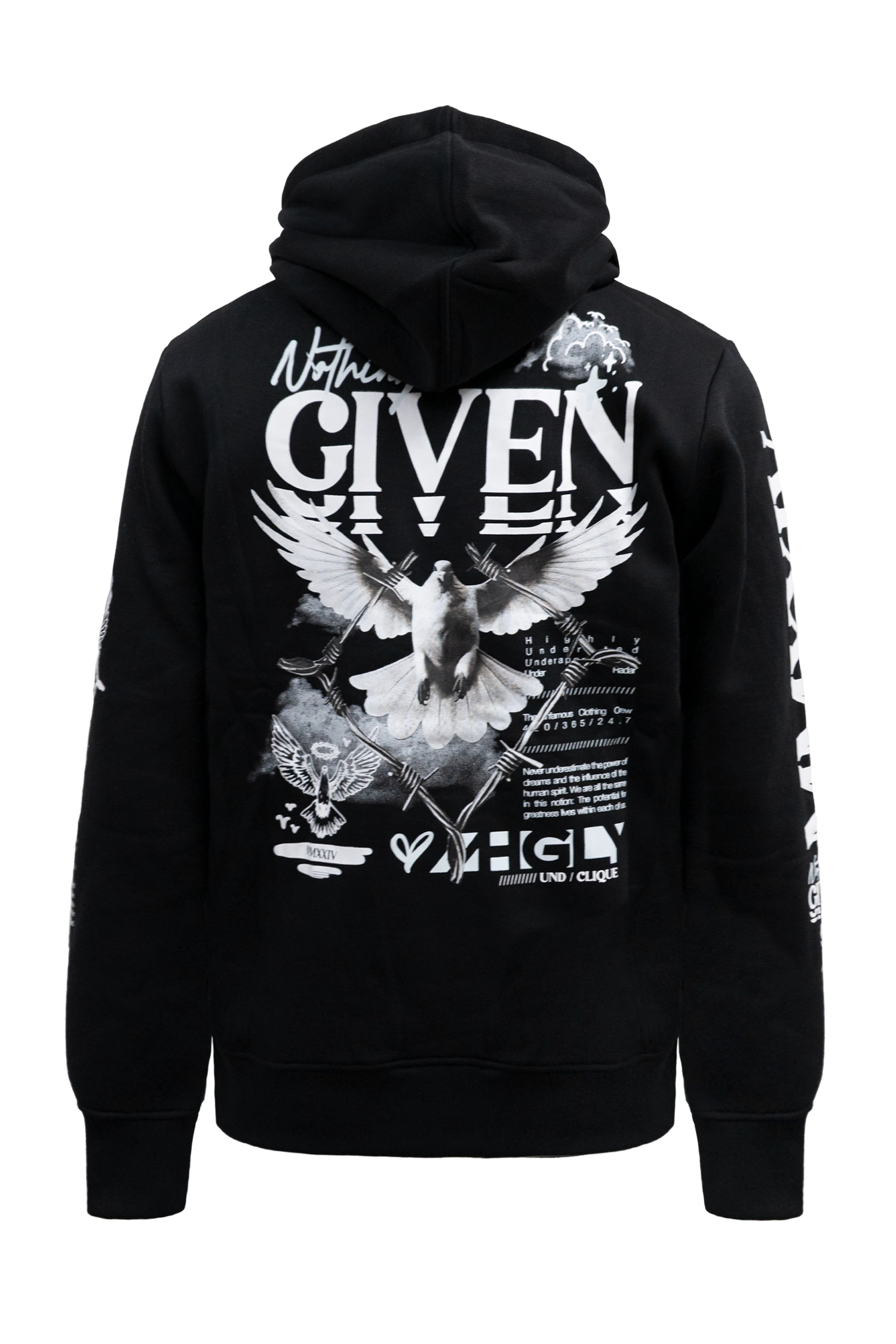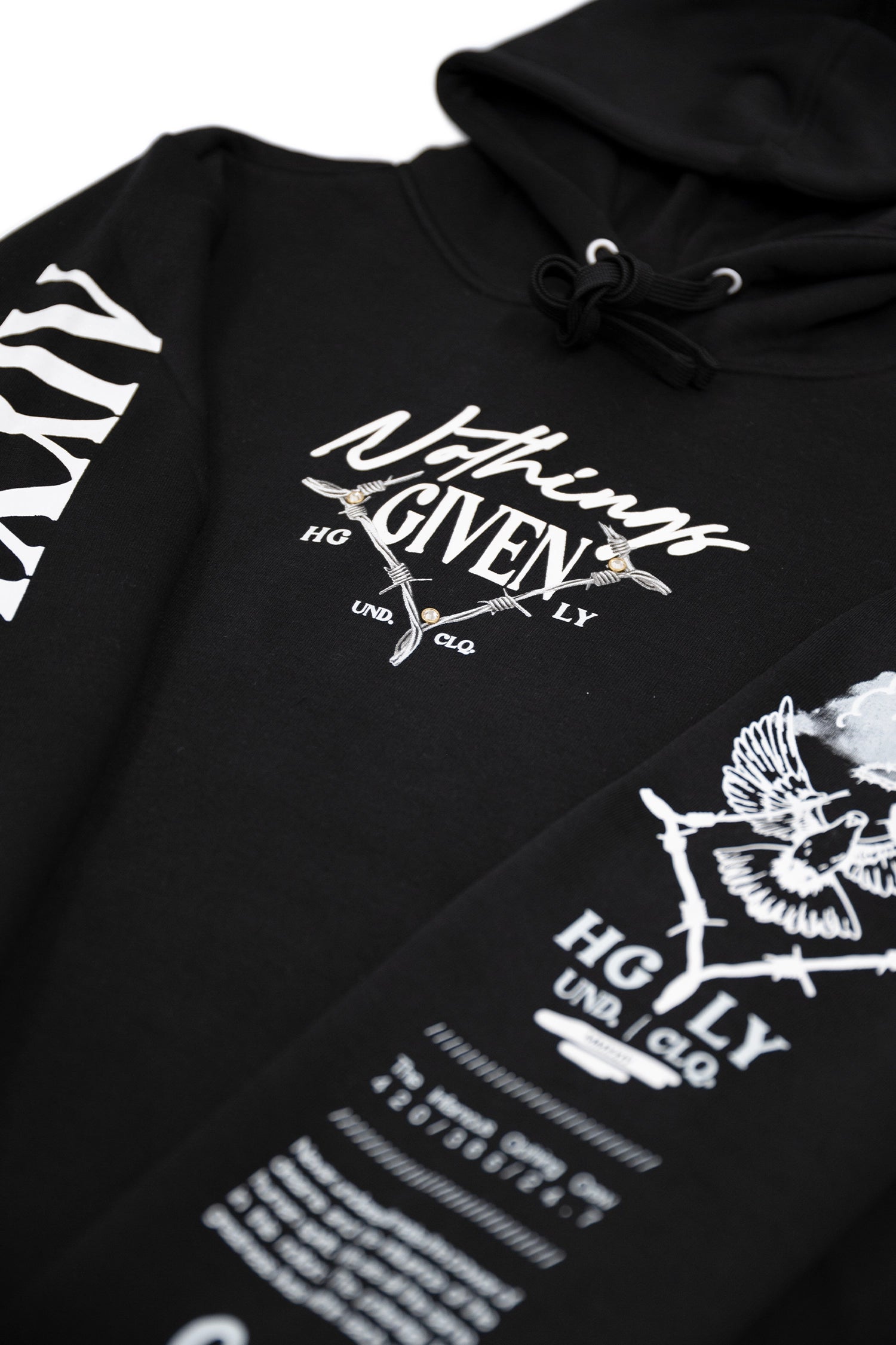 Stand out in bold streetwear style with the Nothing Given Graphic Hoodie. Featuring a striking back print of a dove breaking through barbed wire, this hoodie represents strength, freedom, and hustle. Crafted from soft fleece for everyday comfort, it’s finished with sleeve graphics and bold “Nothing Given” lettering for a statement look.