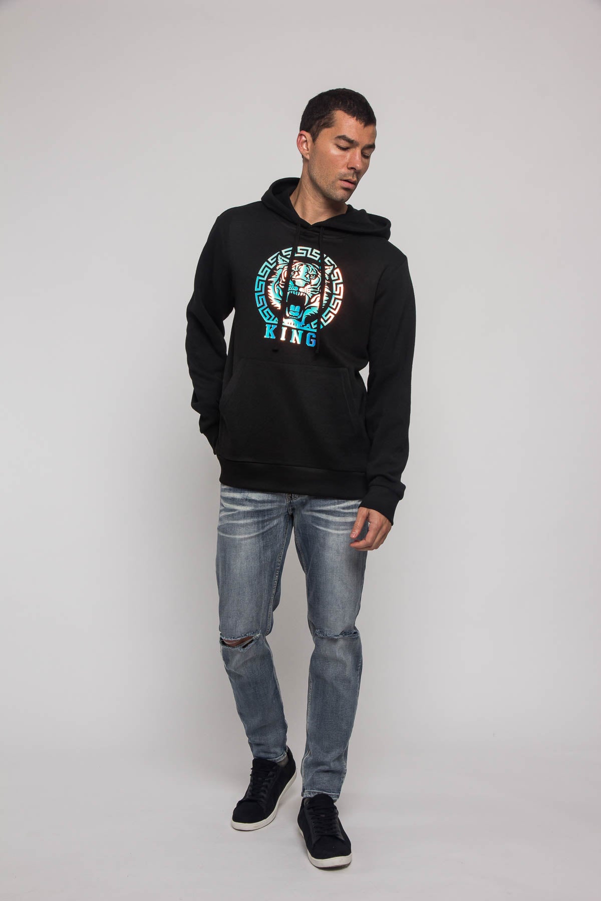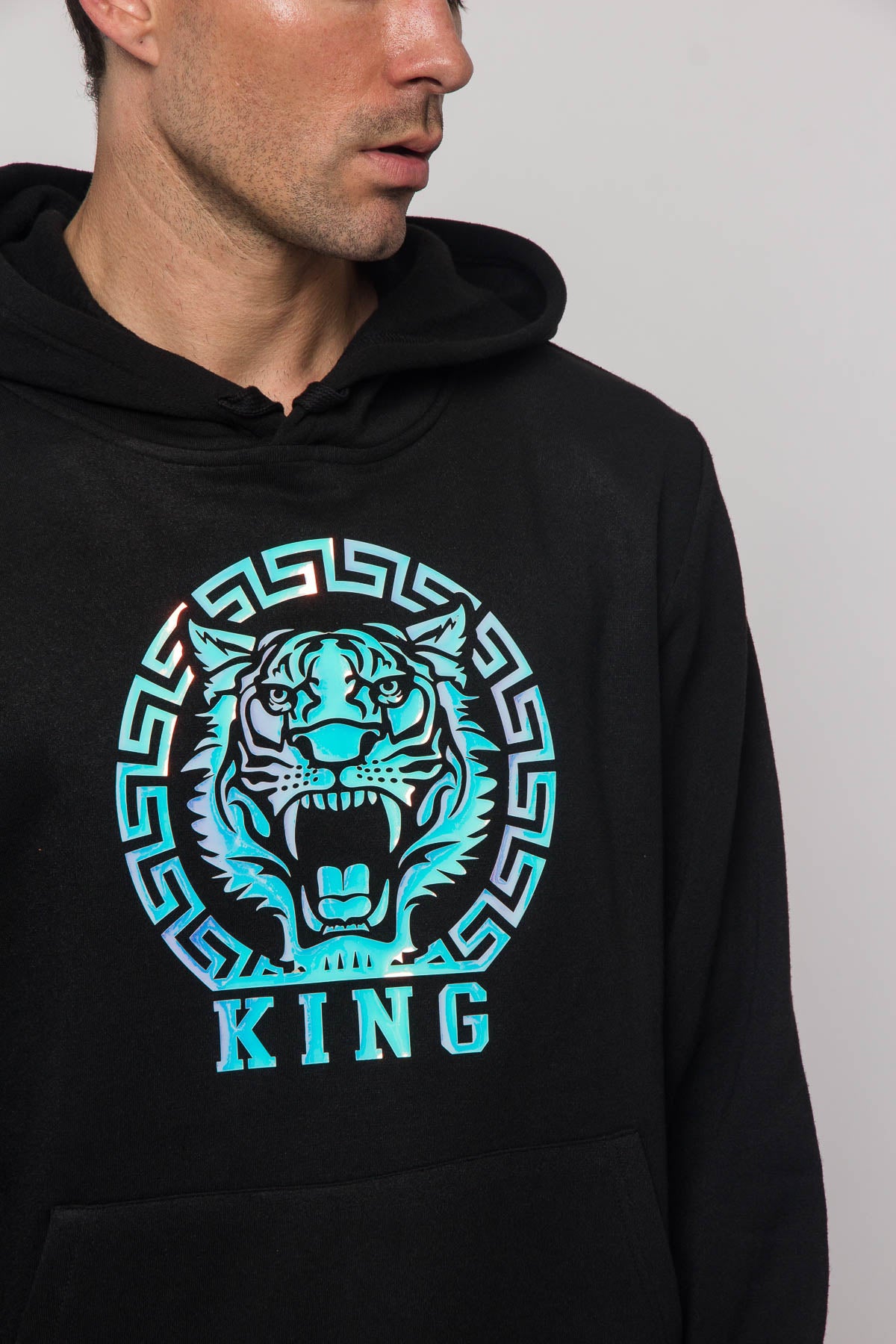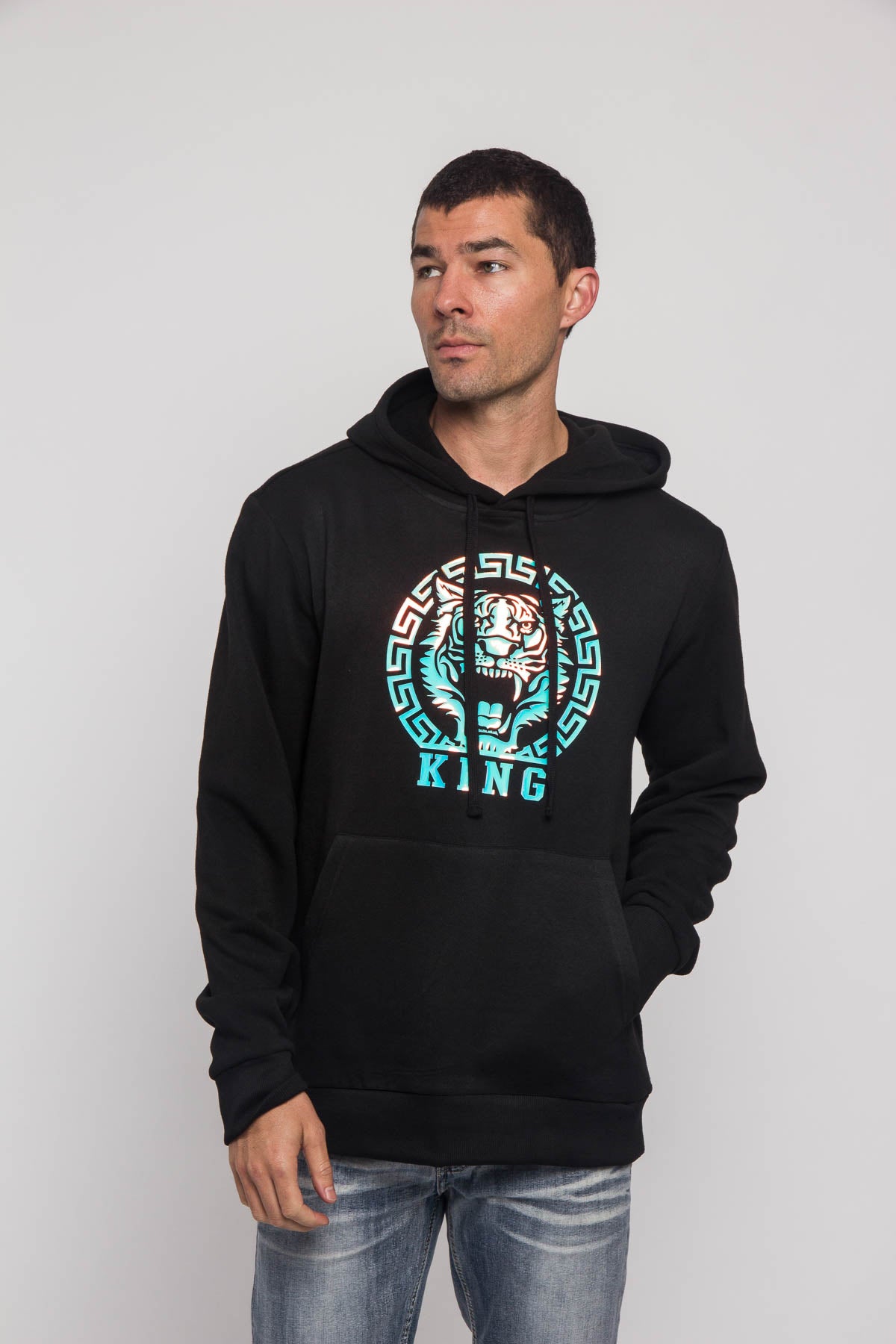 Pop out and stand out wherever you go in our trendy new hoodie.This pullover hoodie features detailed iridescent foil to catch anyone's attention, inspired by the latest high fashion trends.