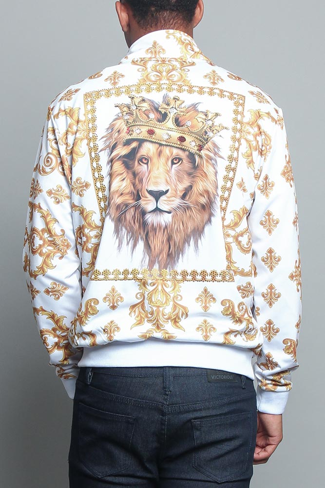 Jeweled Lion King Zip Up Track Jacket