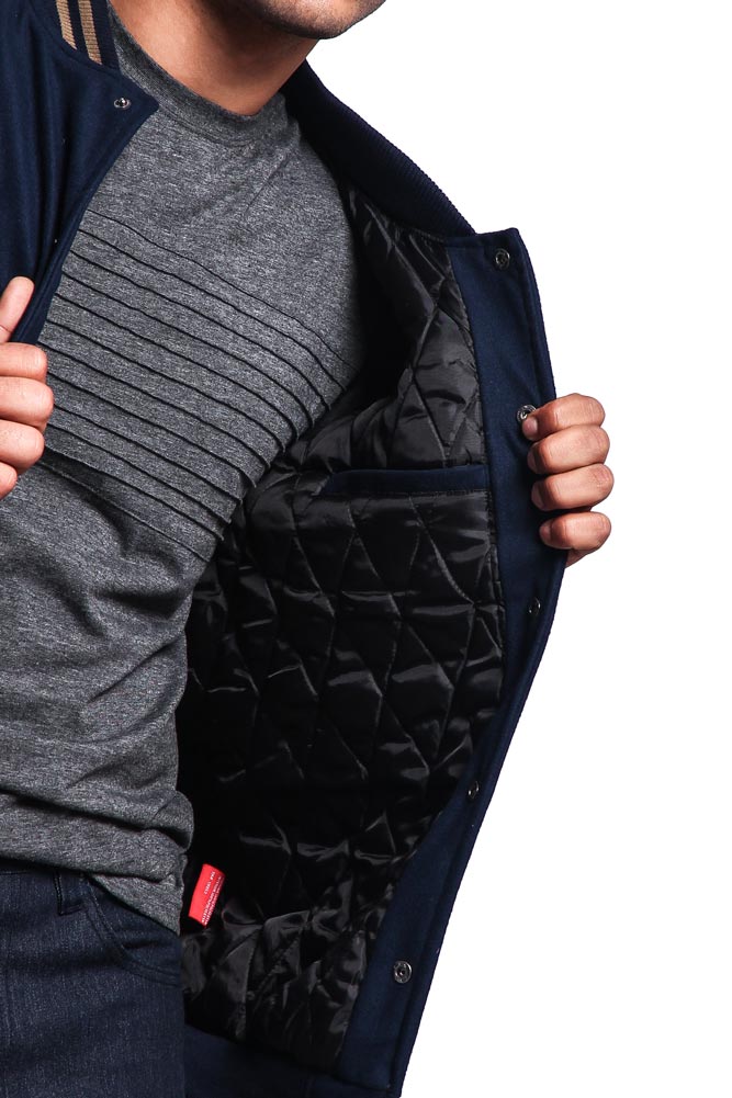 Show off your school spirit with this varsity team inspired letterman jacket!
