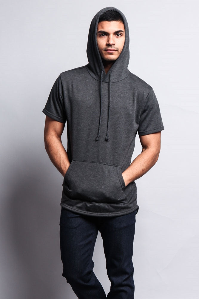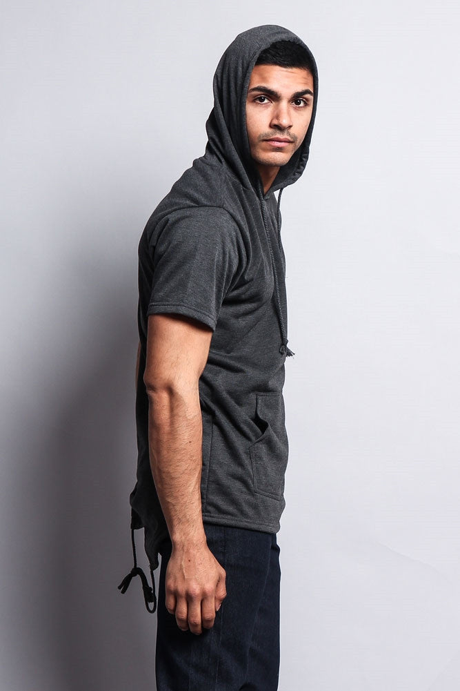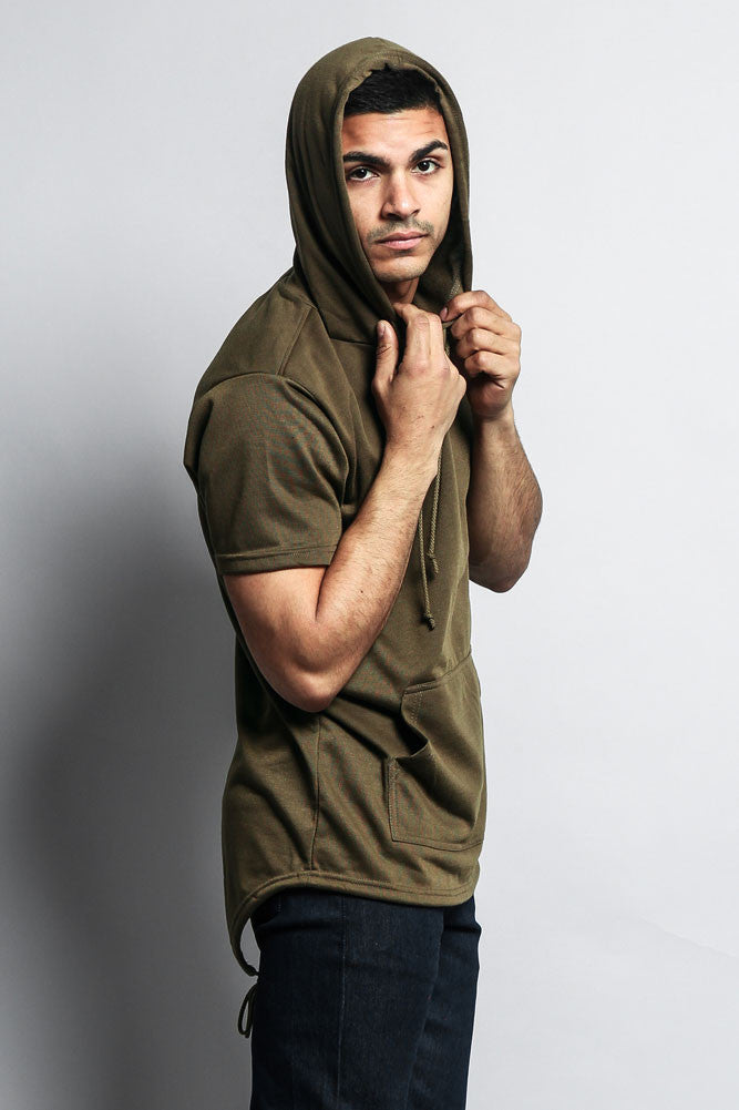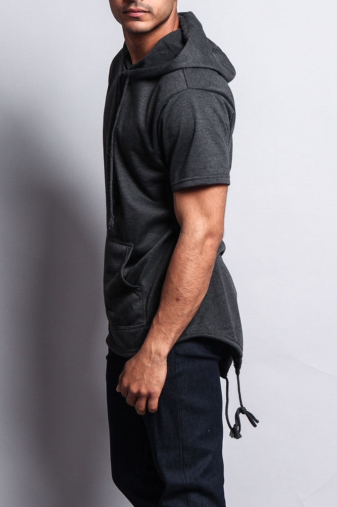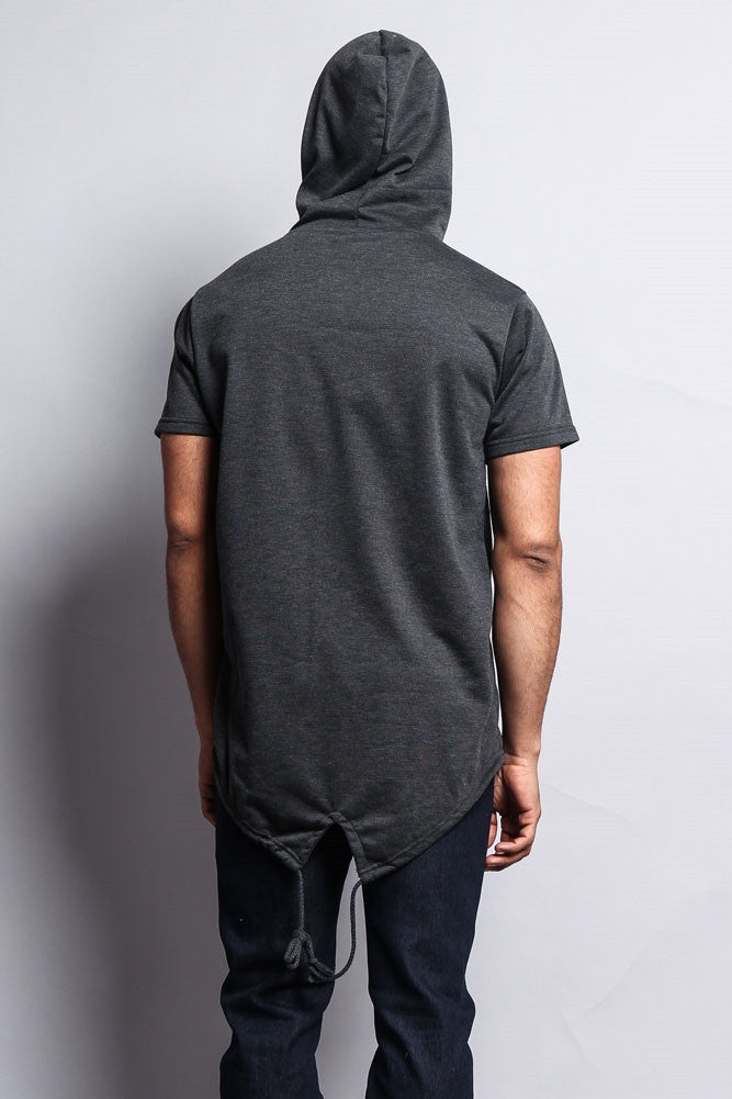 Long Length Short Sleeve Fishtail Pullover Hoodie
