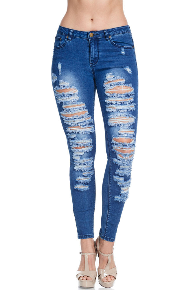 Stay effortlessly cool and comfortable with the popular and versatile skinny jeans, now in trendy pre-ripped and faded style!