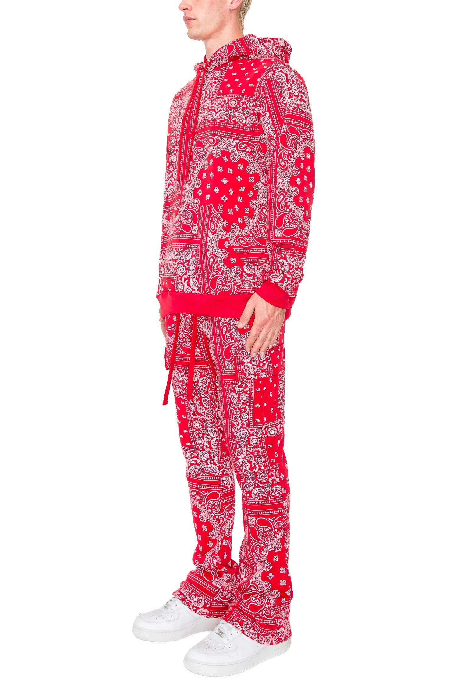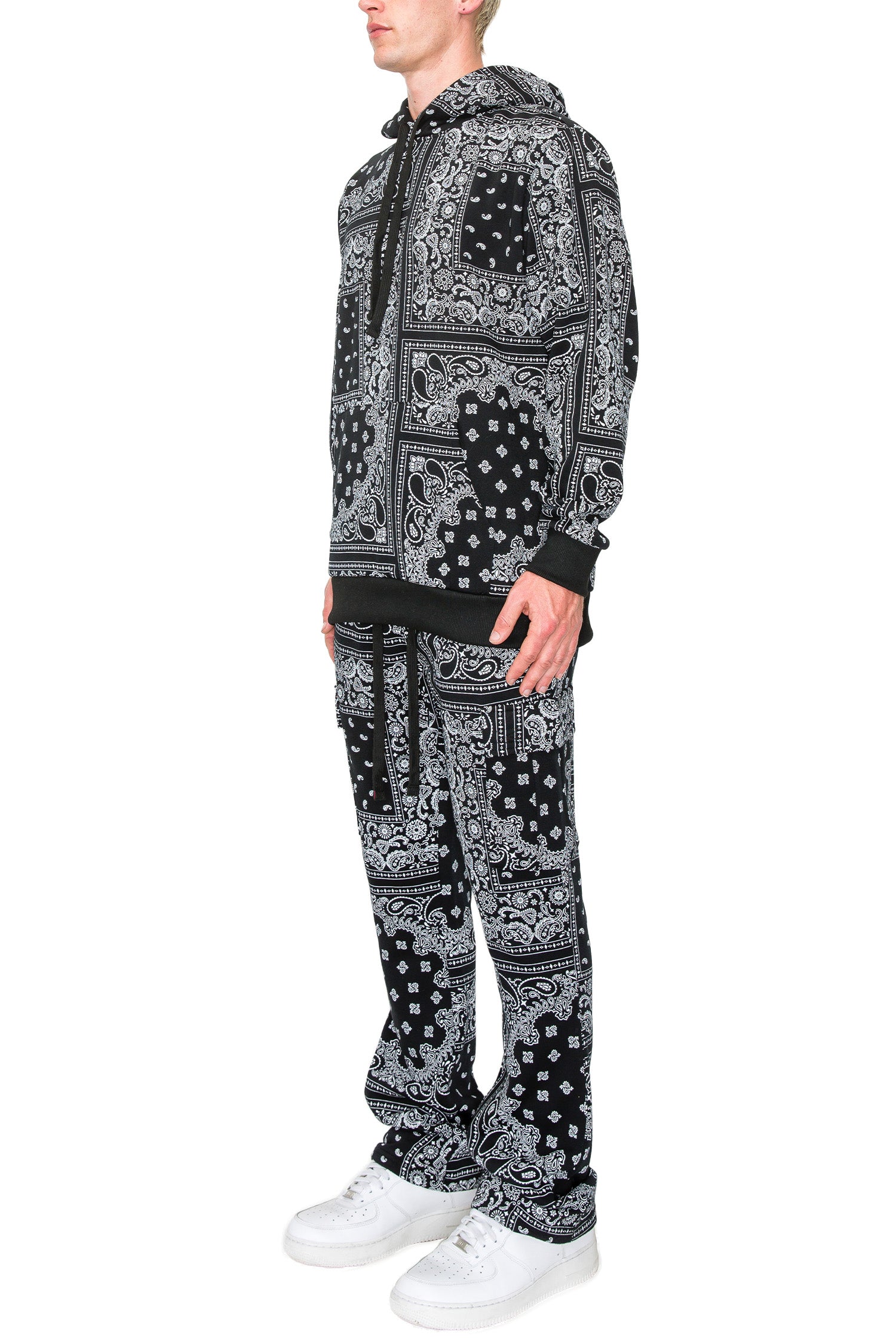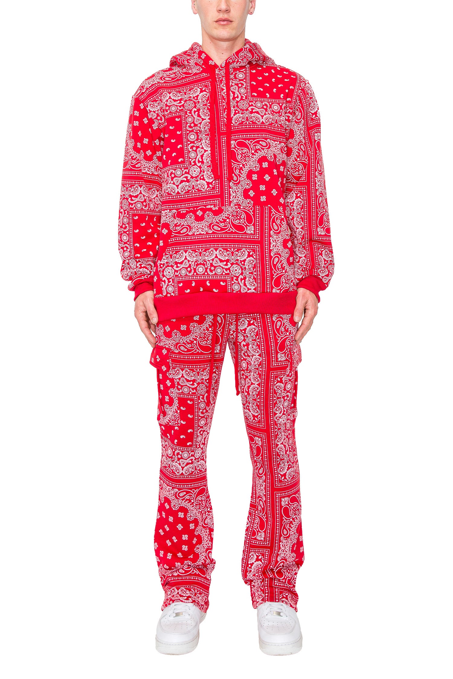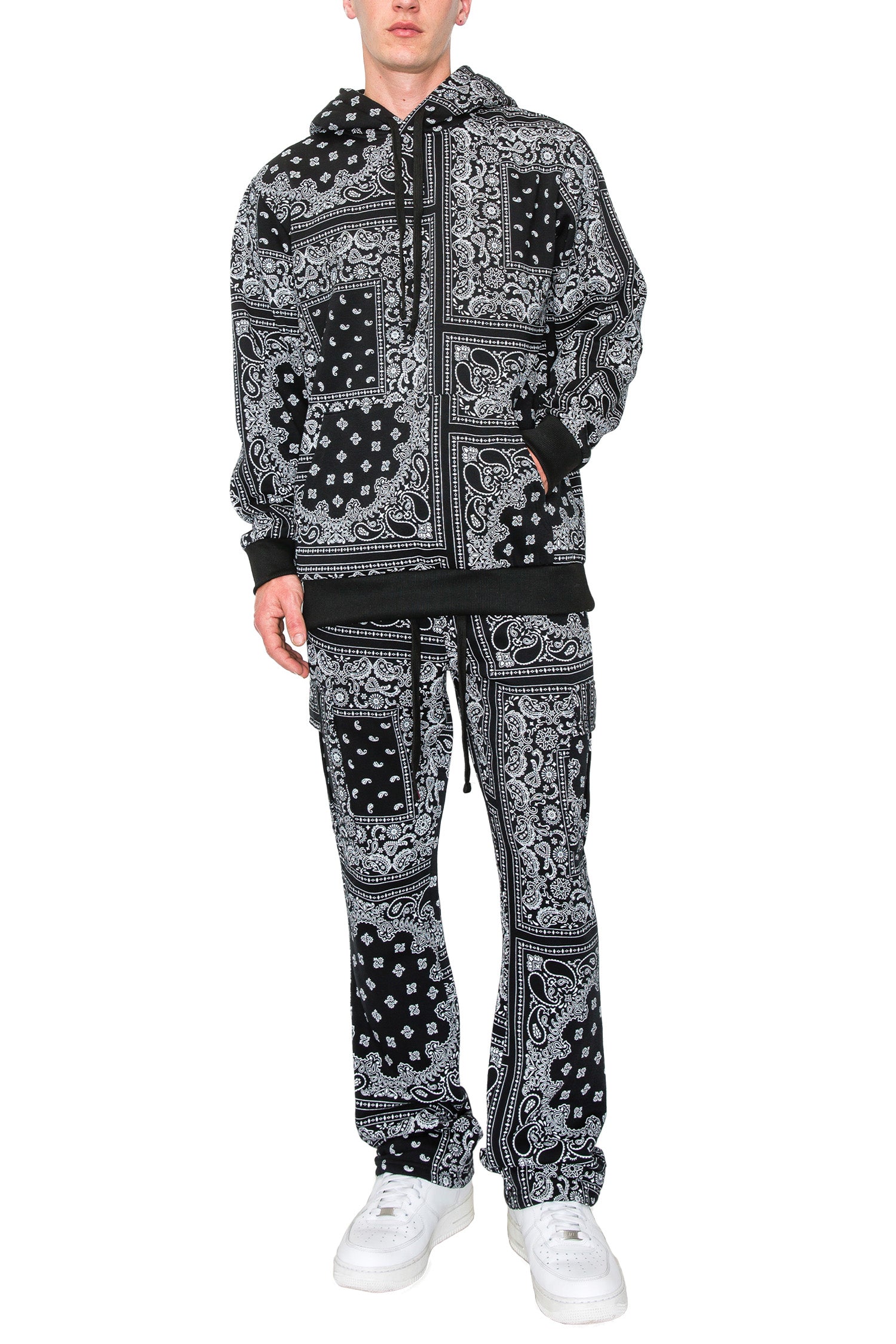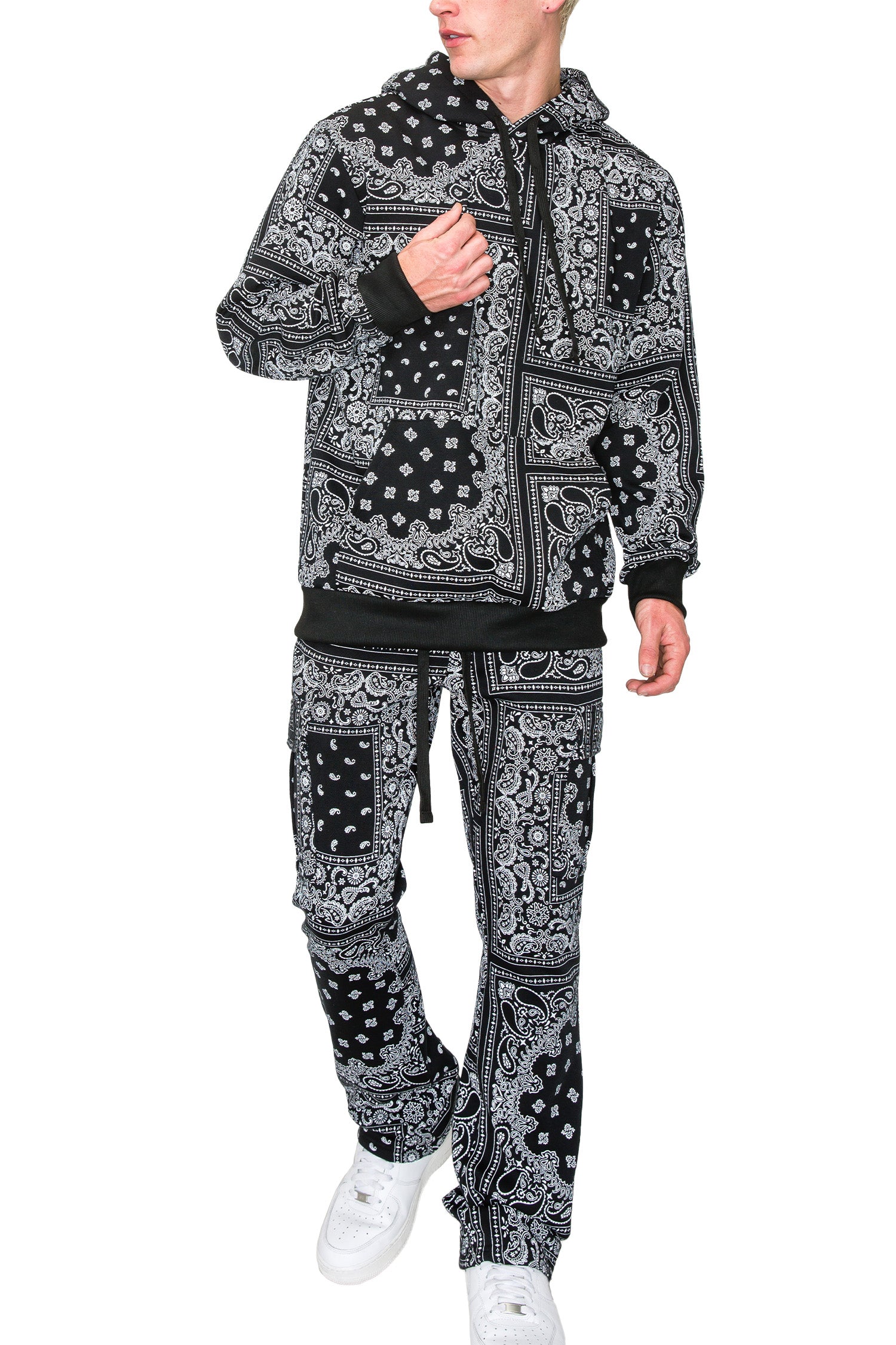 Men's Bandana Pullover Cargo Flared Fleece Set