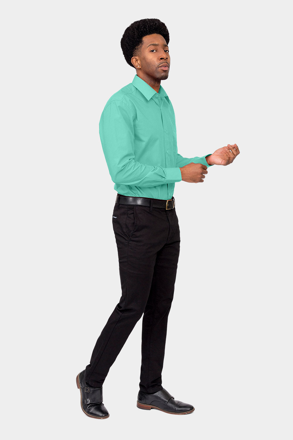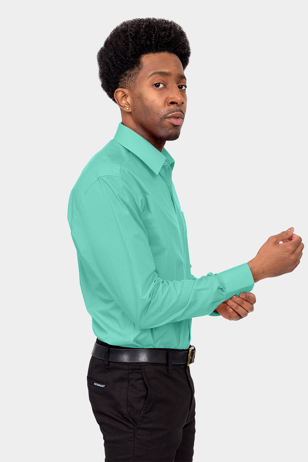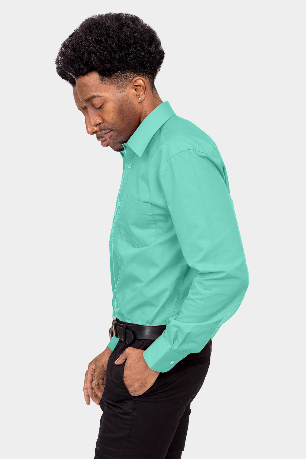 Men's Basic Solid Color Button Up Dress Shirt (Aqua)