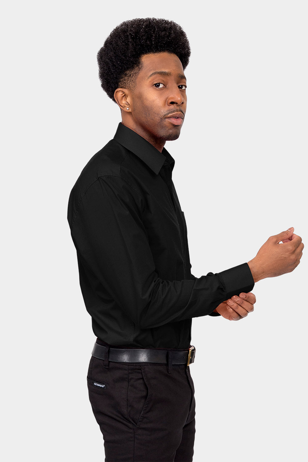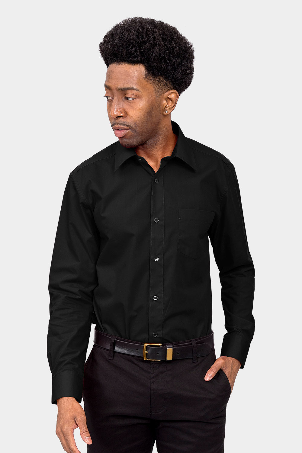 Men's Basic Solid Color Button Up Dress Shirt (Black)