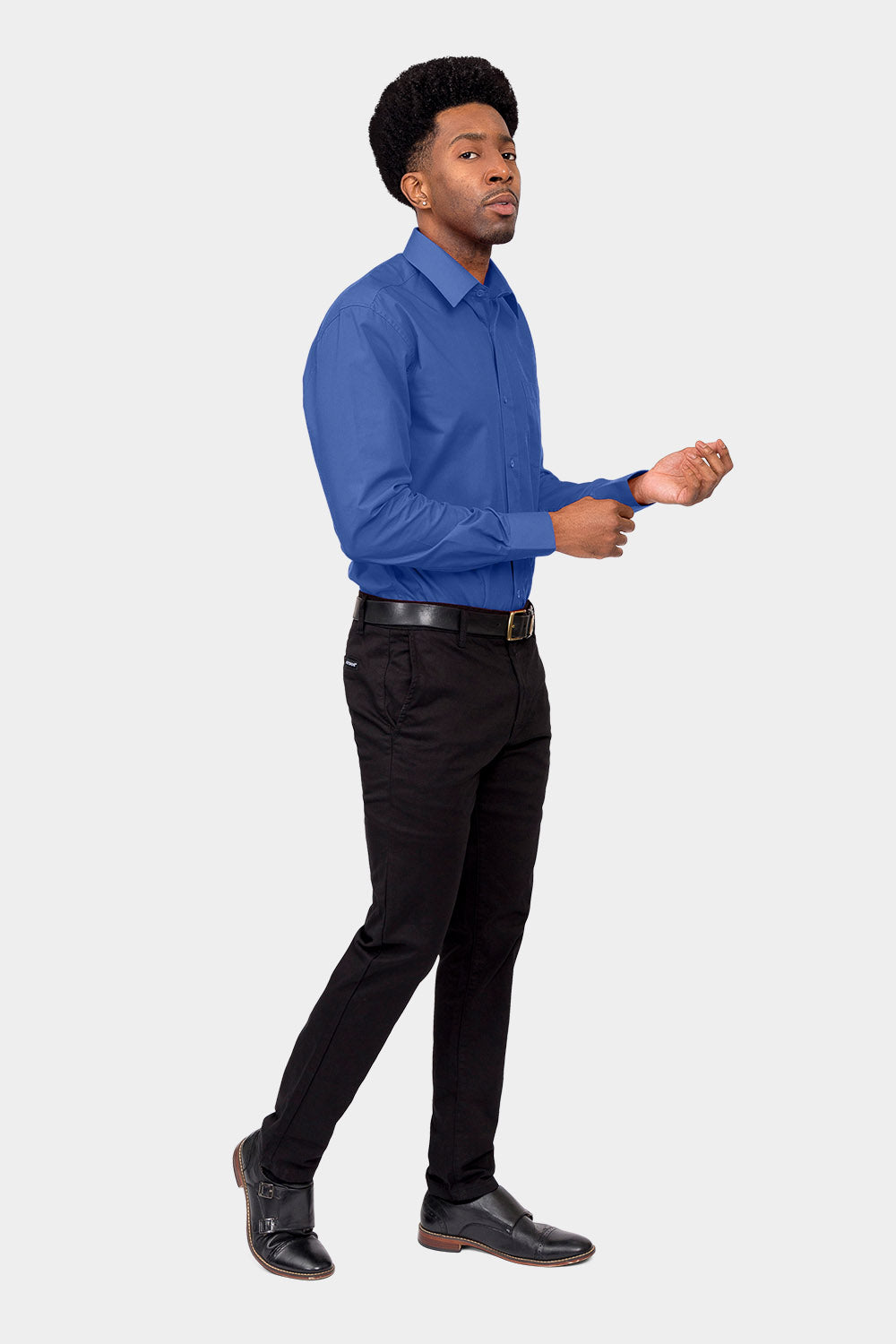 Men's Basic Solid Color Button Up Dress Shirt (French Blue)
