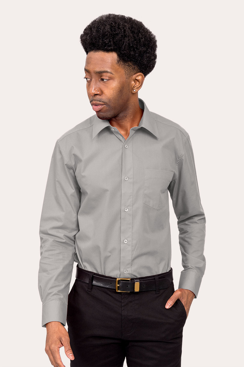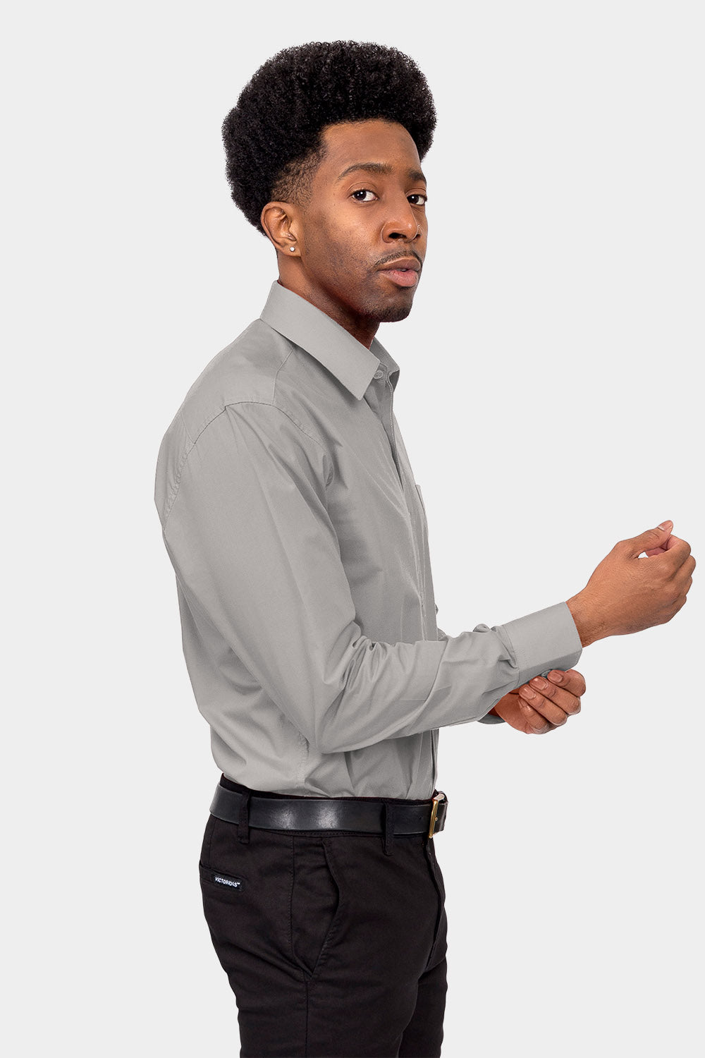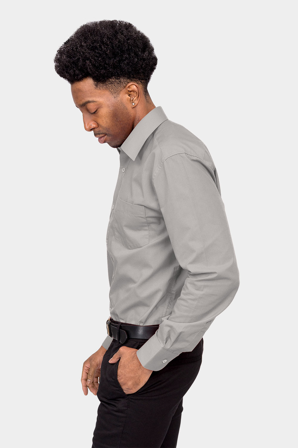 Men's Basic Solid Color Button Up Dress Shirt (Grey)