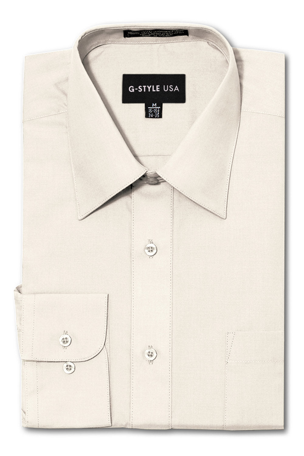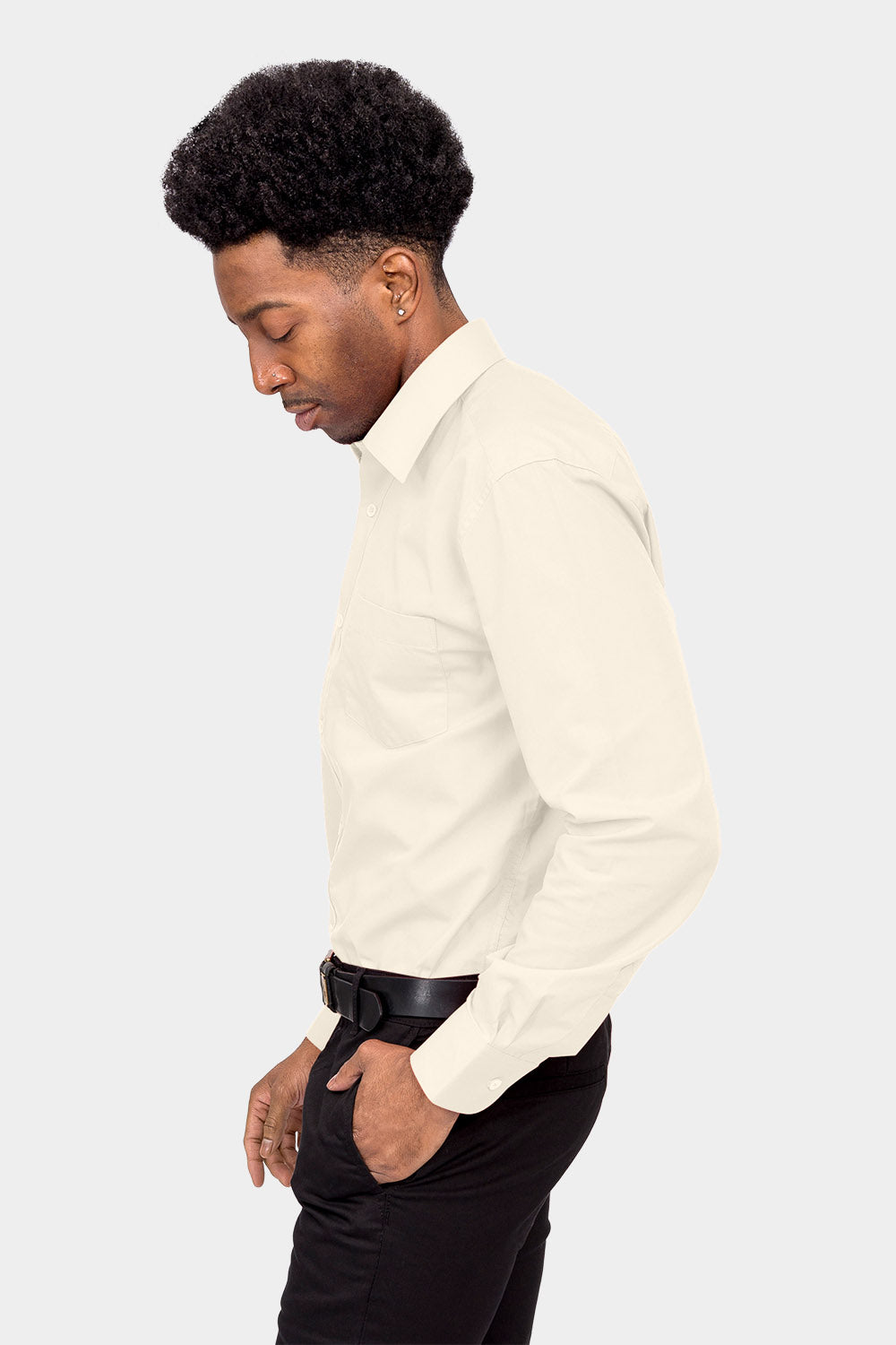 Men's Basic Solid Color Button Up Dress Shirt (Ivory)