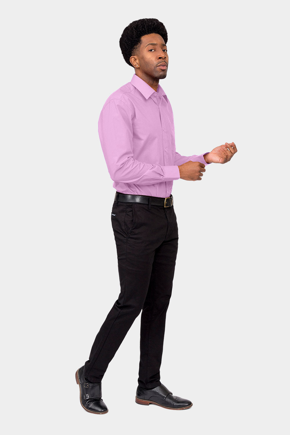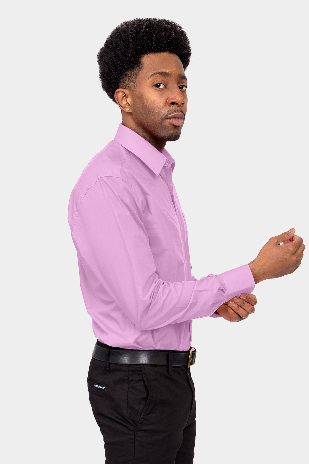 Men's Basic Solid Color Button Up Dress Shirt (Lilac)