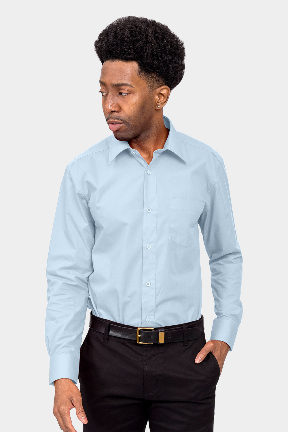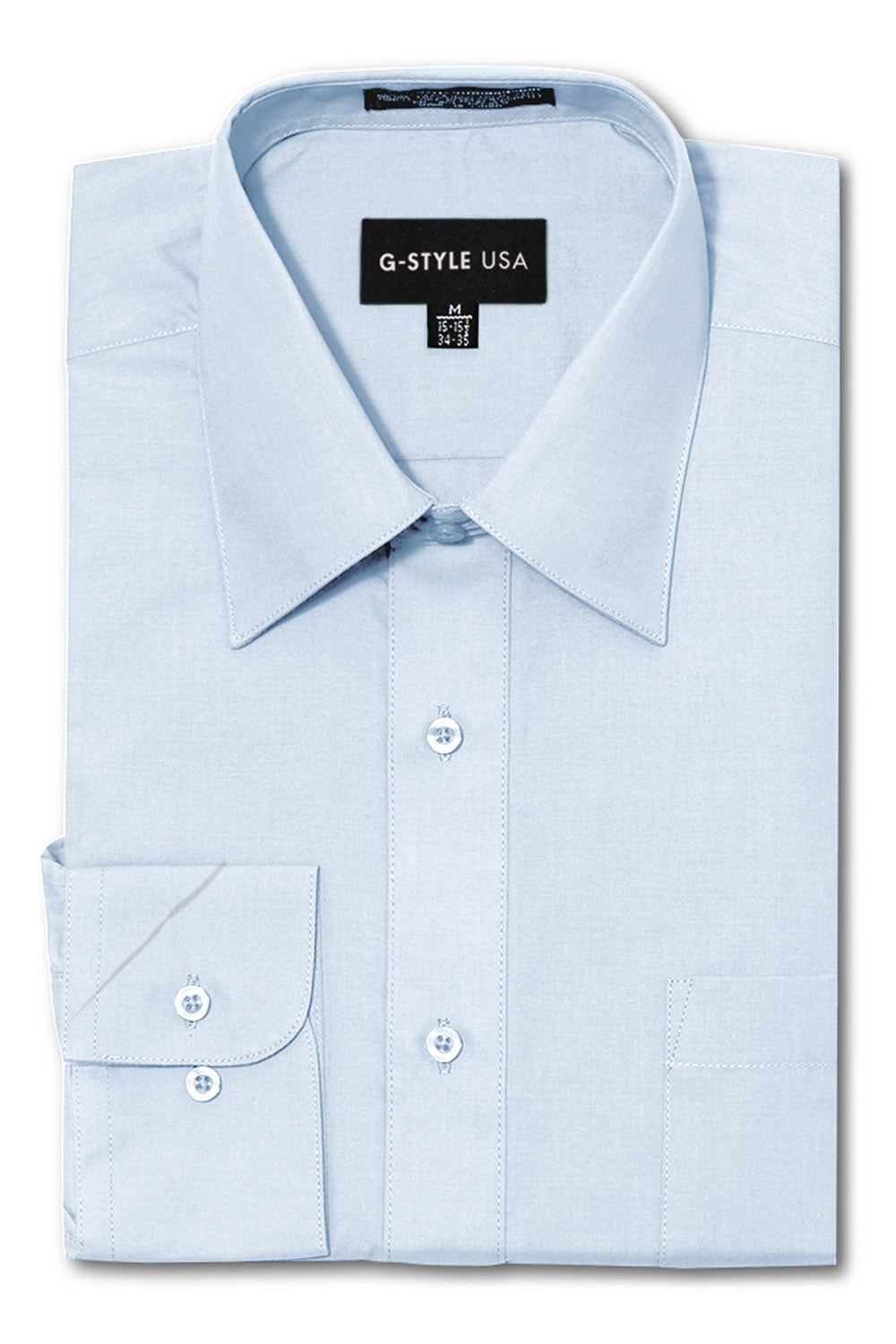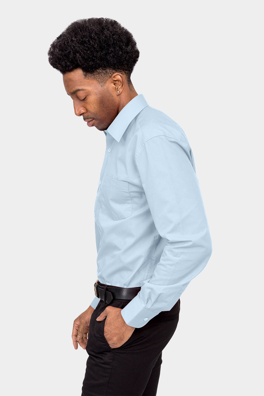 Men's Basic Solid Color Button Up Dress Shirt (Sky Blue)