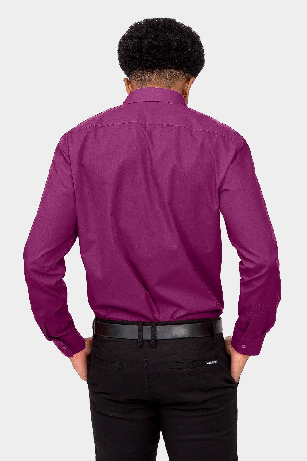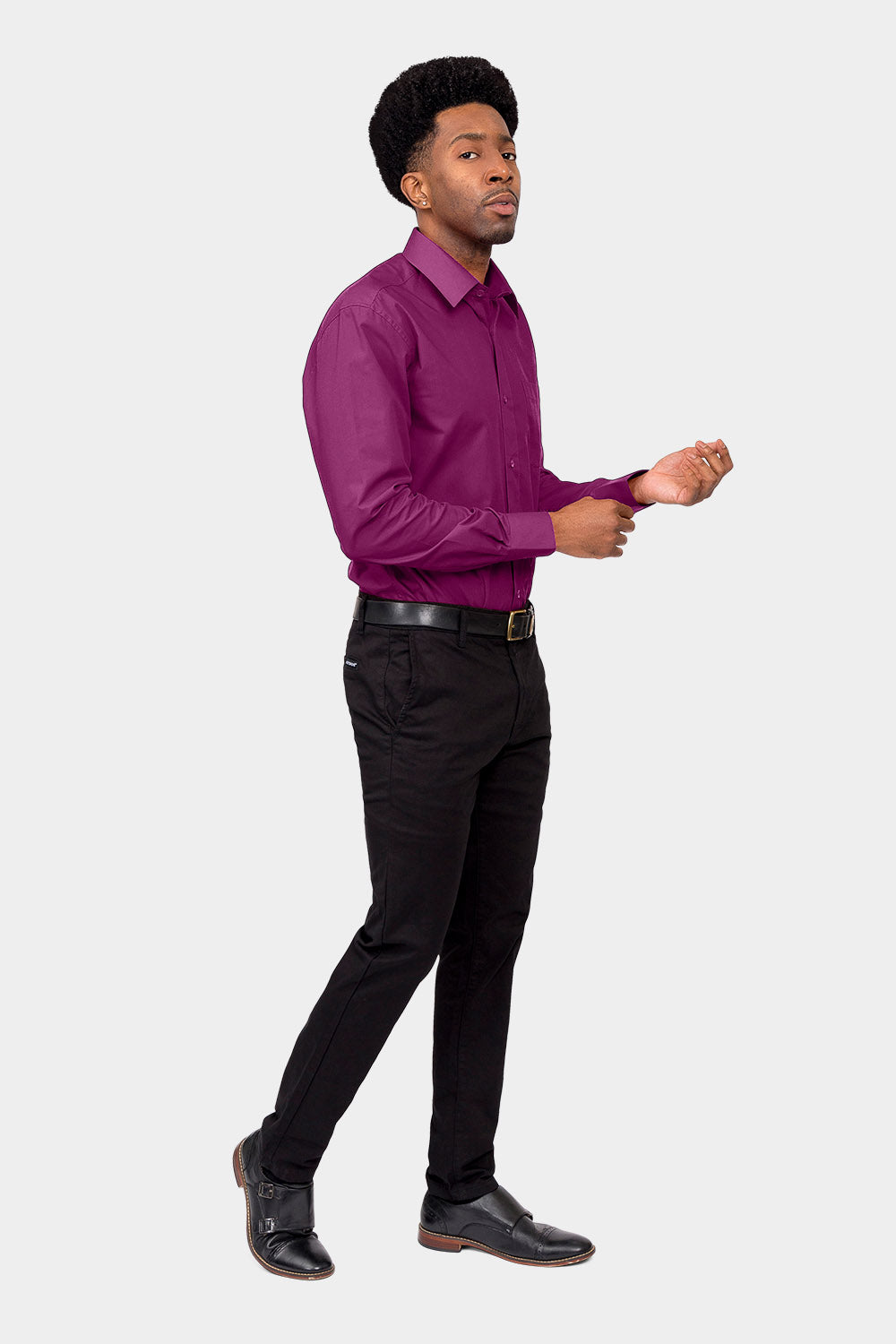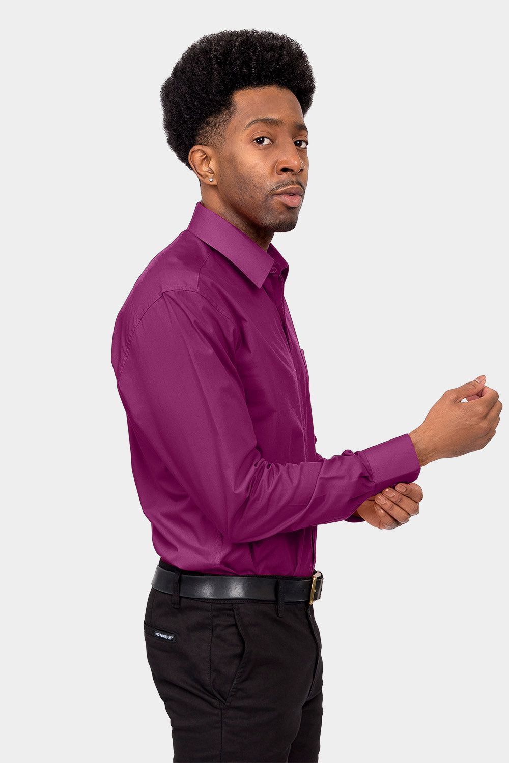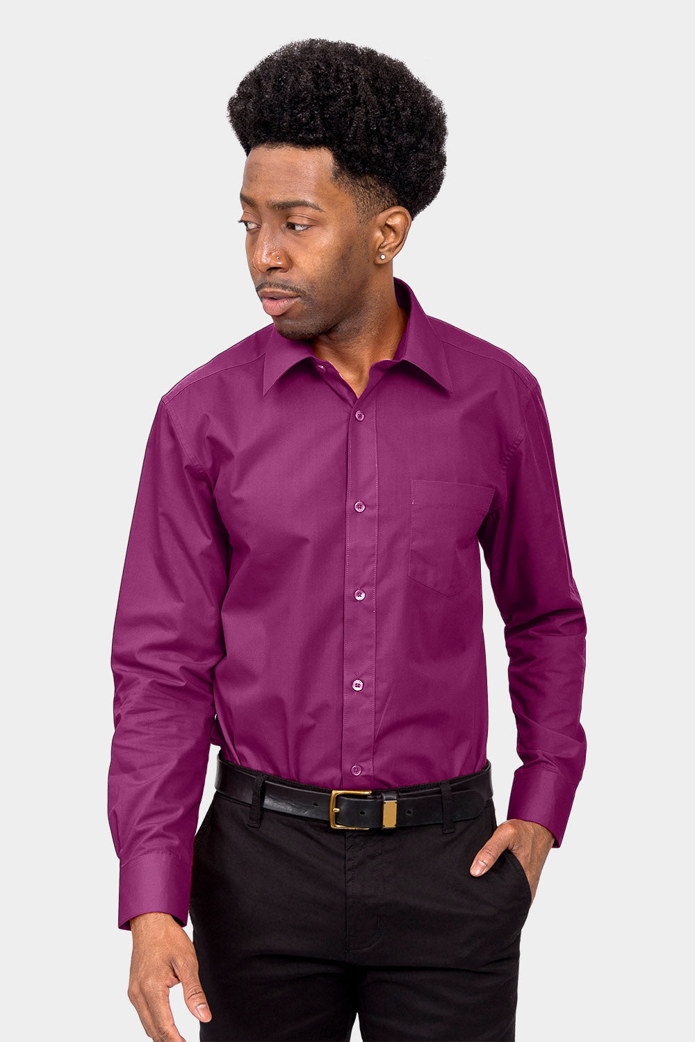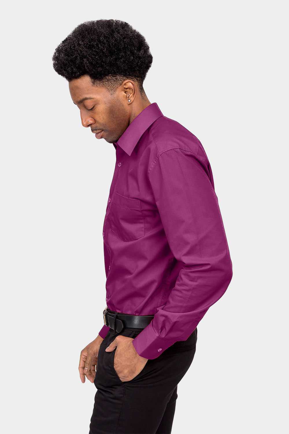 Men's Basic Solid Color Button Up Dress Shirt (Wine)