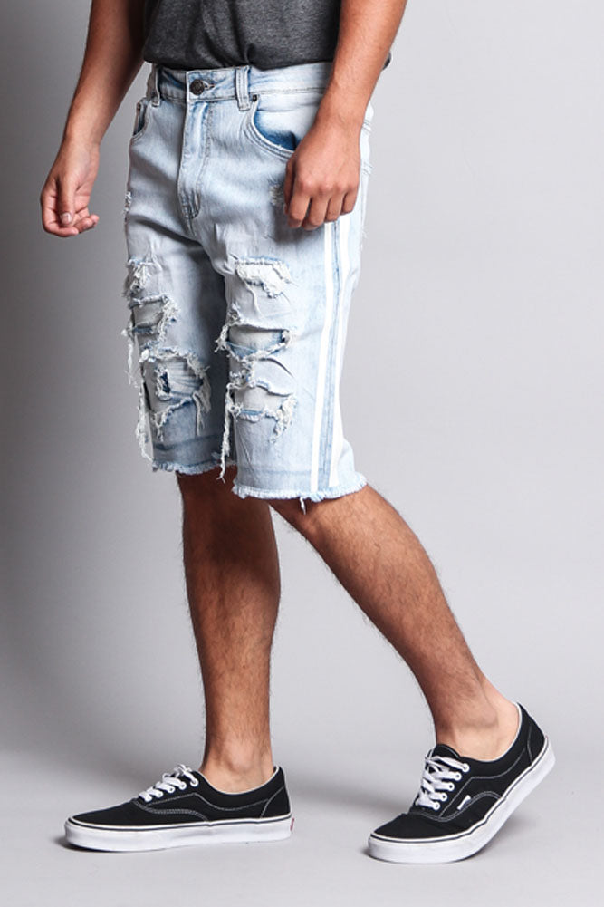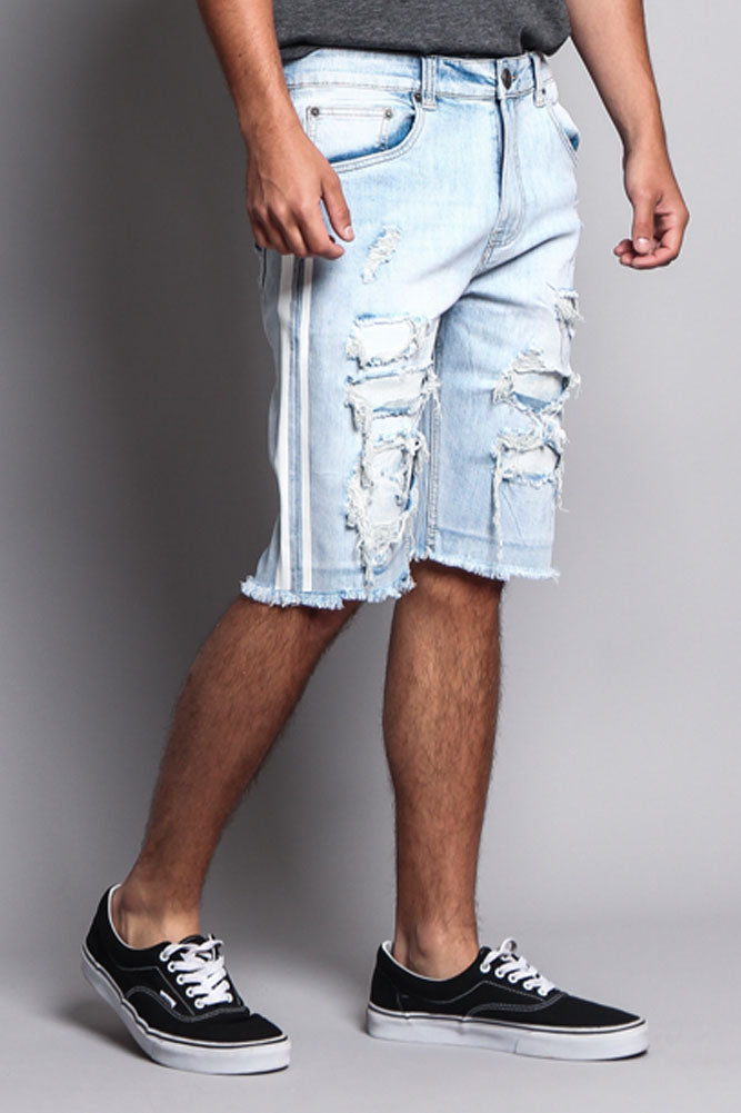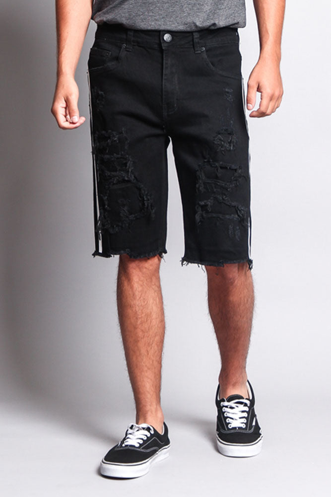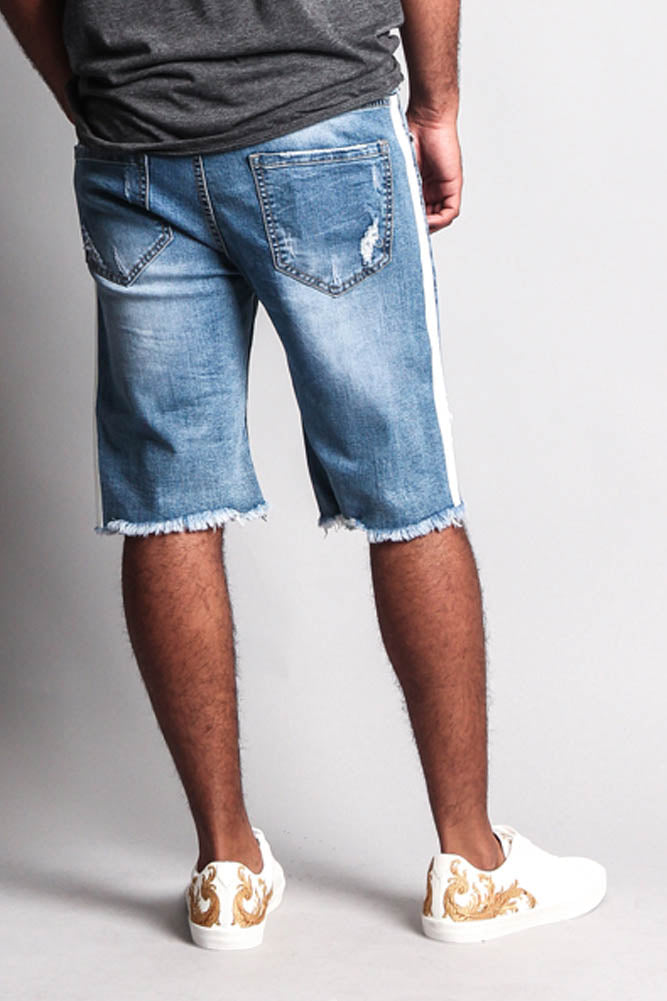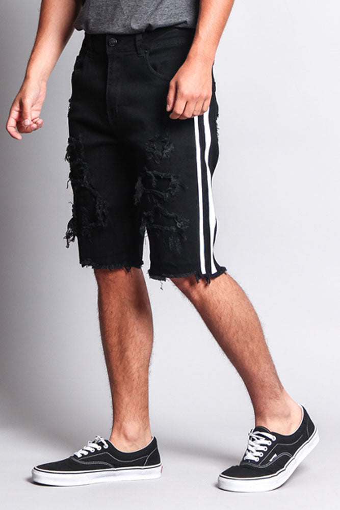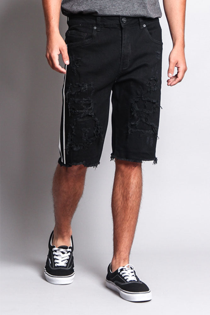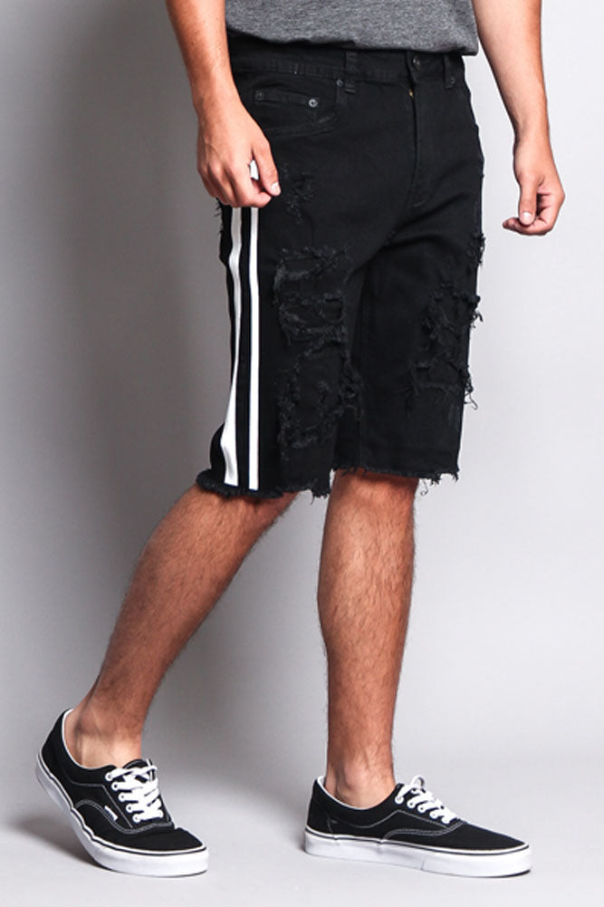 Our distressed detailing and side striped band makes it easy to look super stylish. Perfect for everyday wear, our casual shorts that come in multiple colors make it easy to go with any look.