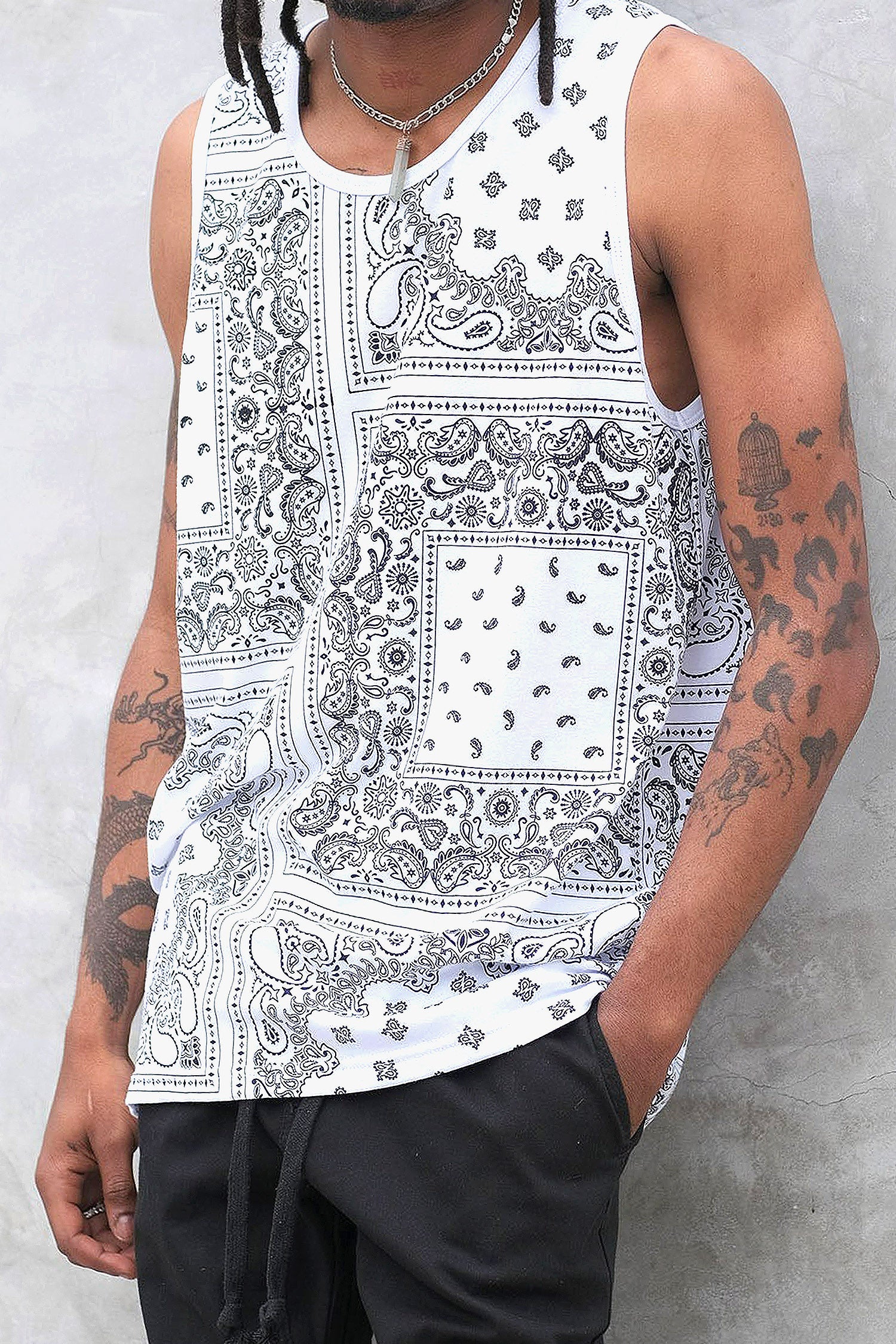 Men's Horizontal Solid Color Bandana Tank Top