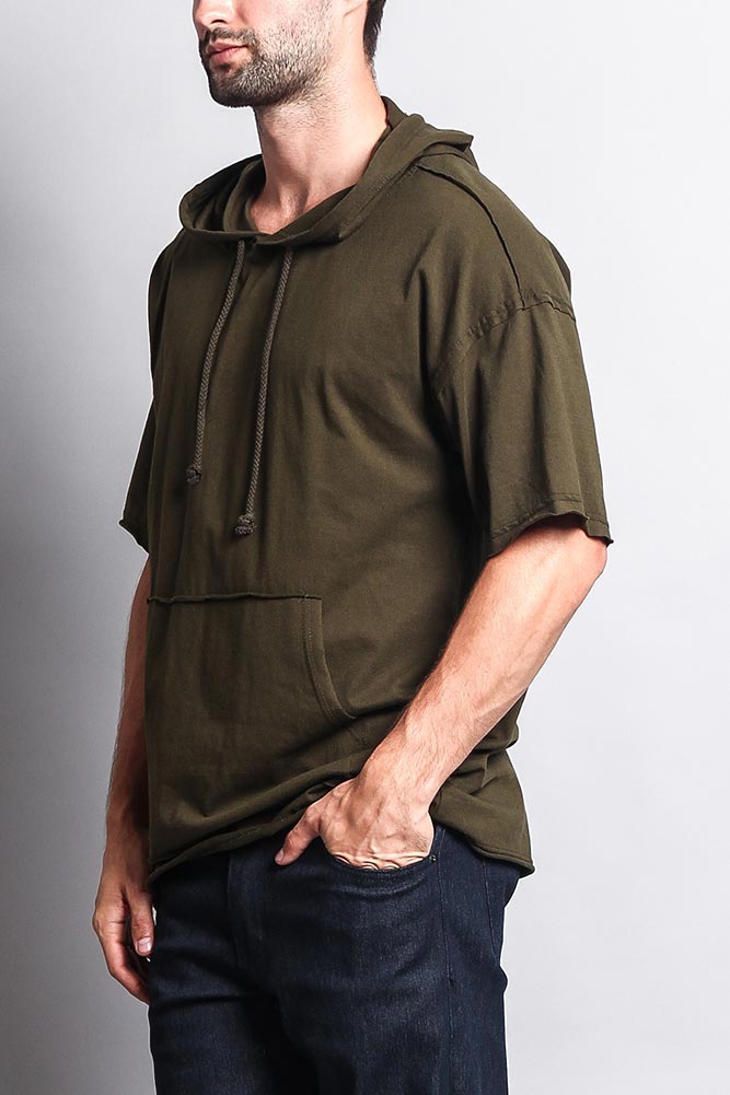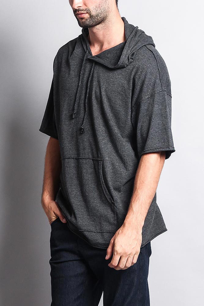 Made for the modern man, influenced by the latest music, and social media trends. Comfort meets cool with its earthy-toned long line T-shirts. Featuring a hood with drawstrings, and a front pouch pocket.