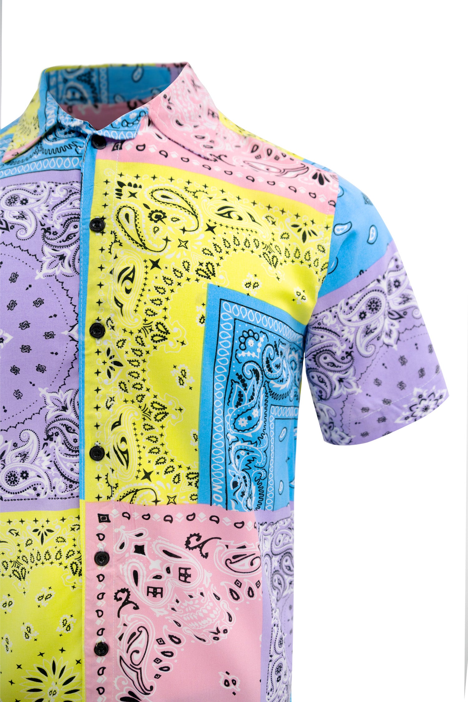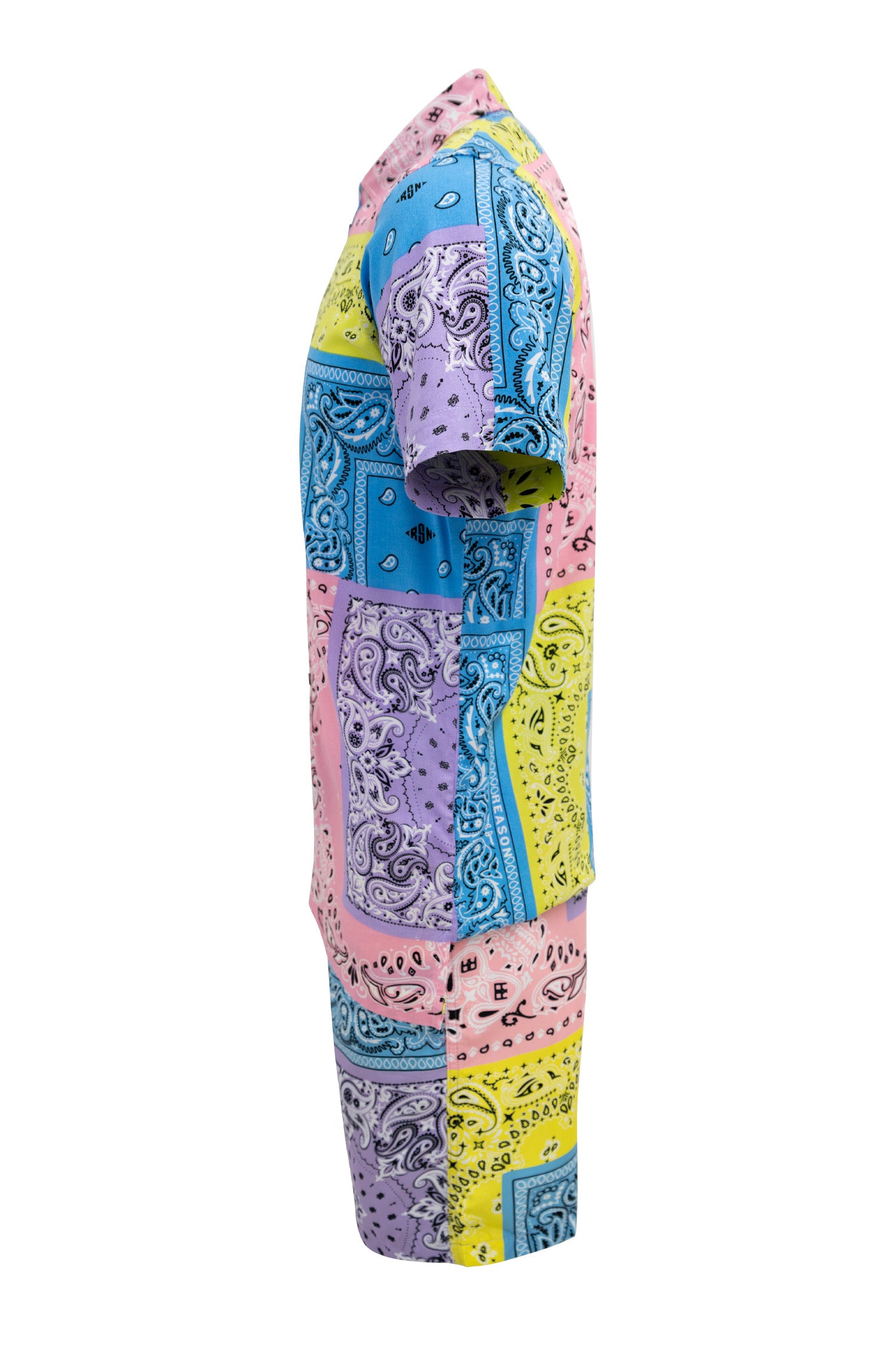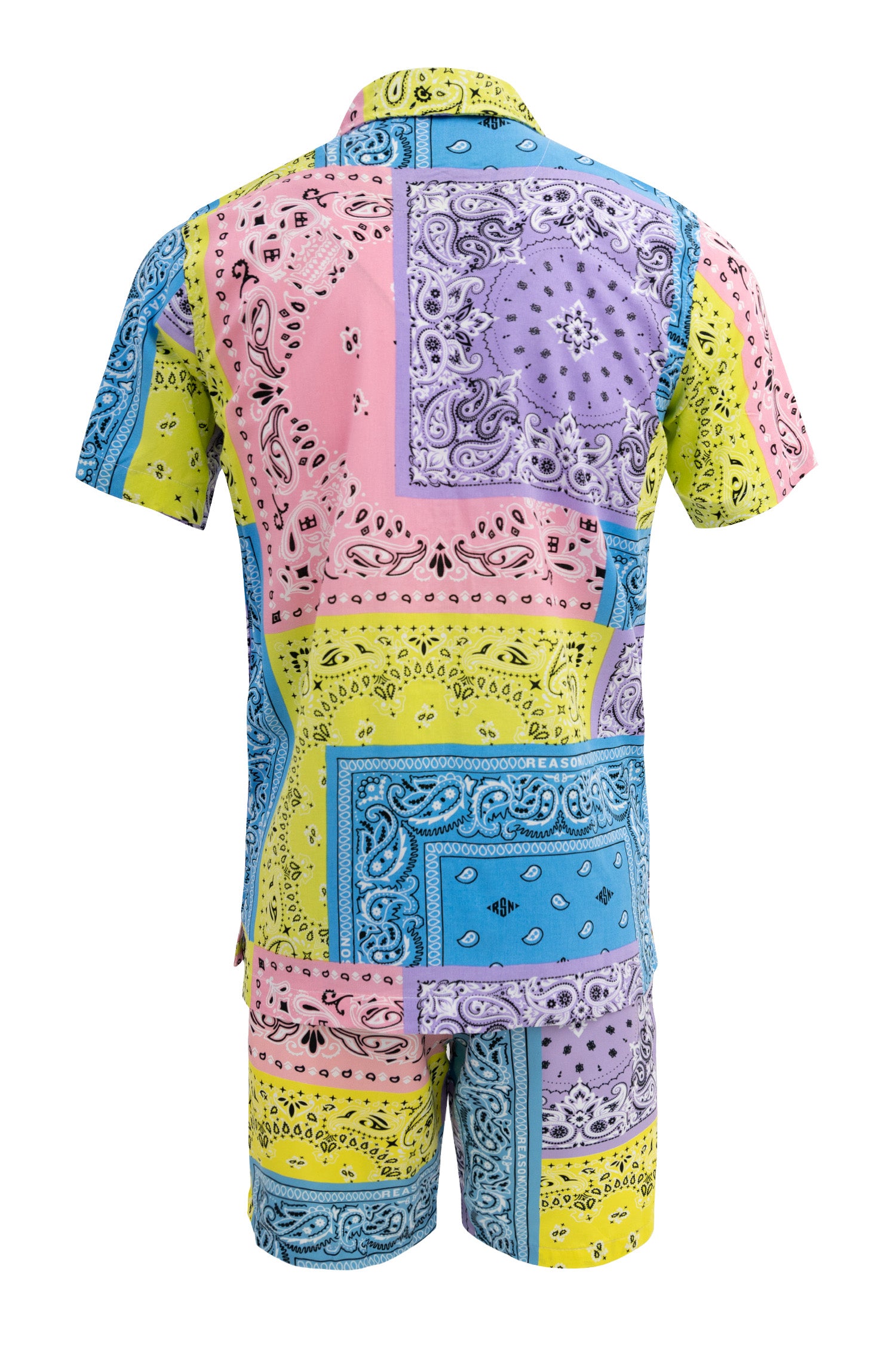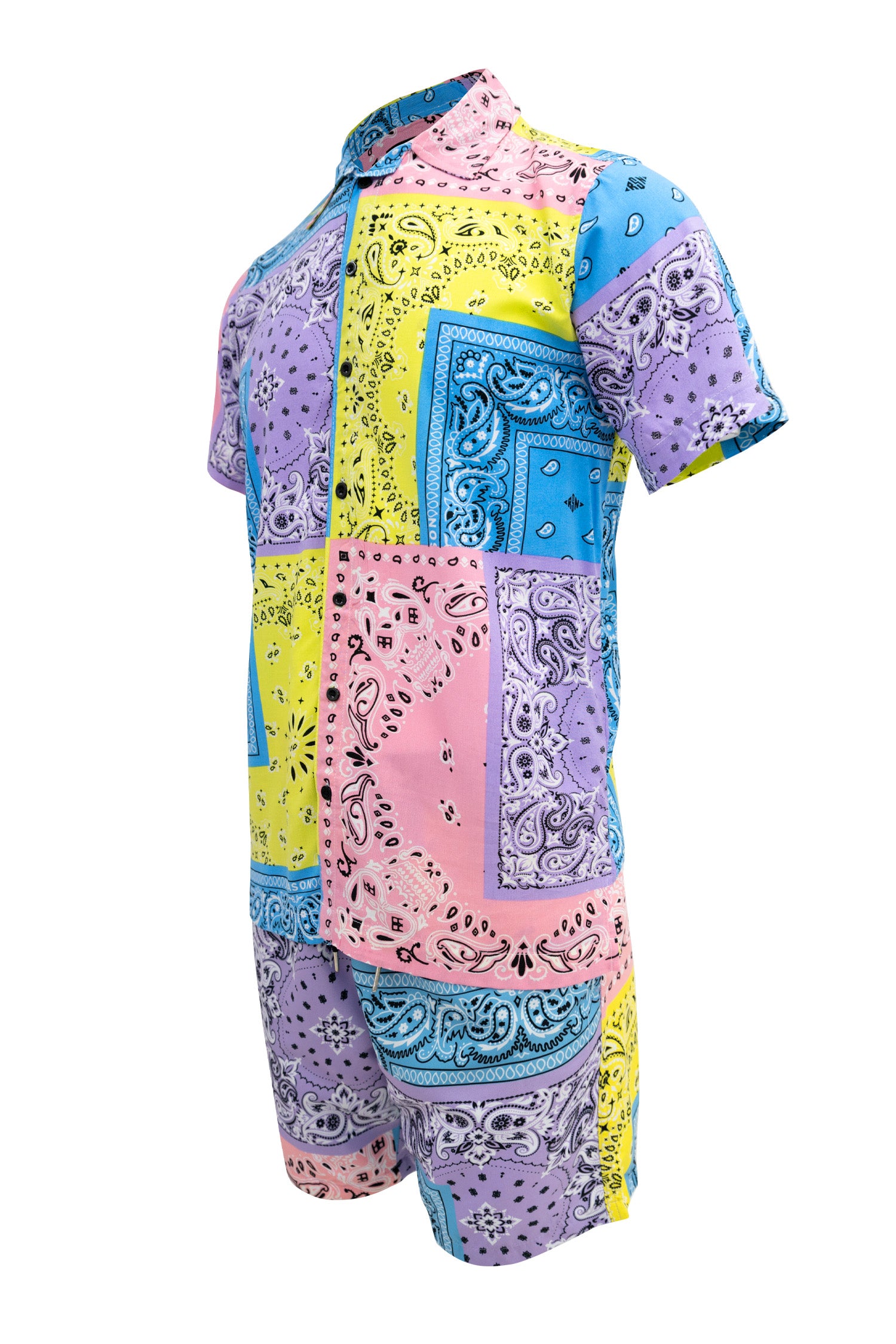 Men's Pastel Color block Bandana Shirt and Shorts Set