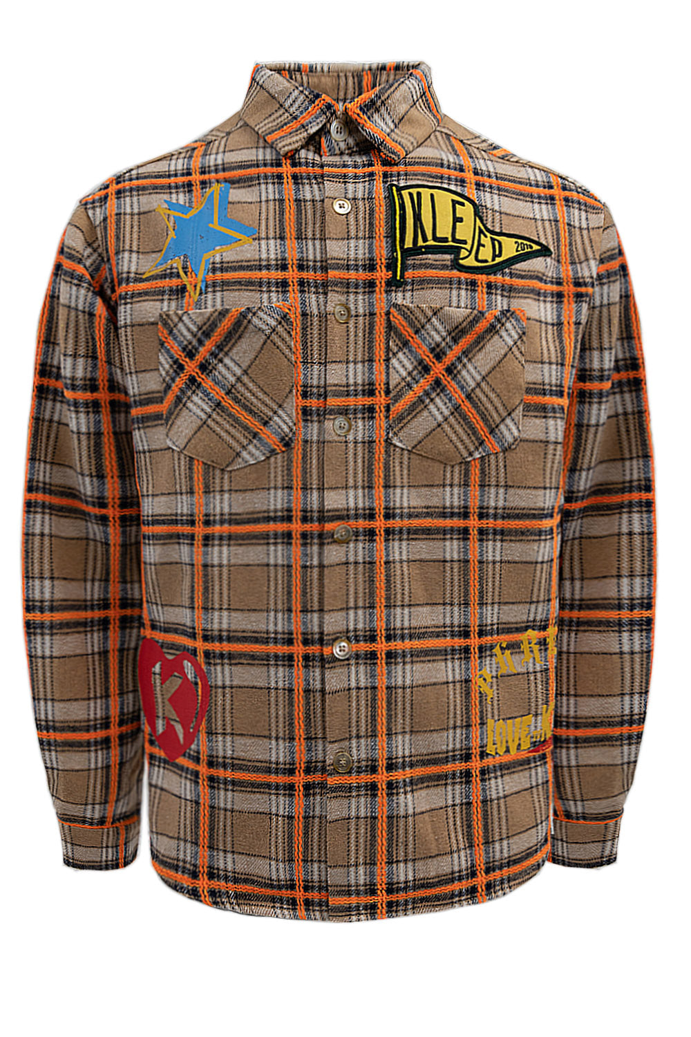 Men's Premium Embroidered Patch Work Heavy Flannel Shirt