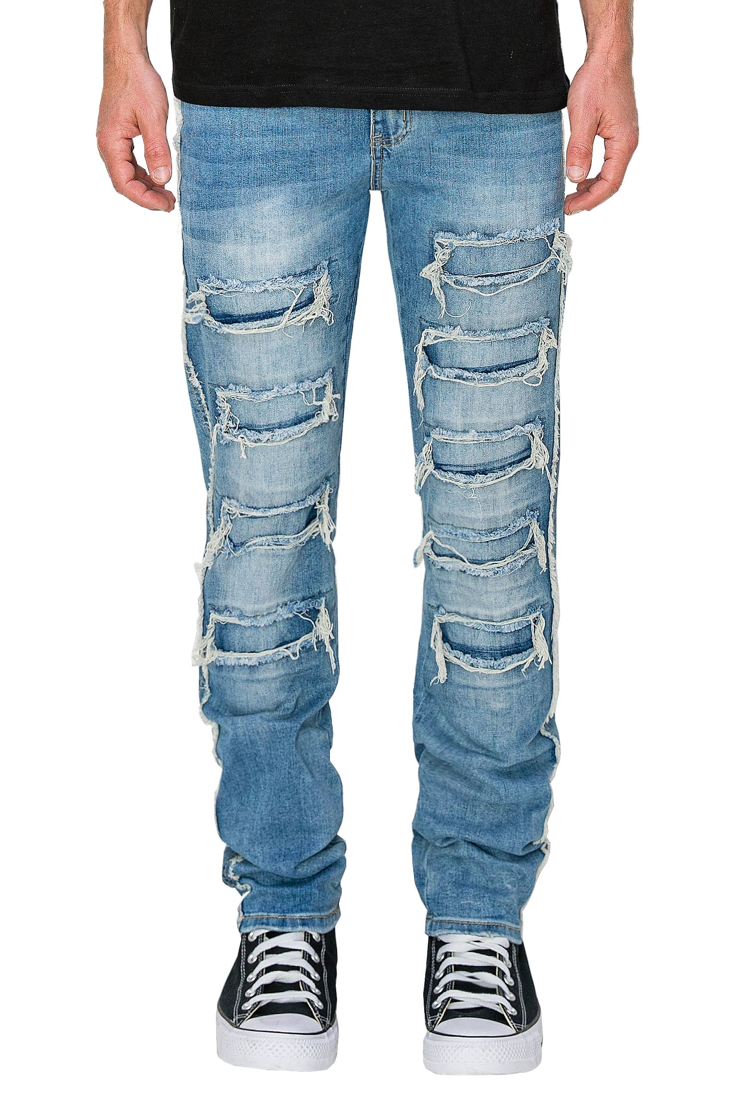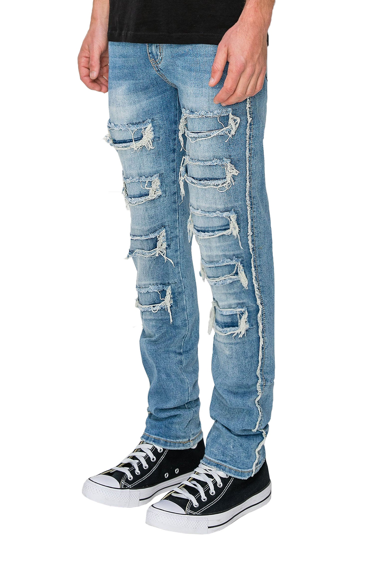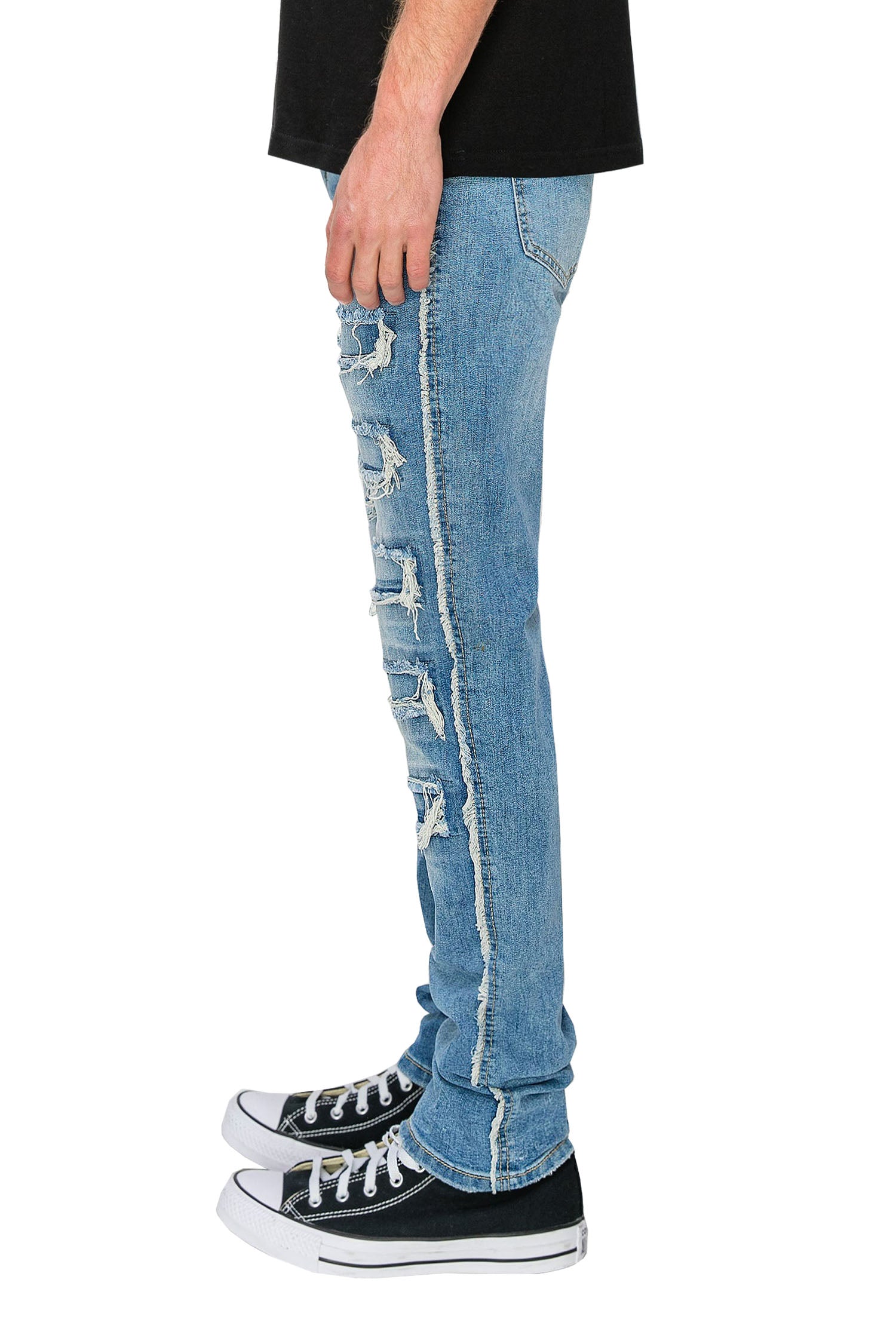 Men's Side Raw Edge Rip & Repair Denim Jeans